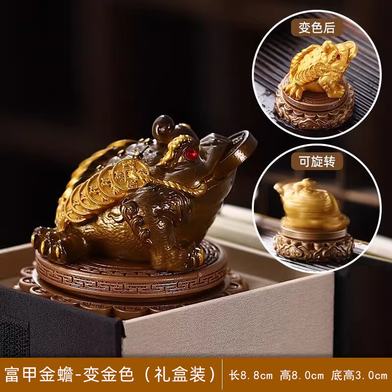 Jingyan color-changing golden toad rotating tea pet to attract wealth boutique can raise toad office desk tea tray tea table decoration creative tea play gold golden toad rotating golden toad tea pet to attract wealth (gift box)