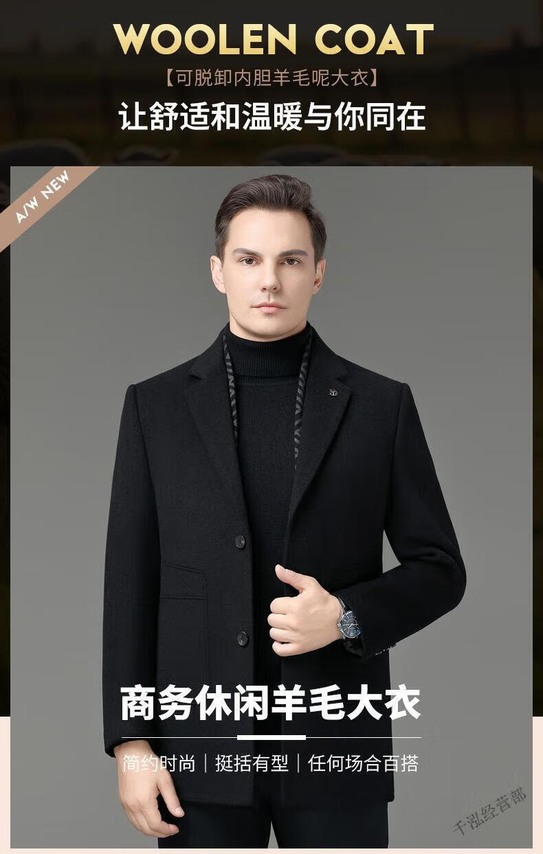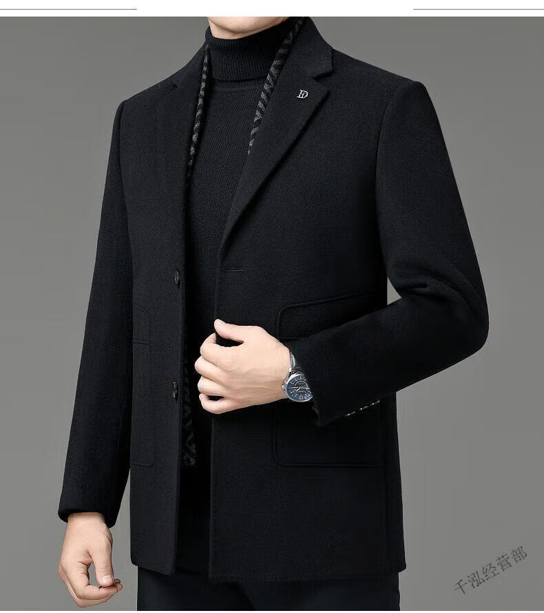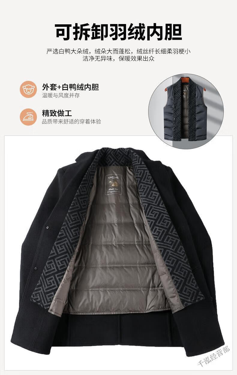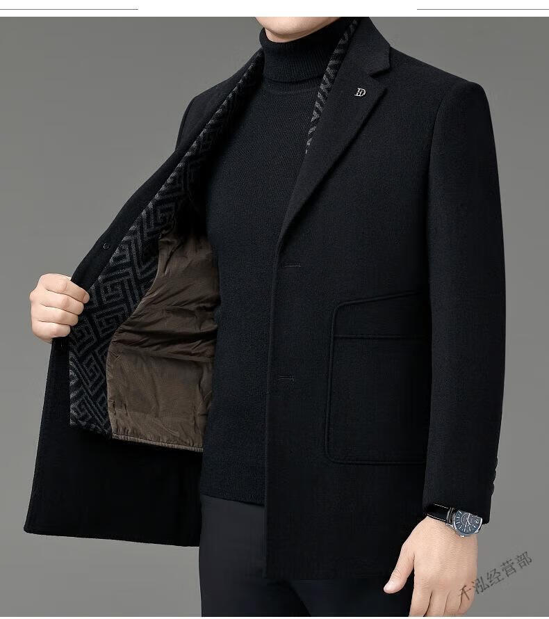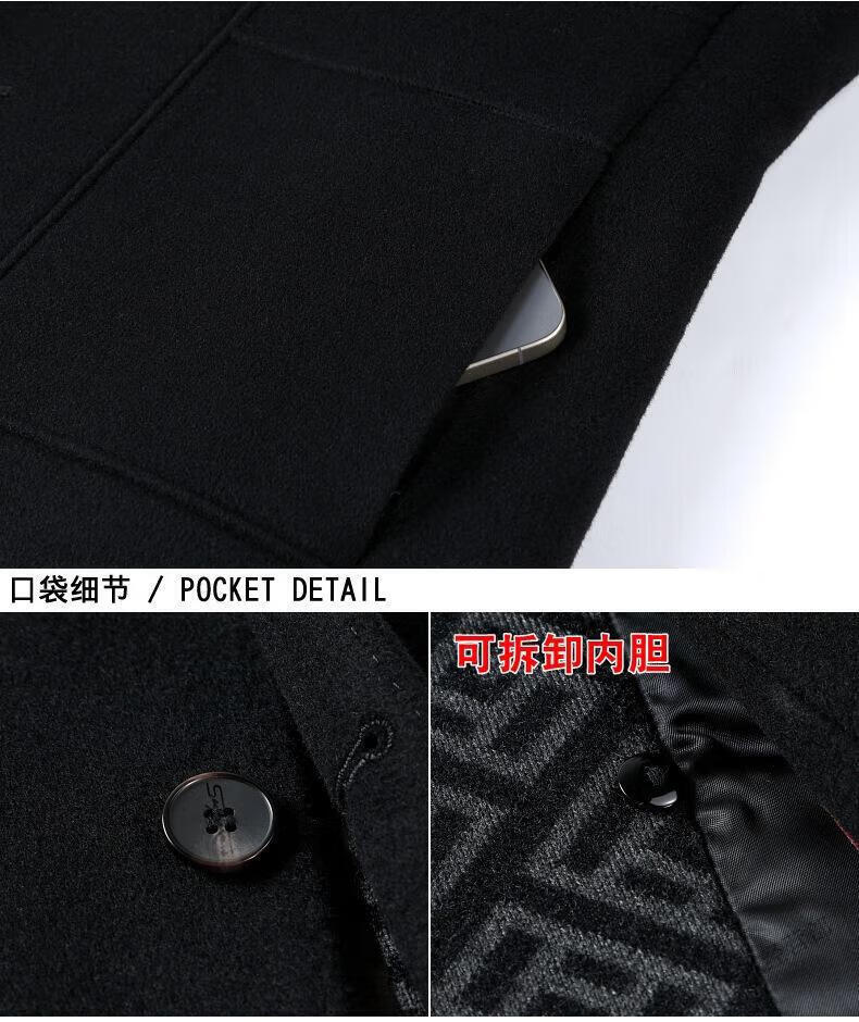 KBXNG Jinba winter double-sided wool men's coat suit collar mid-length liner jacket middle-aged men's wear 8669 black (removable liner) M 170/48