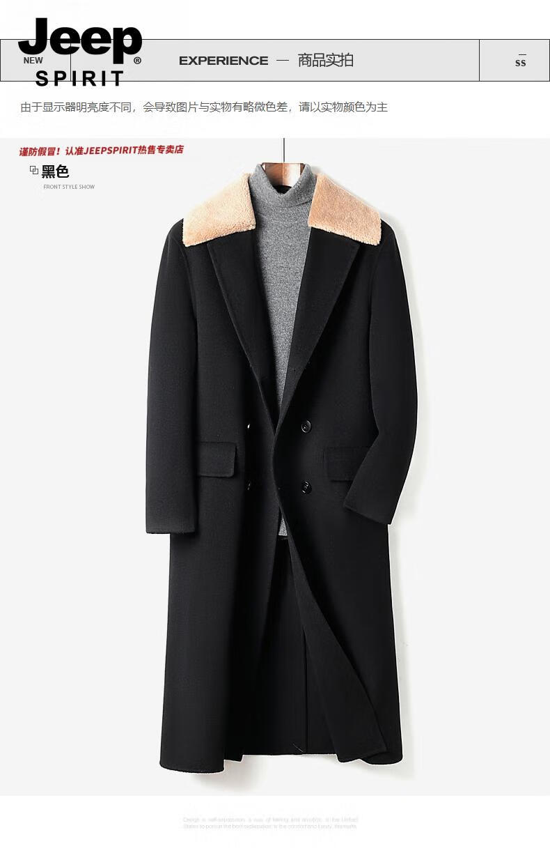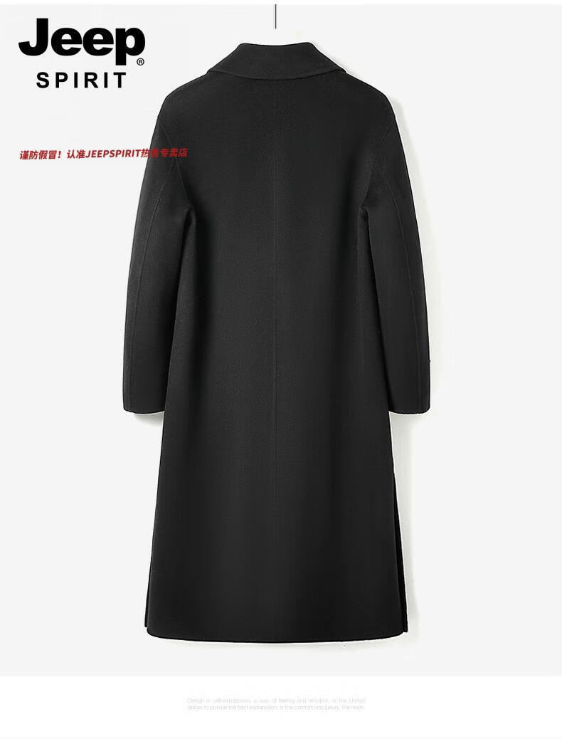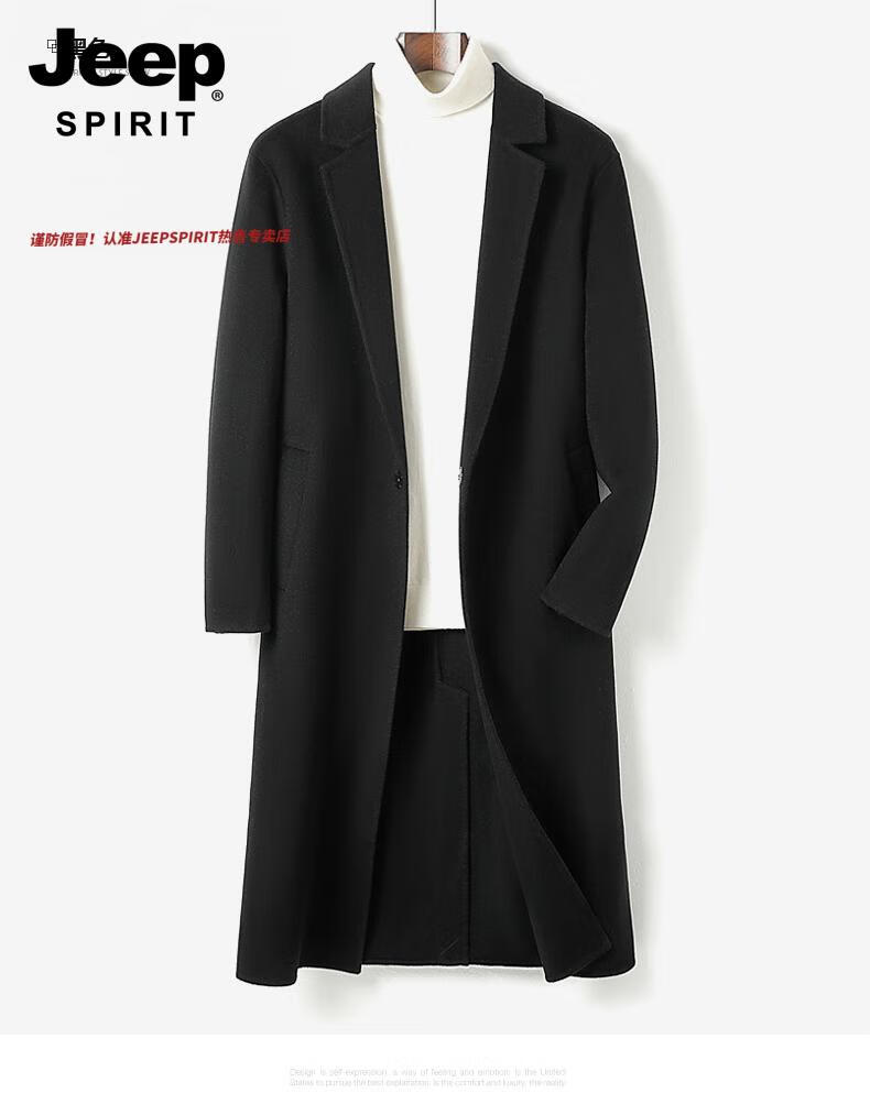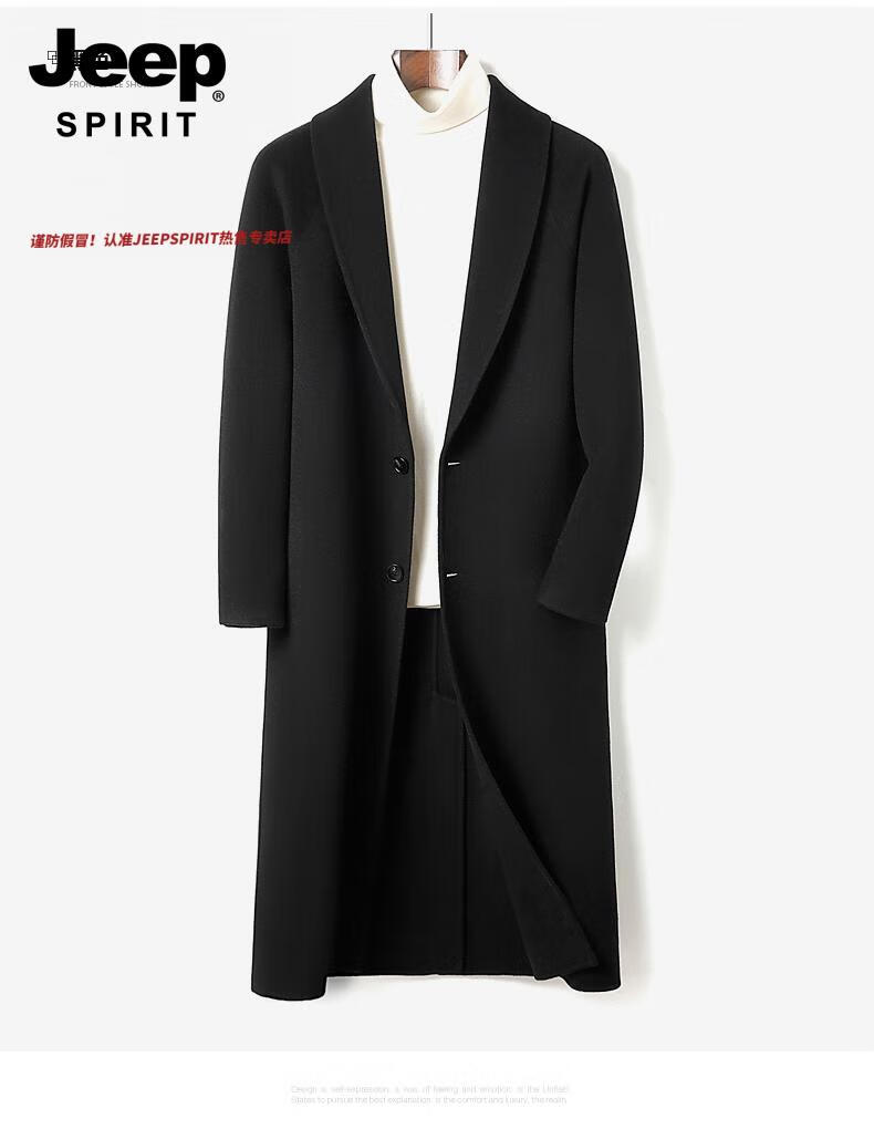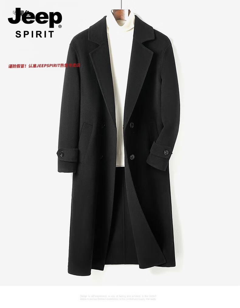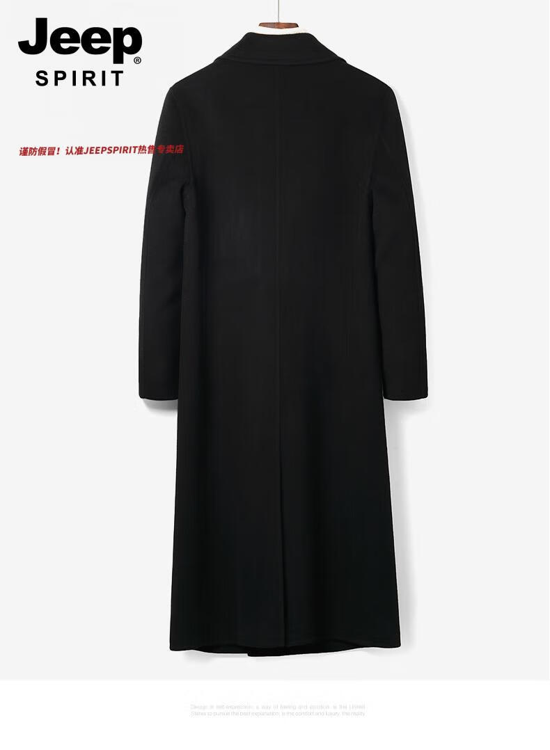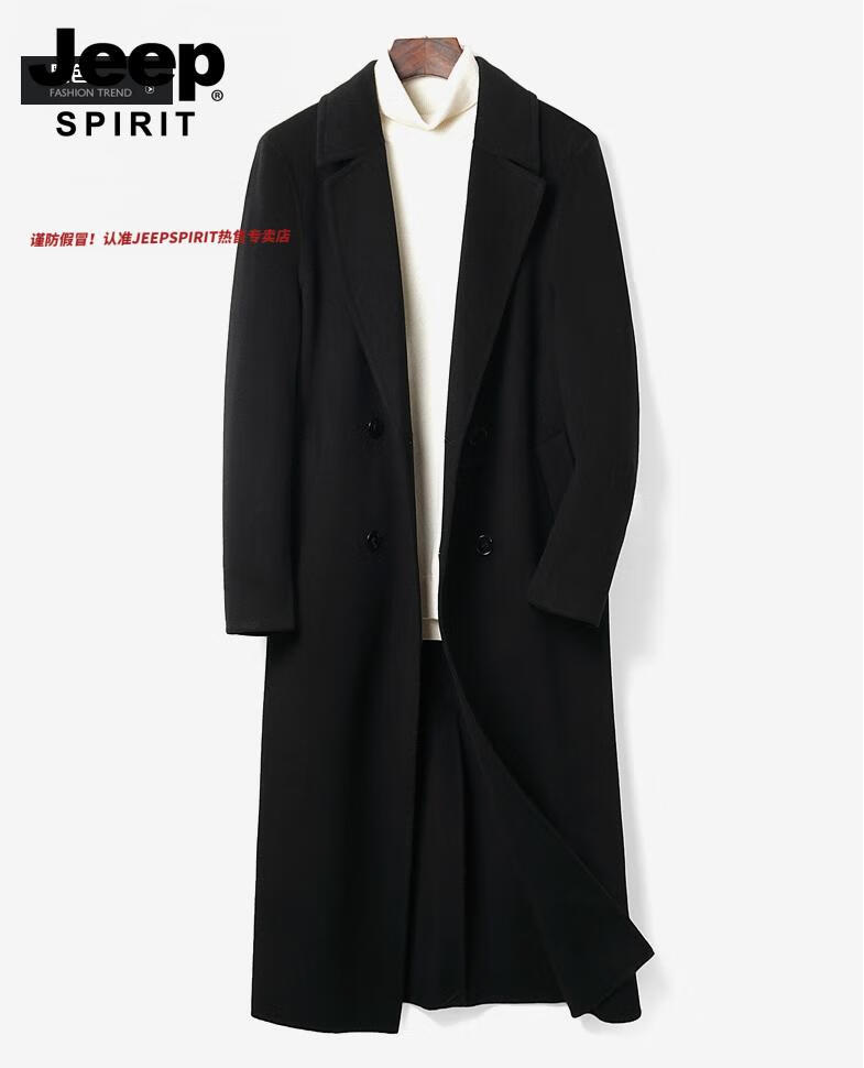 JEEP SPIRIT sense Australian wool woolen coat men's long knee-high double-breasted slim coat windbreaker cool black_132_double-breasted_notched upside down collar high-end quality_very one size 48