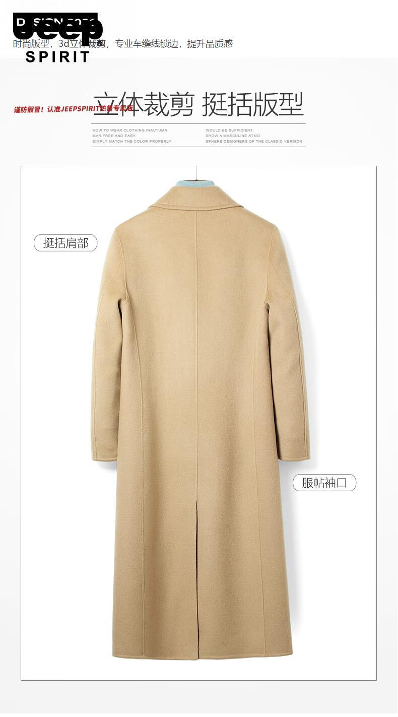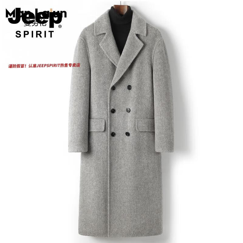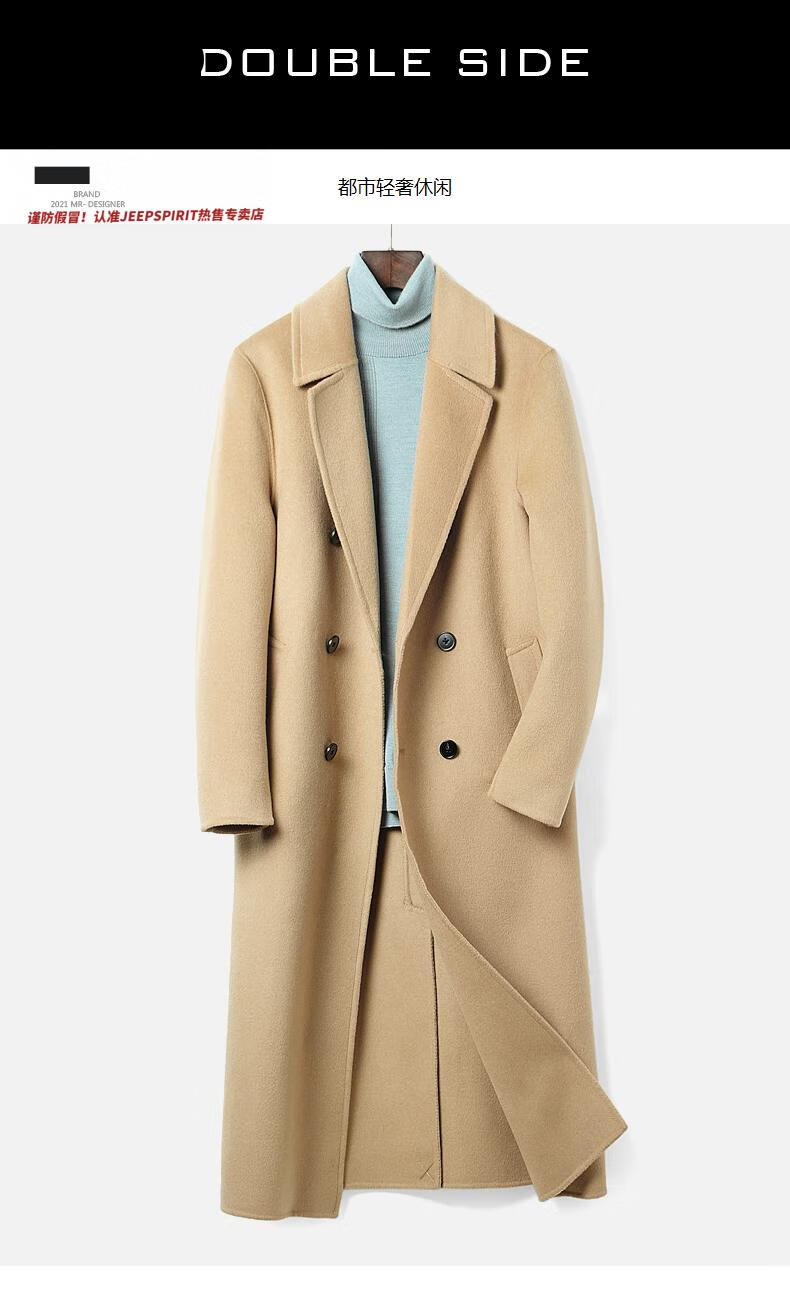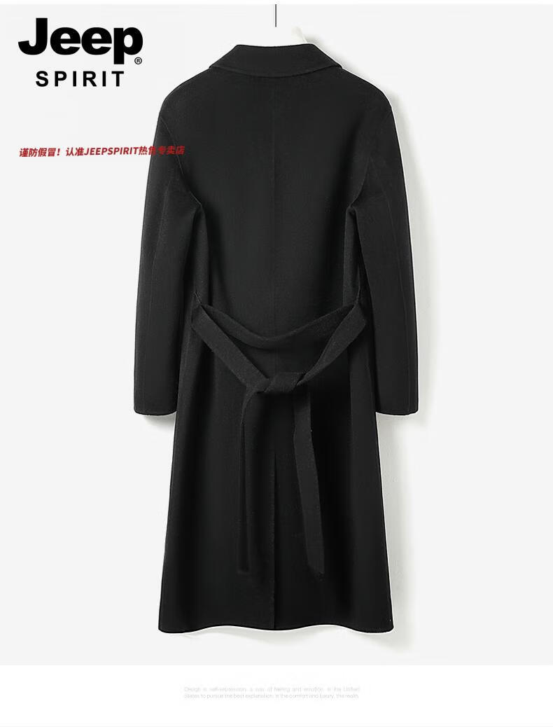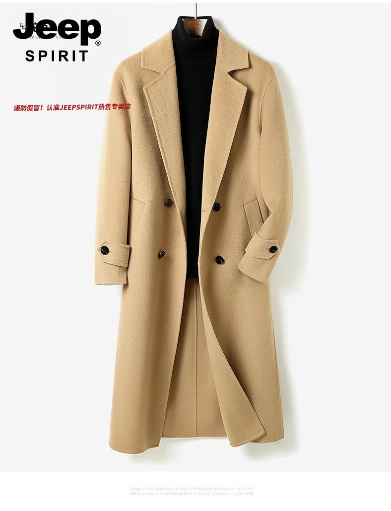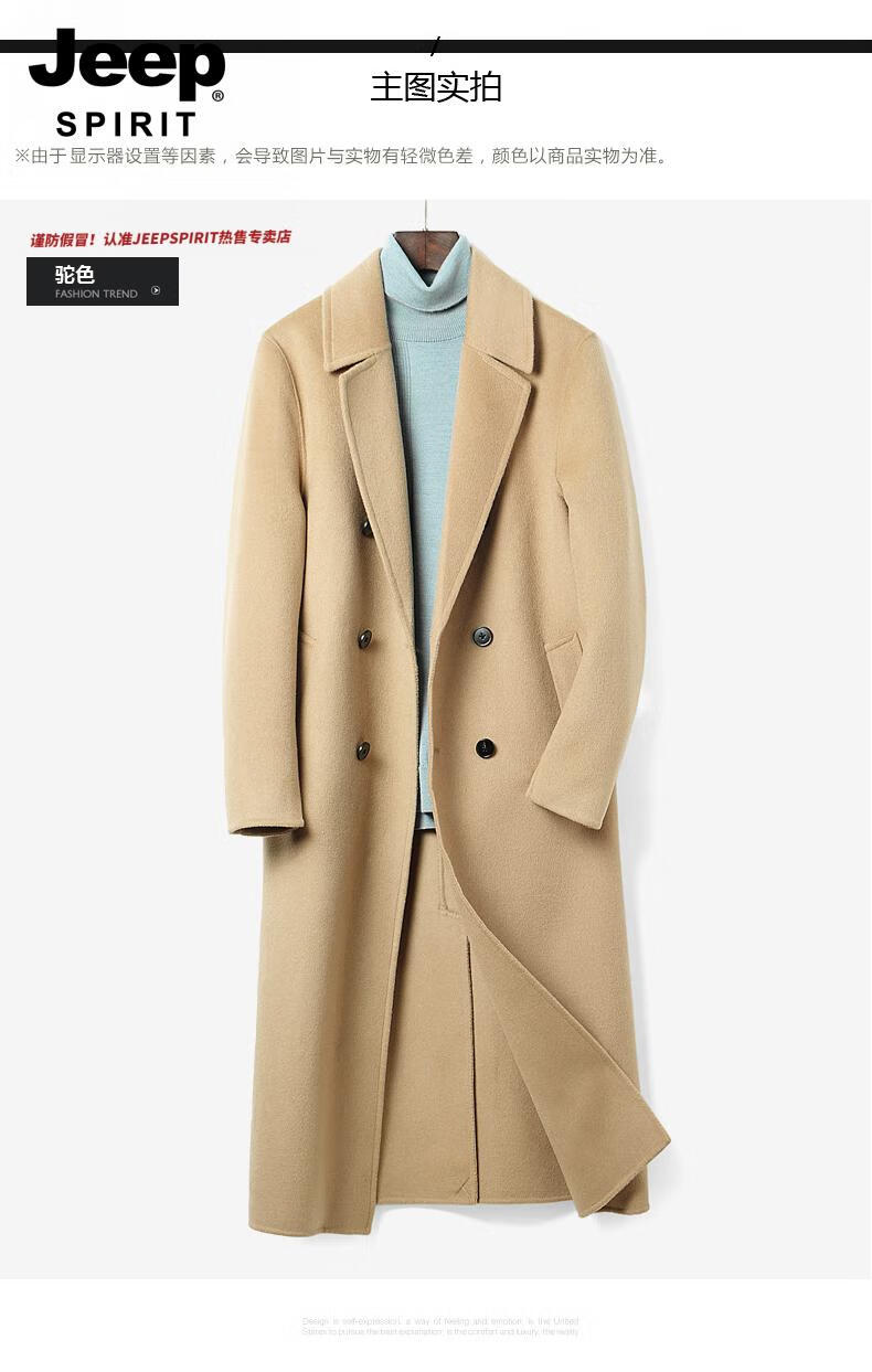 JEEP SPIRIT sense Australian wool woolen coat men's long knee-high double-breasted slim coat windbreaker cool black_132_double-breasted_notched upside down collar high-end quality_very one size 48