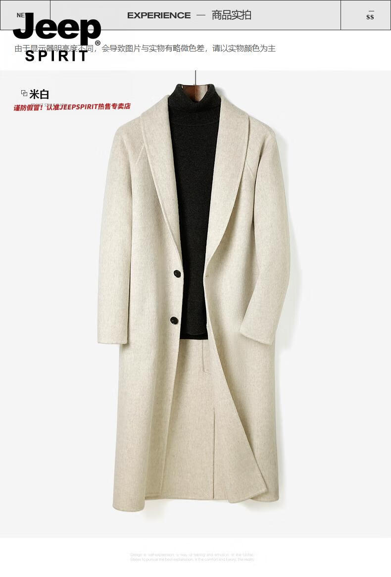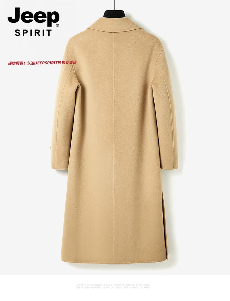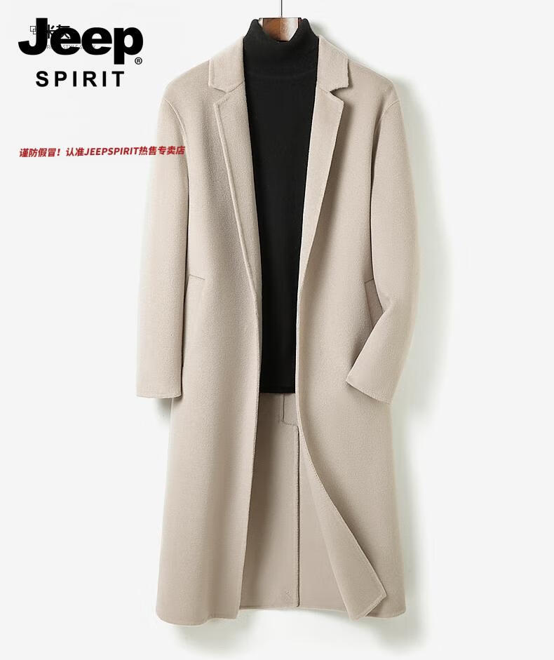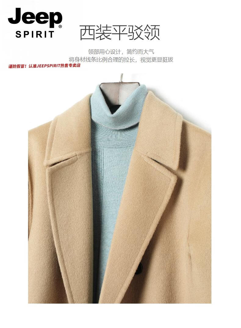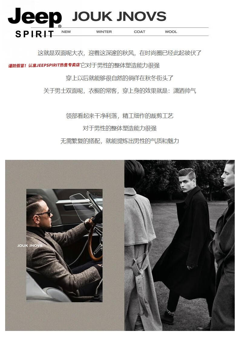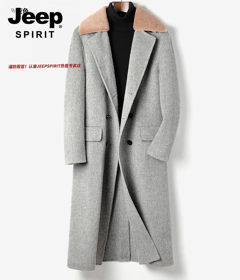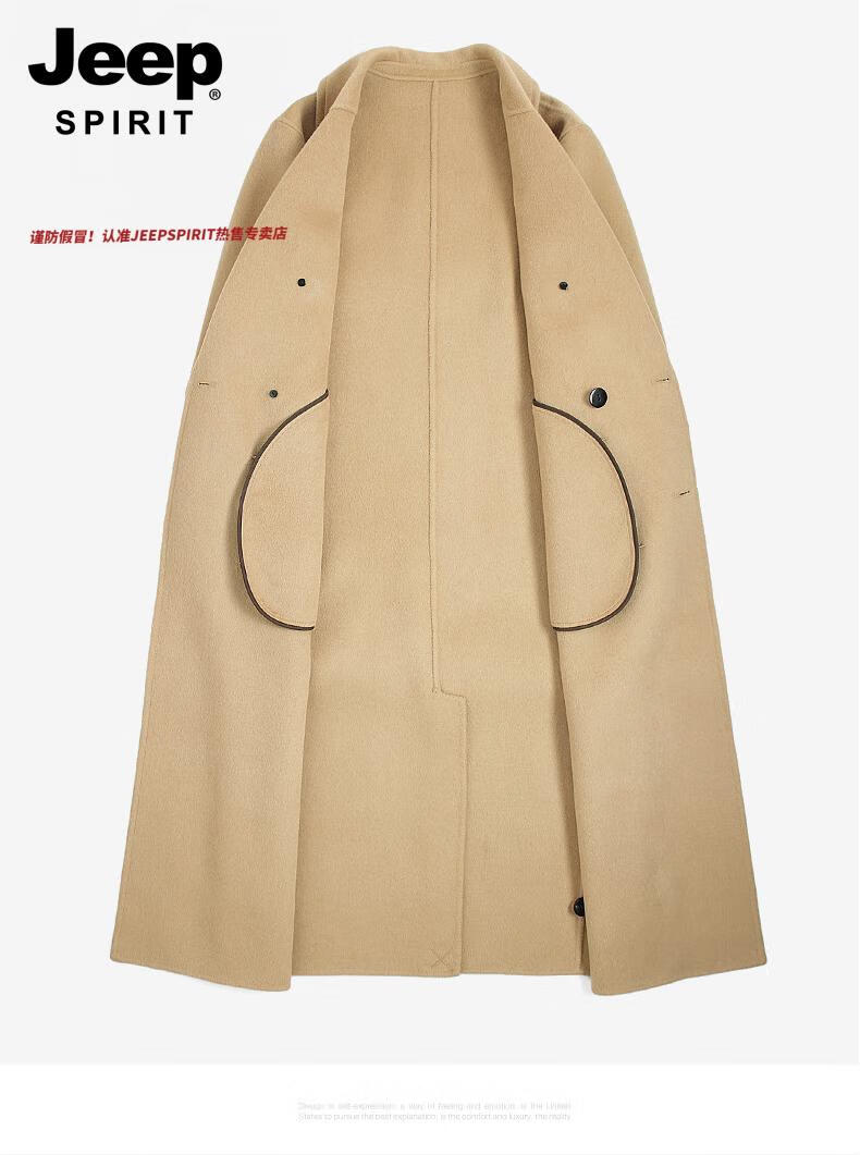 JEEP SPIRIT sense Australian wool woolen coat men's long knee-high double-breasted slim coat windbreaker cool black_132_double-breasted_notched upside down collar high-end quality_very one size 48