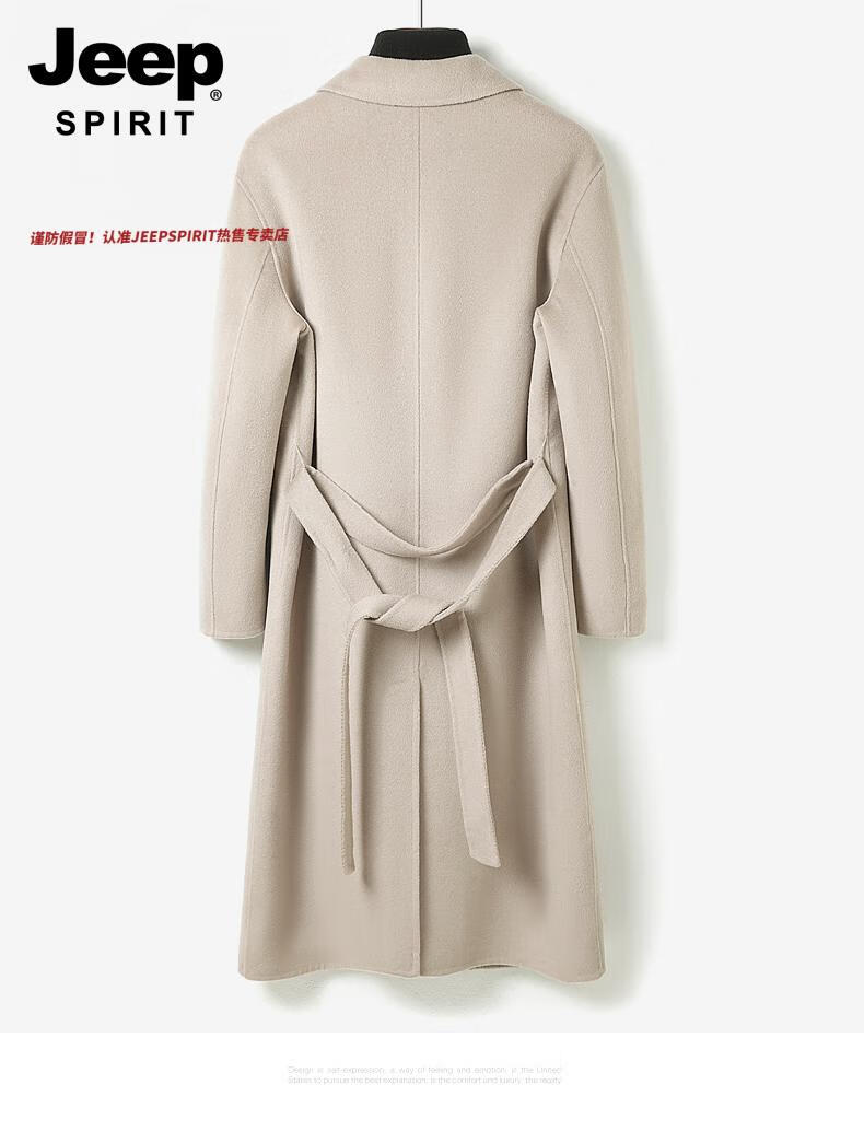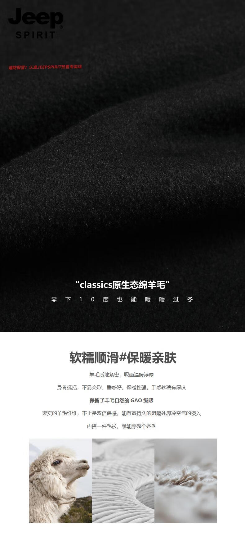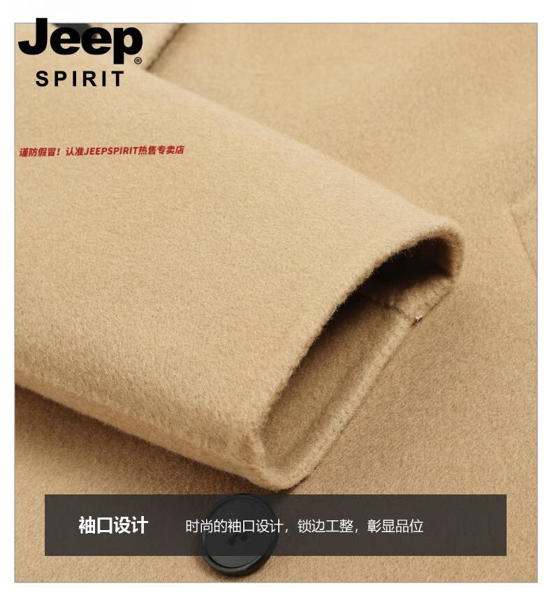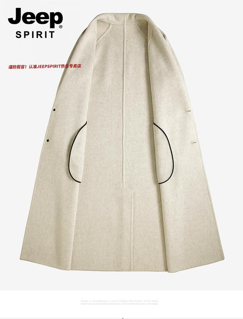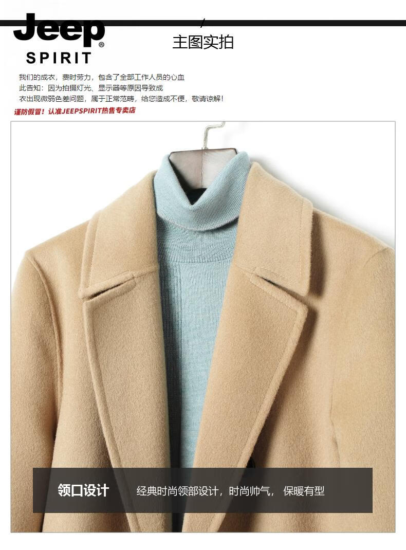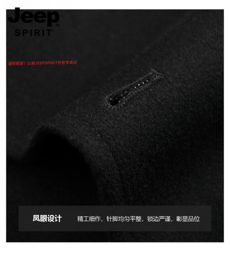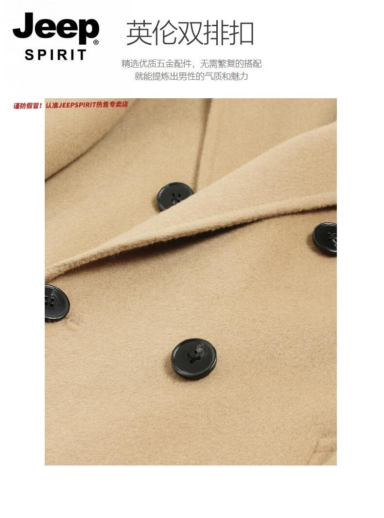 JEEP SPIRIT sense Australian wool woolen coat men's long knee-high double-breasted slim coat windbreaker cool black_132_double-breasted_notched upside down collar high-end quality_very one size 48