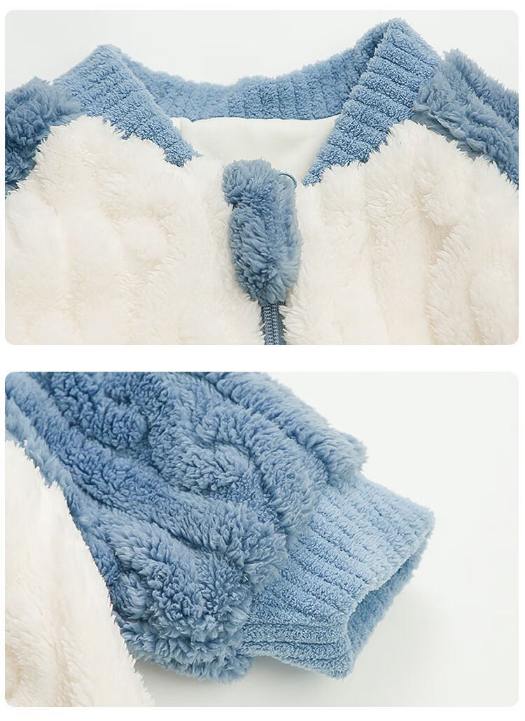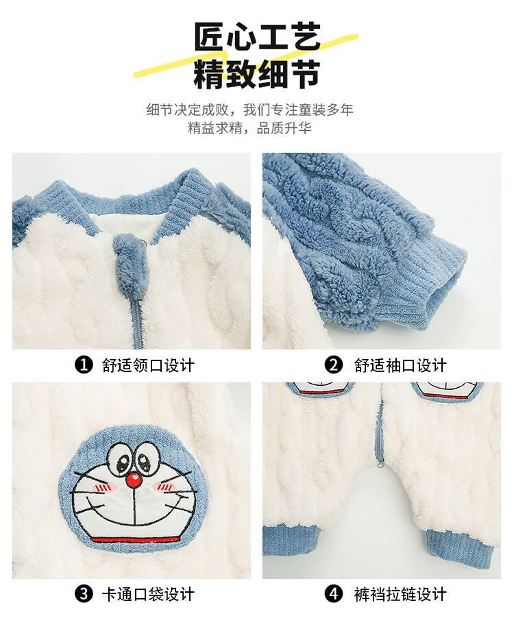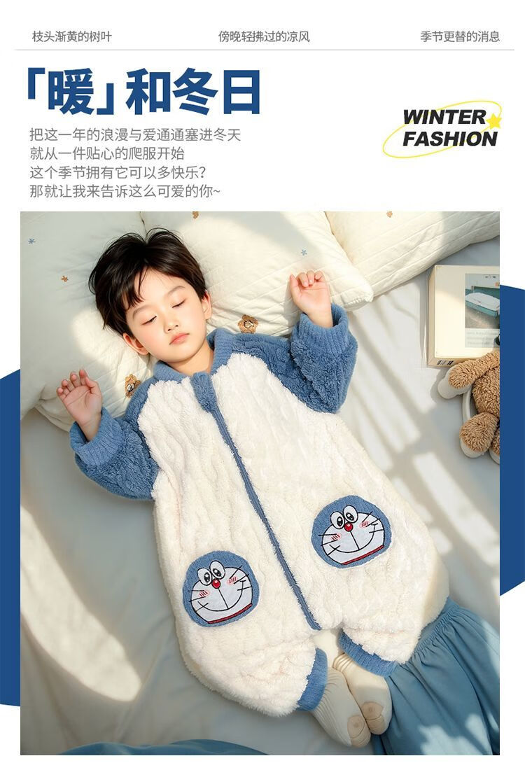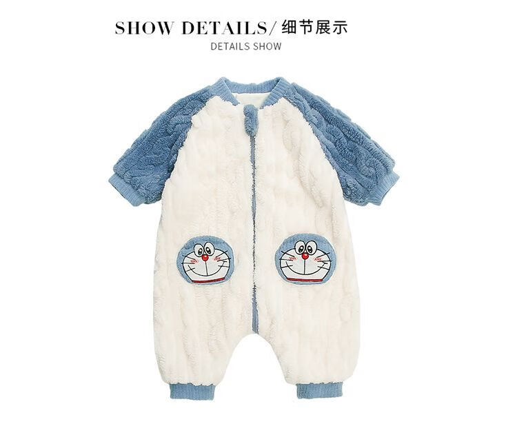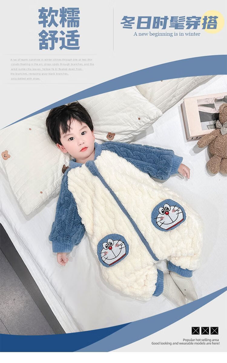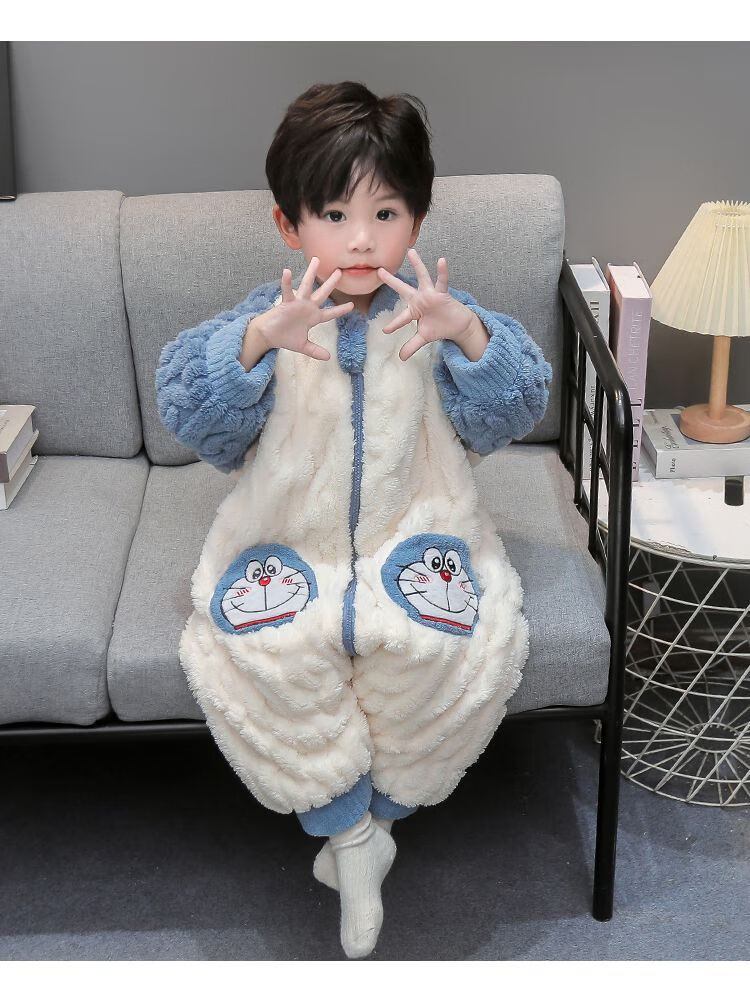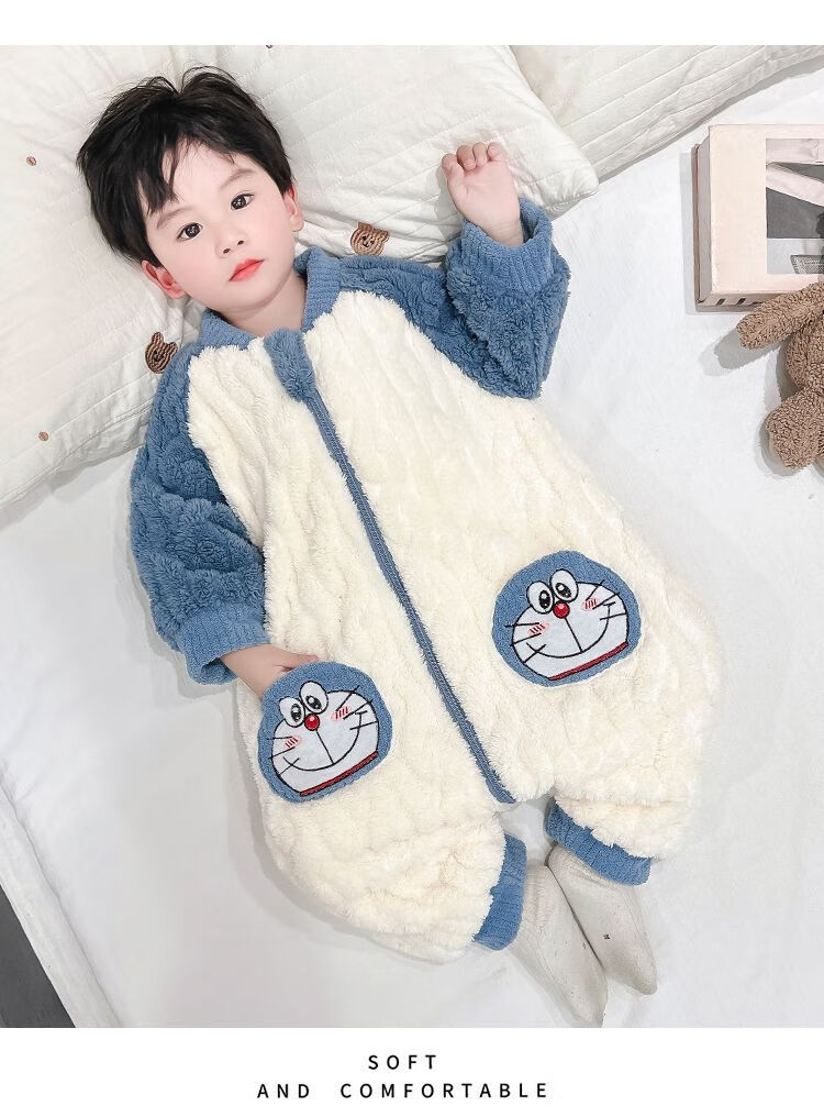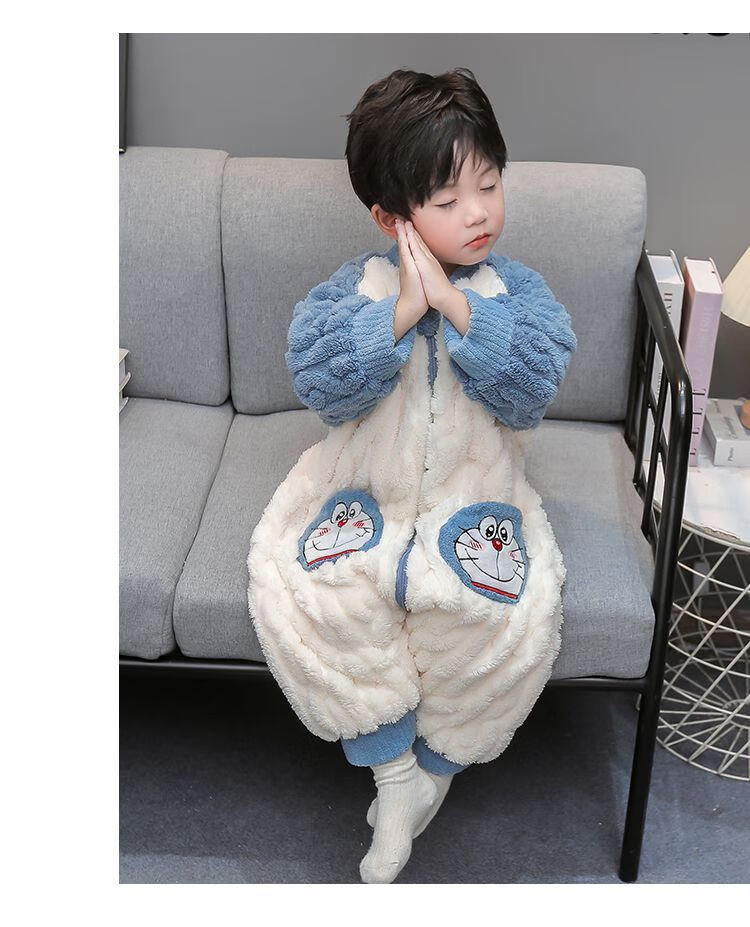 Children's one-piece pajamas autumn and winter coral velvet thickened baby anti-kick quilt winter flannel boy sleeping bag blue 90