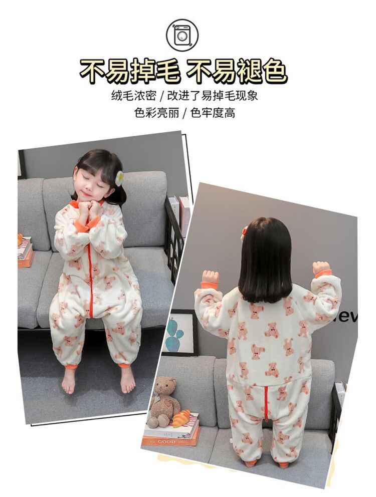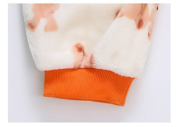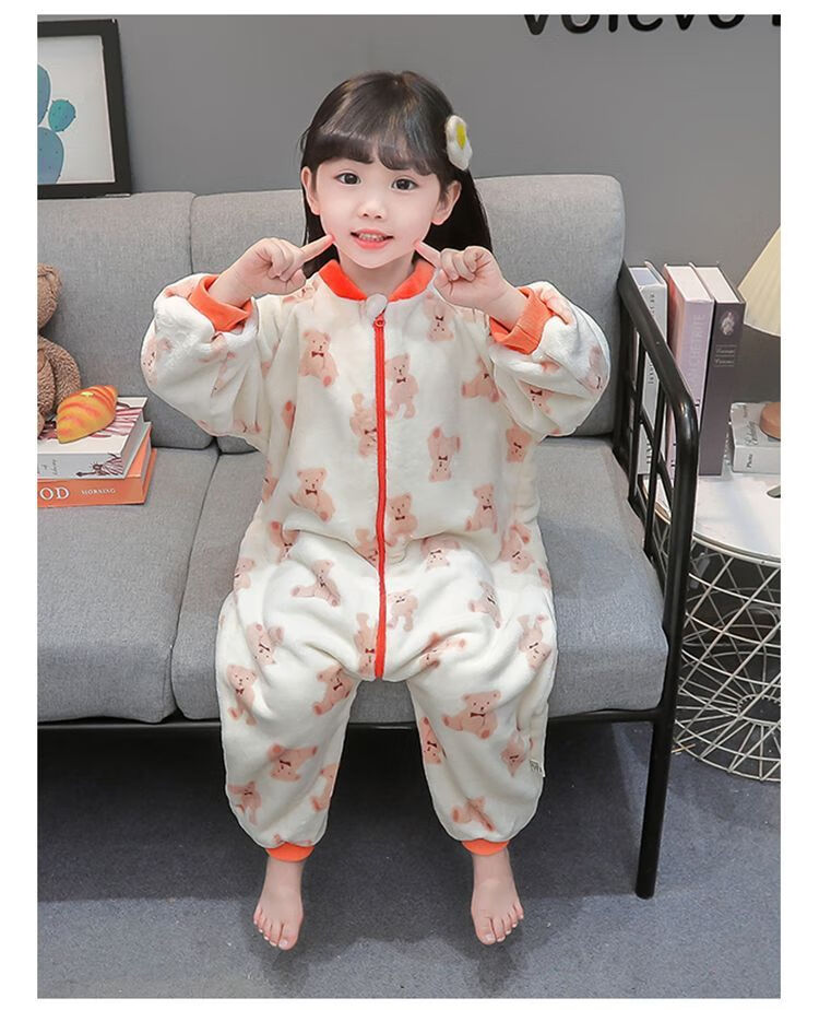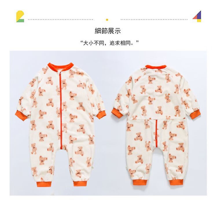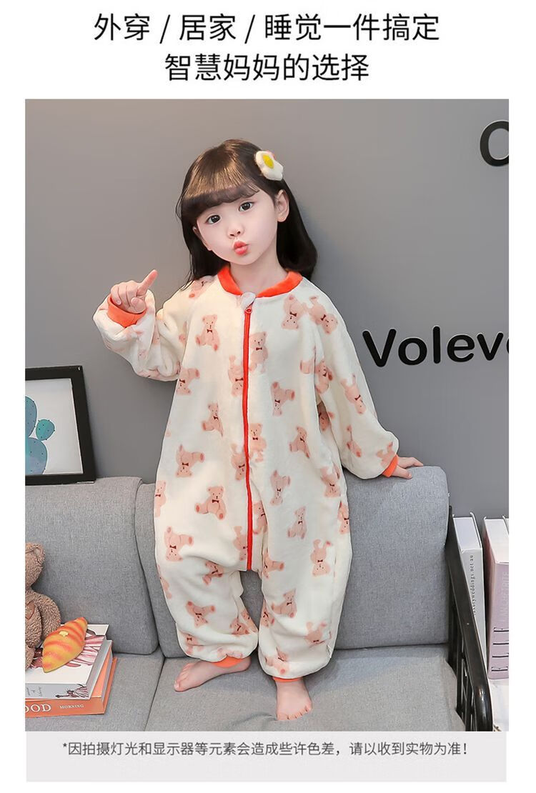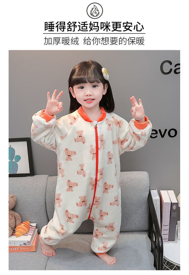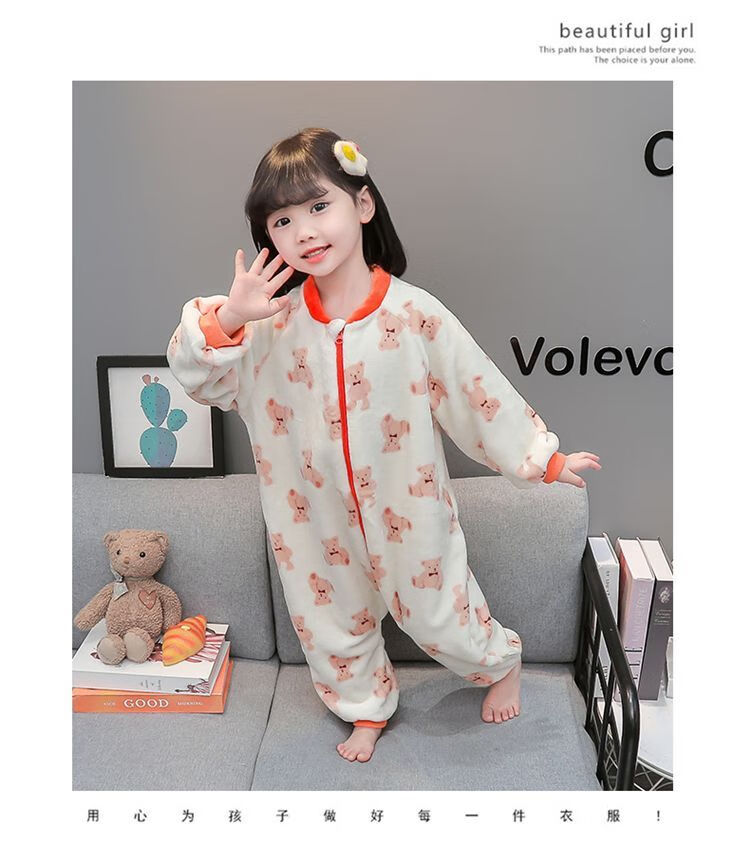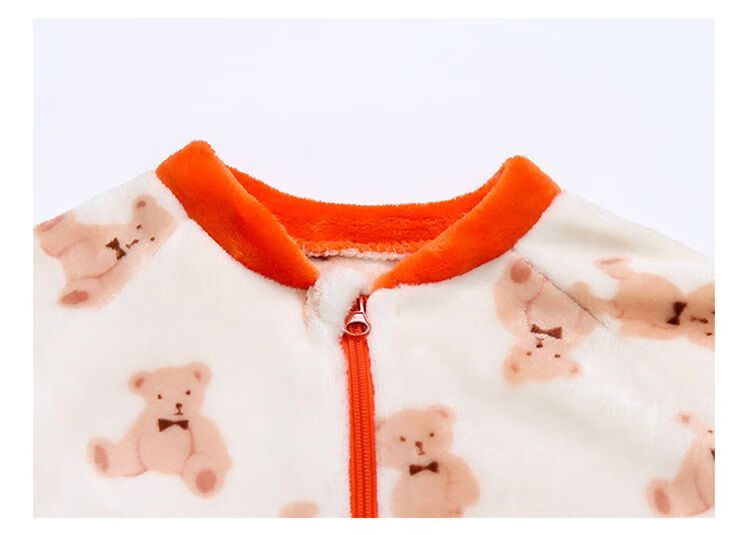 Children's coral velvet one-piece pajamas for autumn and winter girls' flannel sleeping bags for baby girls plus velvet and thickened rompers to keep warm Orange-double layer velvet and thickened 80
