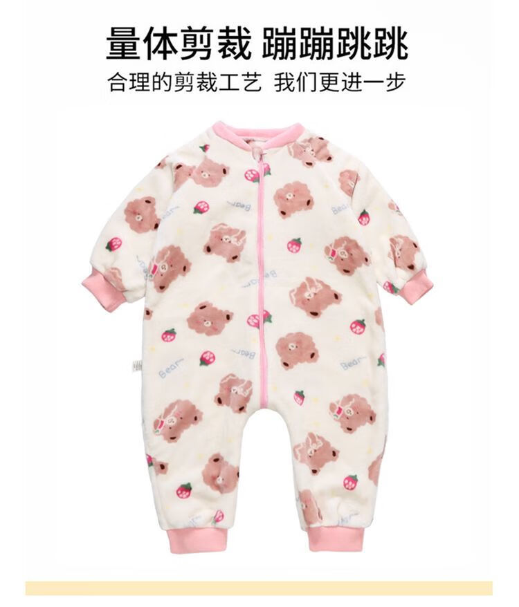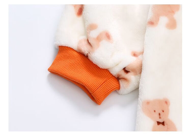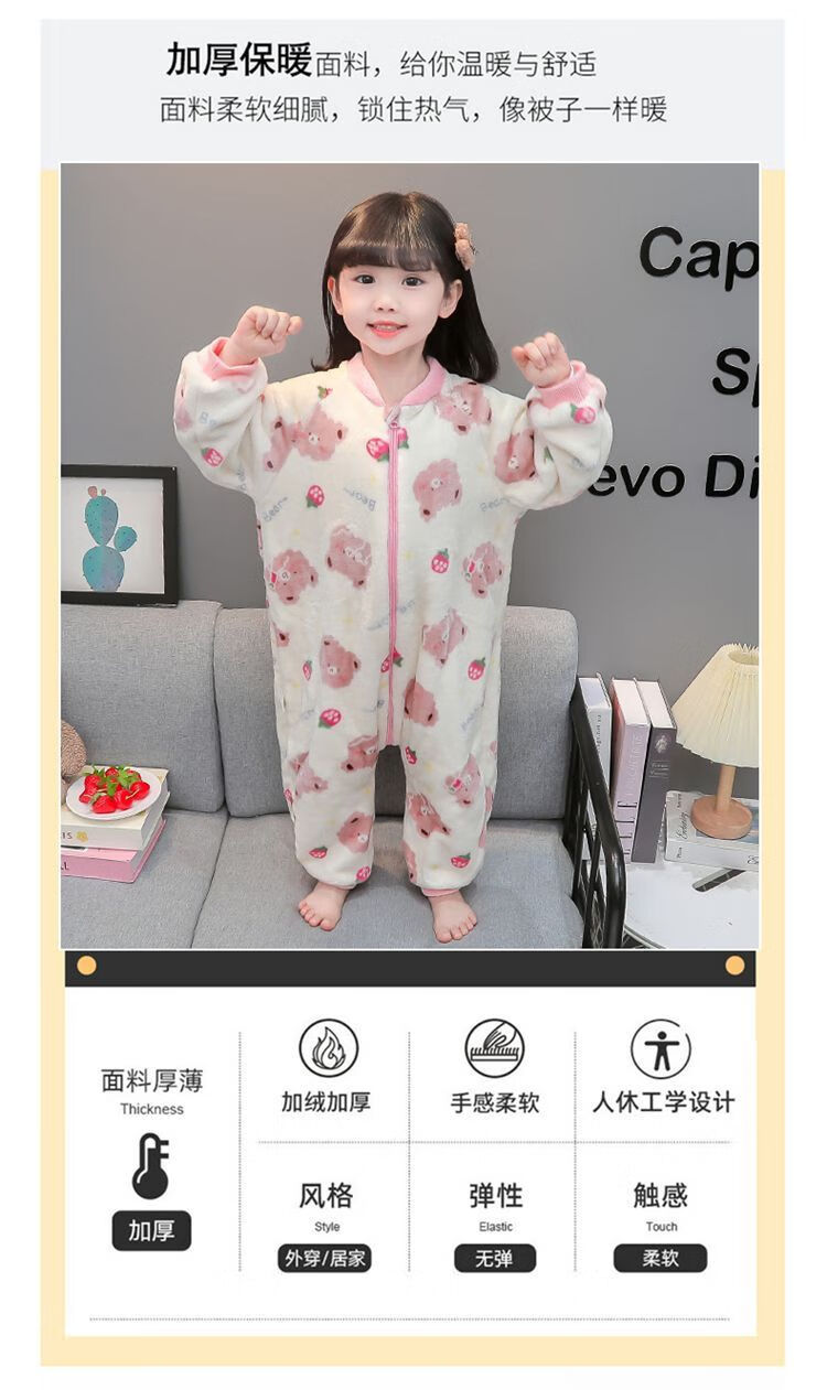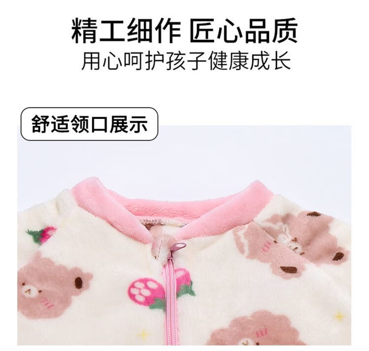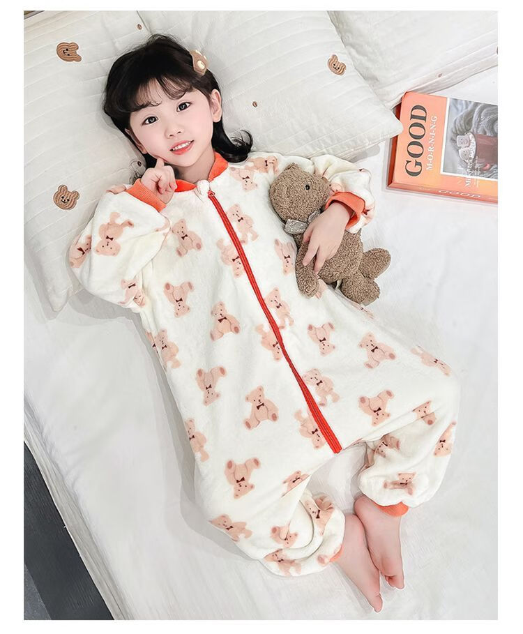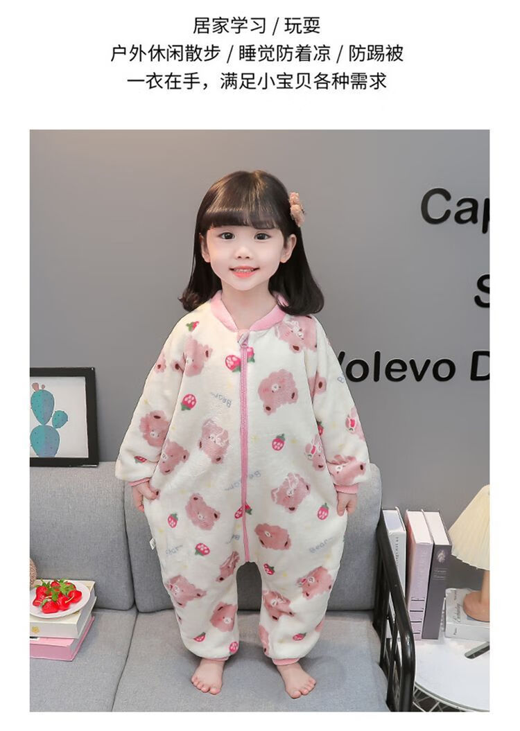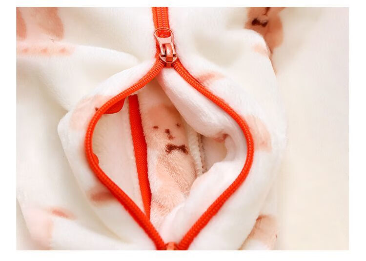 Children's coral velvet one-piece pajamas for autumn and winter girls' flannel sleeping bags for baby girls plus velvet and thickened rompers to keep warm Orange-double layer velvet and thickened 80