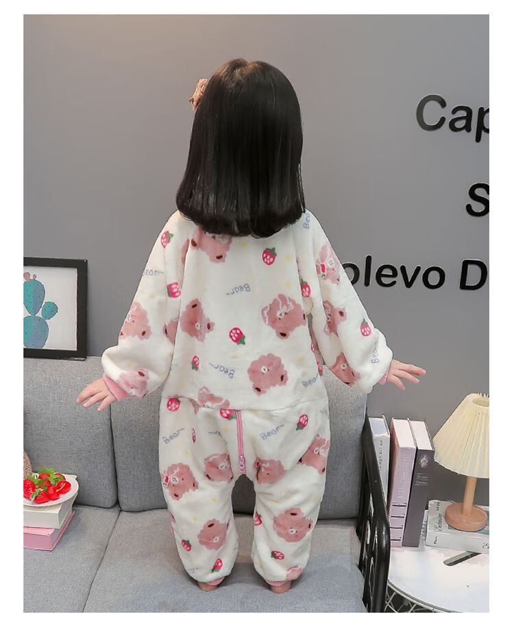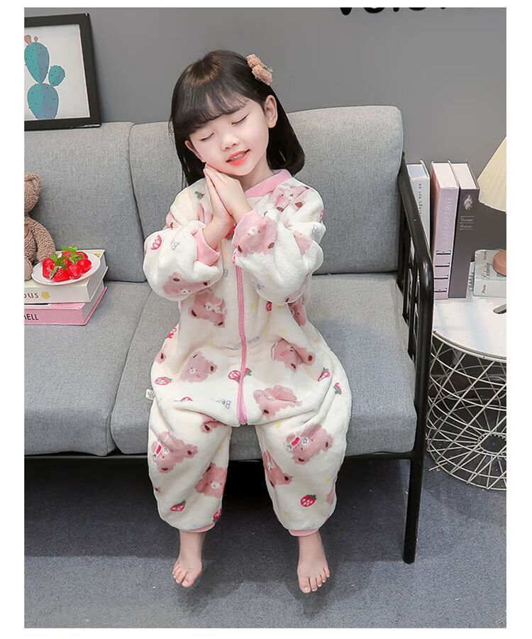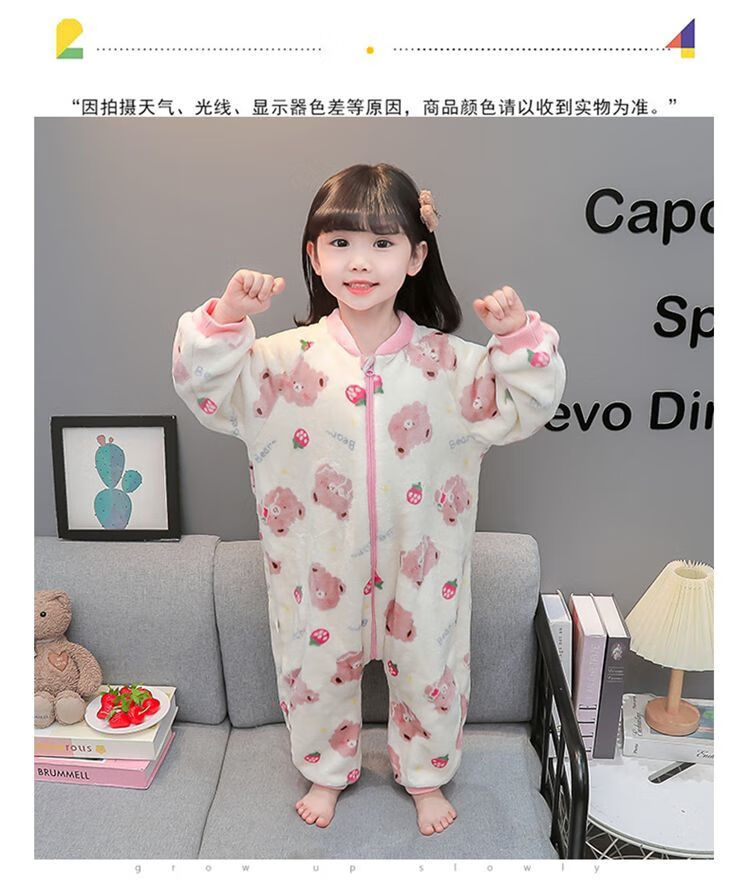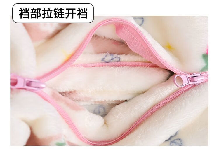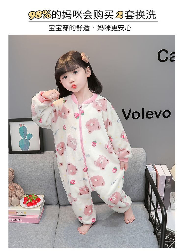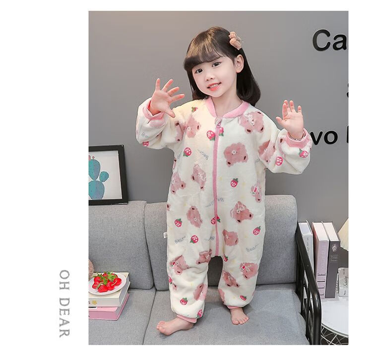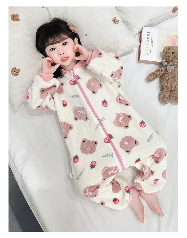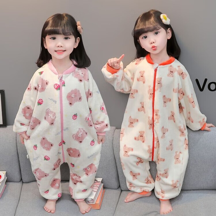 Children's coral velvet one-piece pajamas for autumn and winter girls' flannel sleeping bags for baby girls plus velvet and thickened rompers to keep warm Orange-double layer velvet and thickened 80