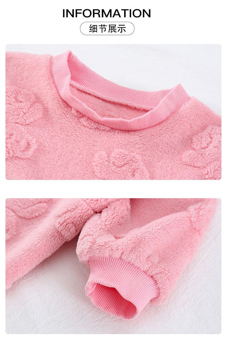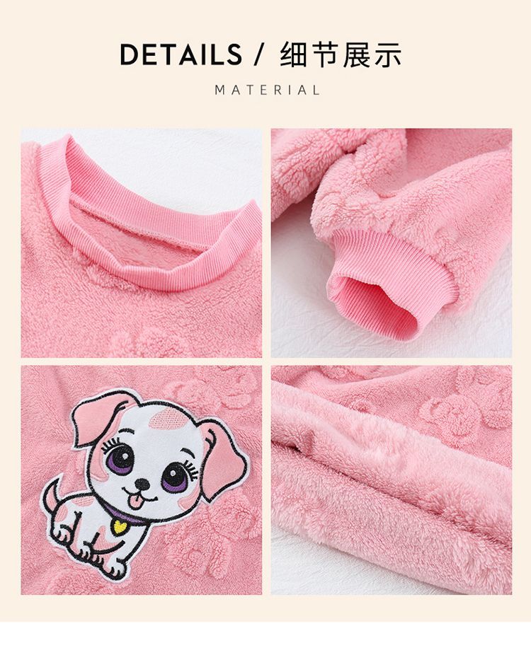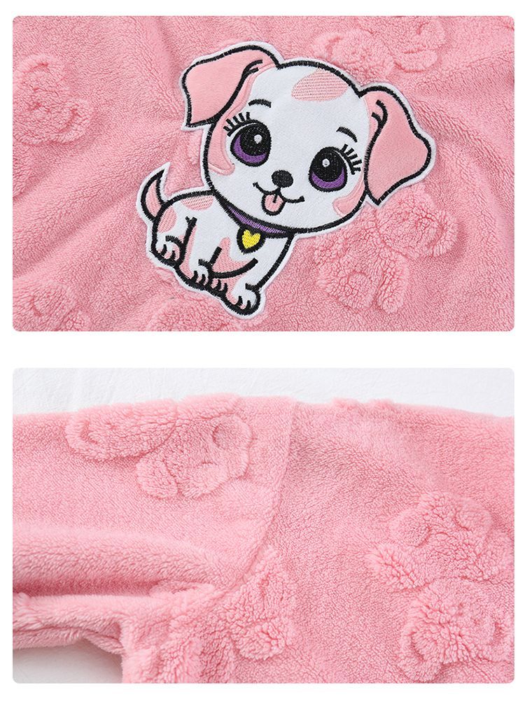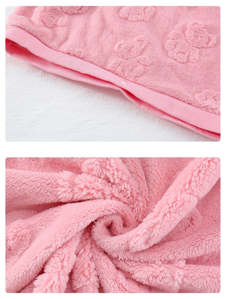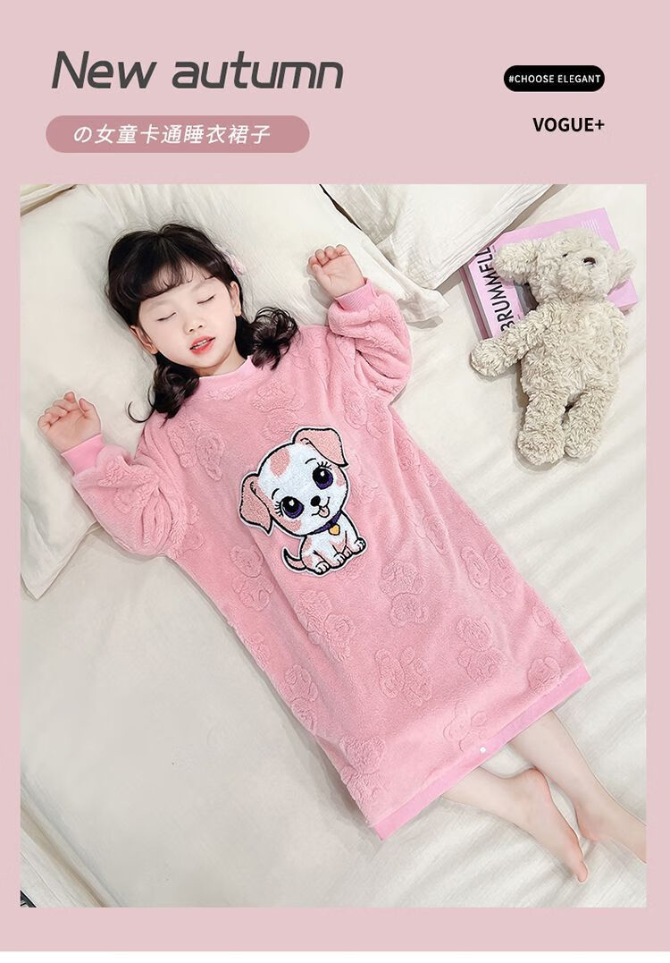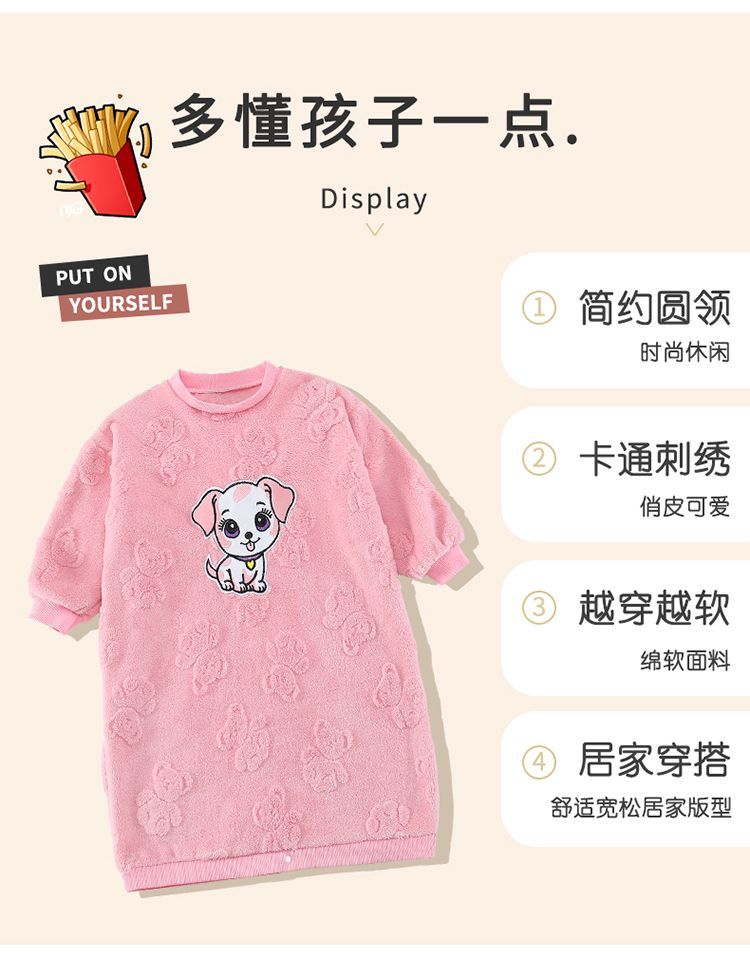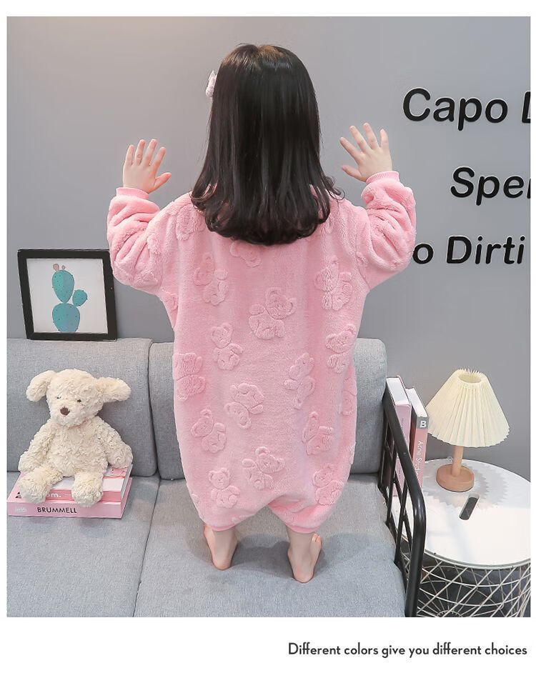 Girls autumn and winter flannel nightgown baby girl home clothes cute children girls coral velvet pajamas thickened sleeping bag off-white high density jacquard bear nightgown 90