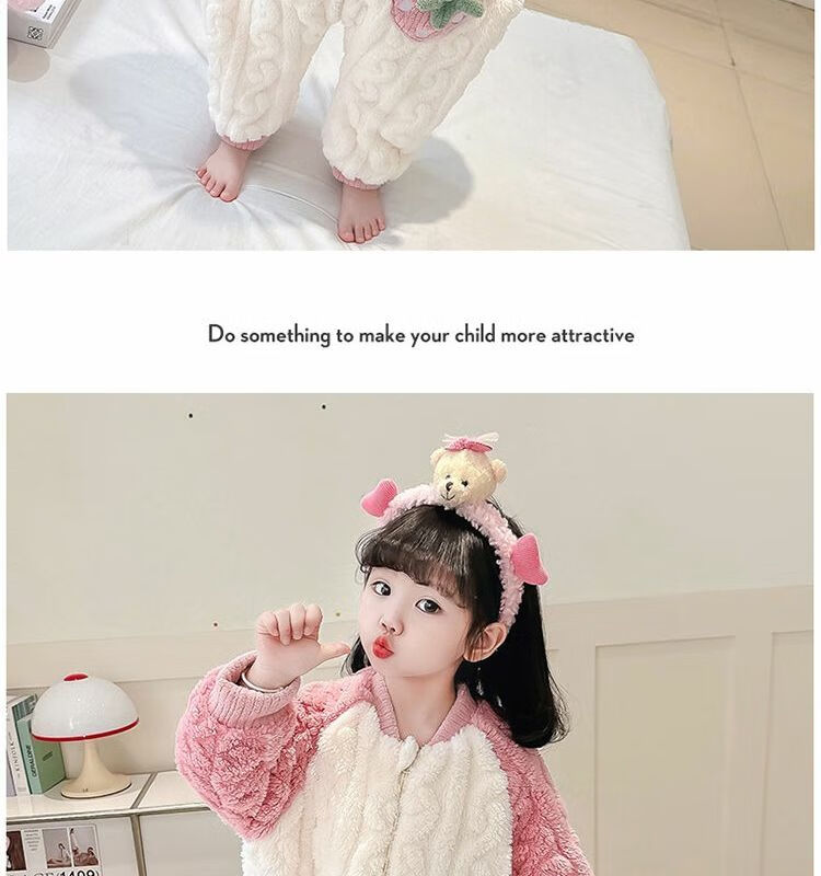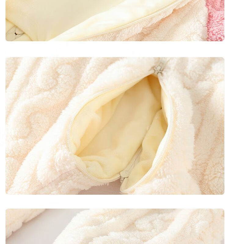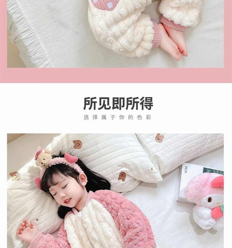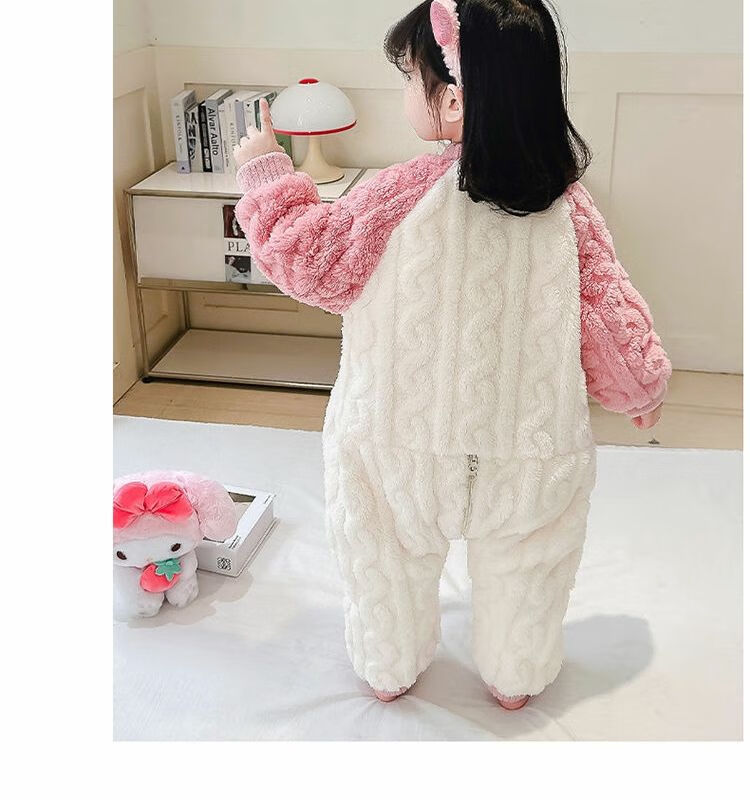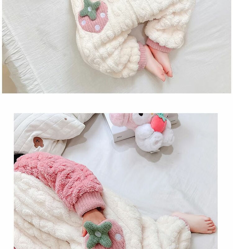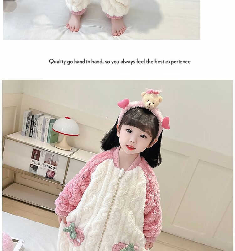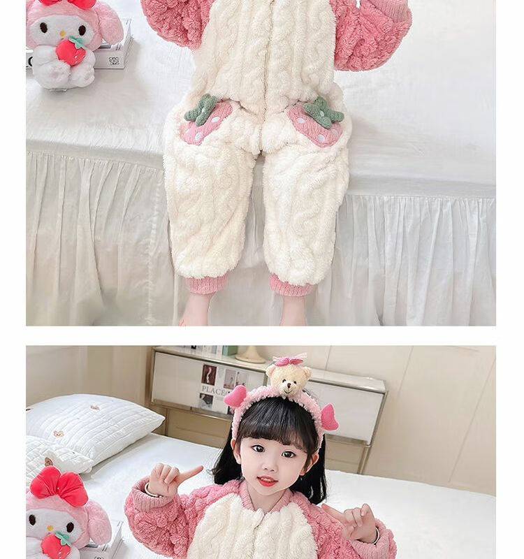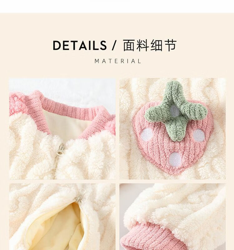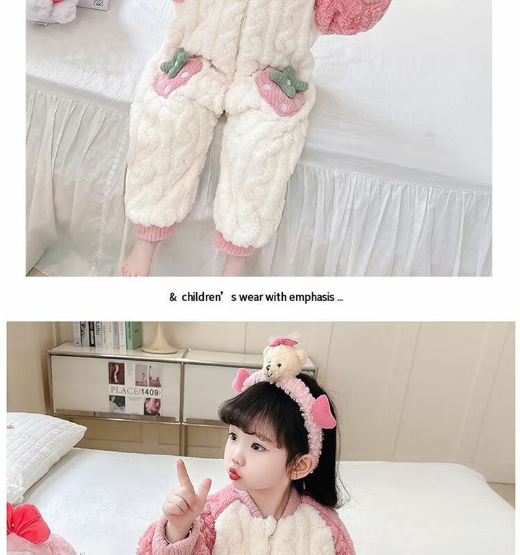 Girls sleeping bag one-piece coral winter thickened double layer baby autumn and winter children's flannel winter pajamas strawberry pink 90