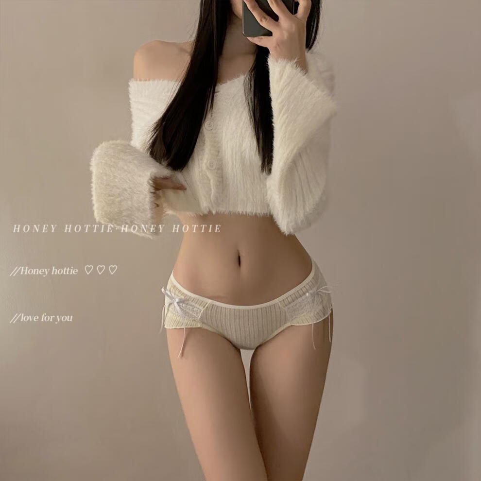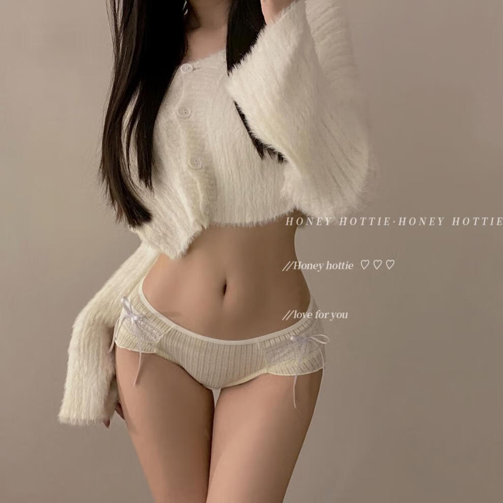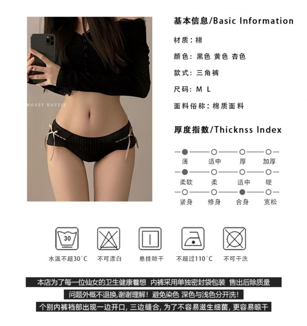Universal Japanese simple pure cotton low-waist girls' underwear, breathable and comfortable, solid color bow new style, apricot + yellow + black, 12% off for orders of 5 pieces L