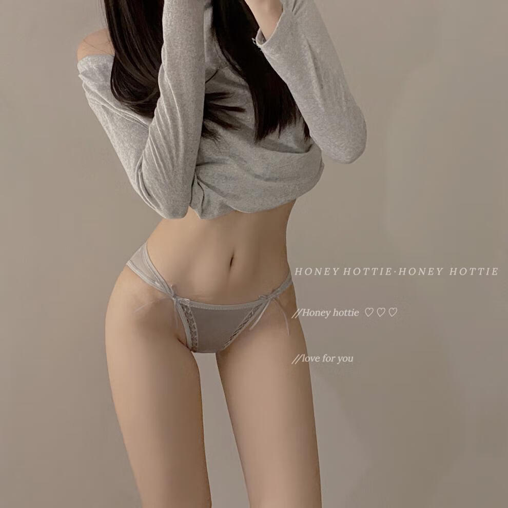Universal girly scheming, sexy and emotional lace solid color bow low-waisted thin girl underwear, black 12% off for orders of 5 pieces M