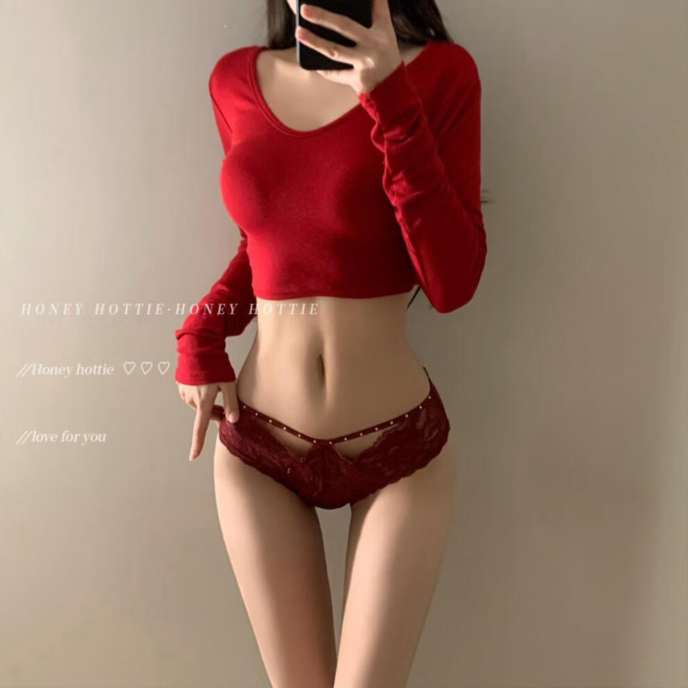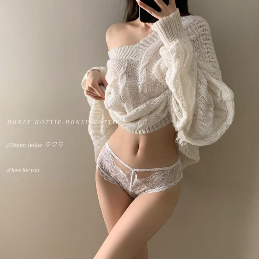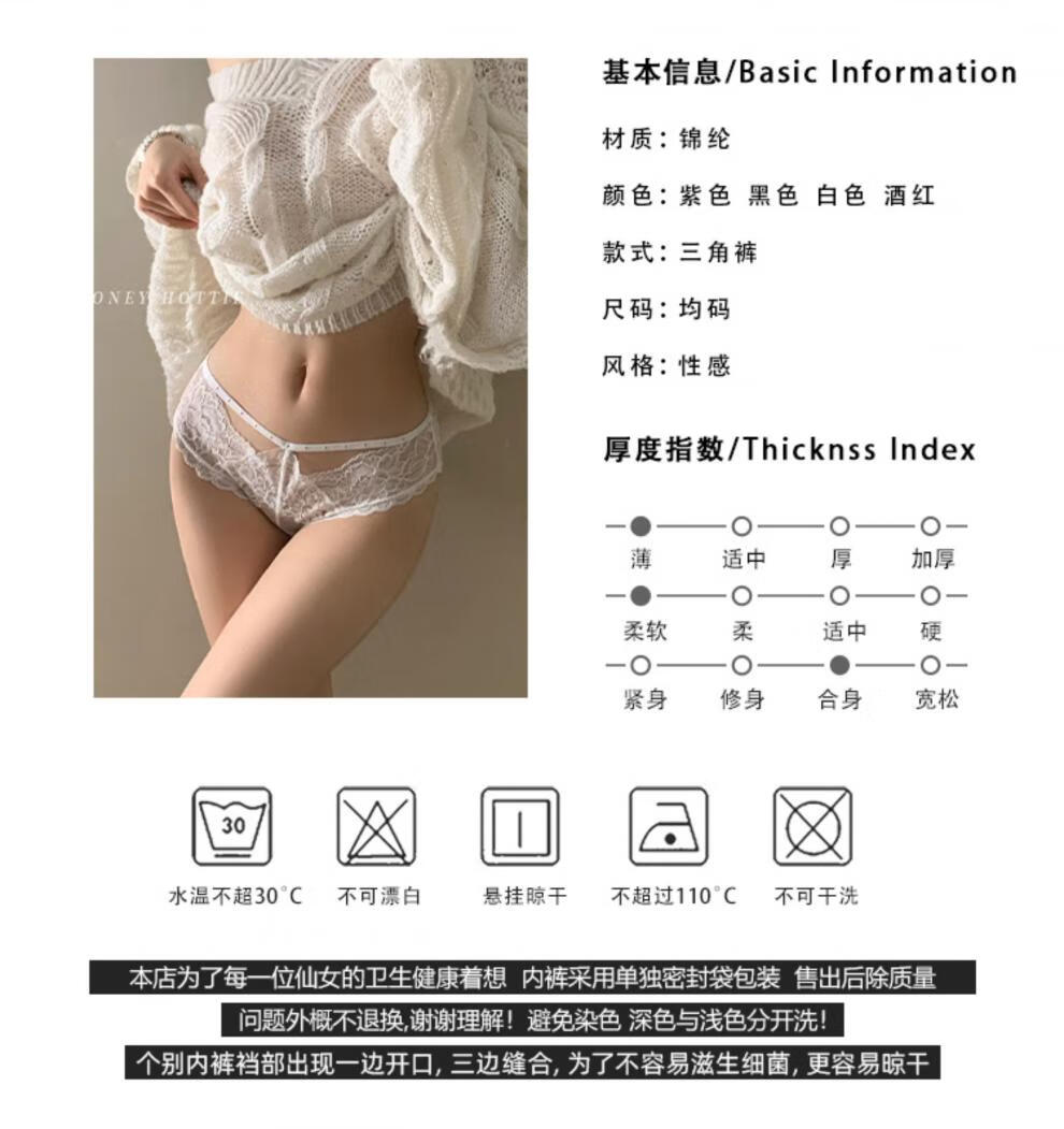 Universal Misty Whisper Pure Desire Sexy Girls Underwear Solid Color Lace Trim Low Waist Briefs White + Purple + Wine Red One Size