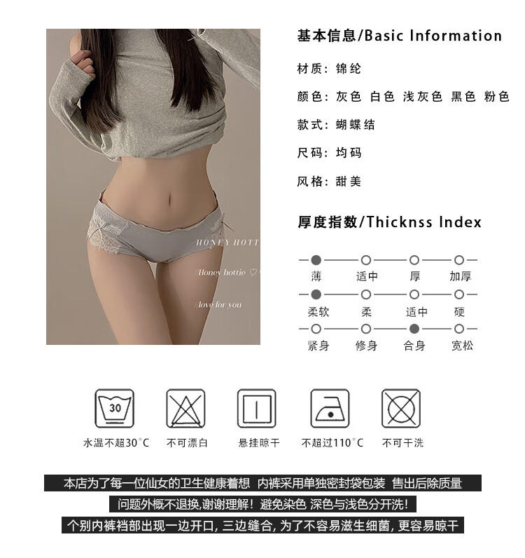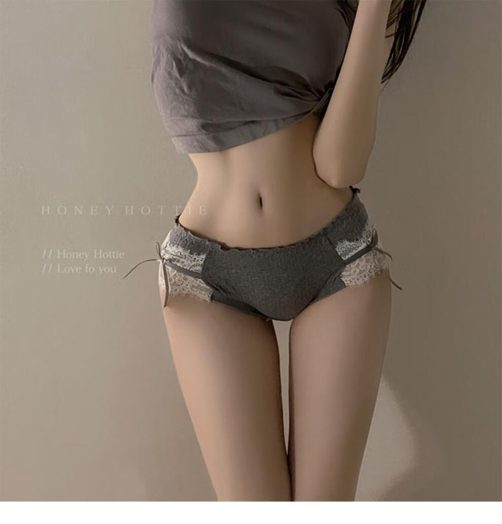 Universal toffee girl, Japanese pure lust bow girl underwear, low-waist briefs, gray + white + light gray, 12% off for orders of 5 pieces, one size fits all, suitable for 120 Jin, Jin is equal to 0.5 kg