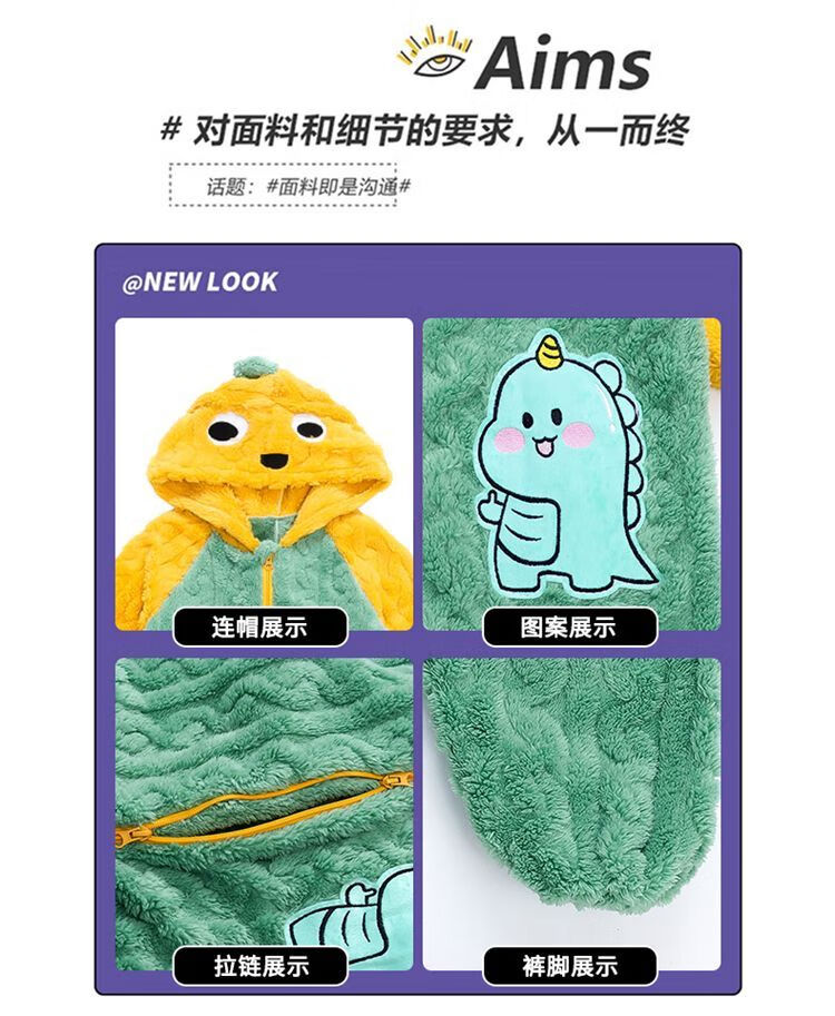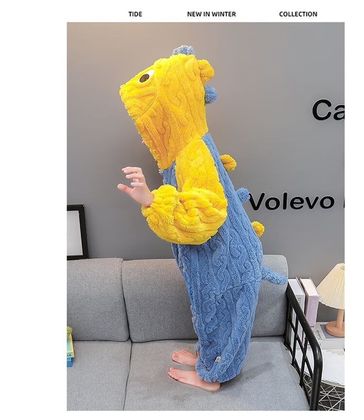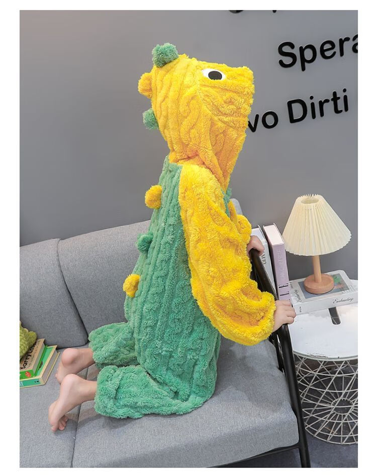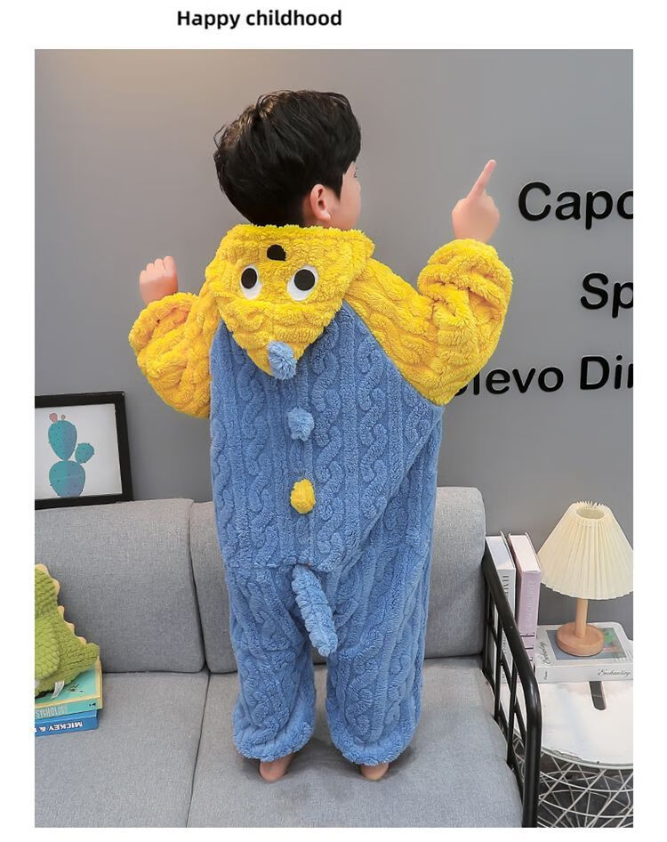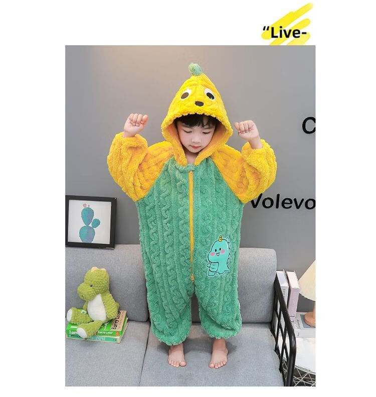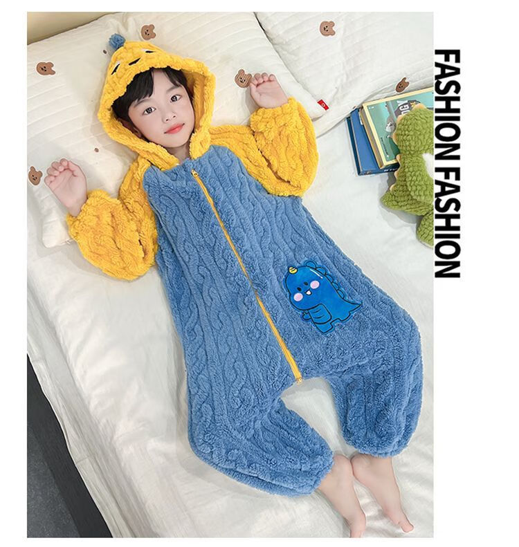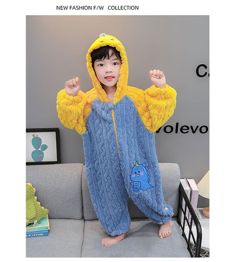 Children's flannel one-piece pajamas autumn and winter thickened boy's dinosaur romper baby coral velvet anti-kick sleeping bag to keep warm Green Dinosaur 80