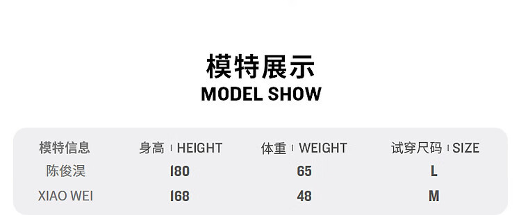 China (cm) 160-165/84-86 165-170 / 88-90 167-172 / 92-96 168-173 / 98-102 170-176 / 106-110