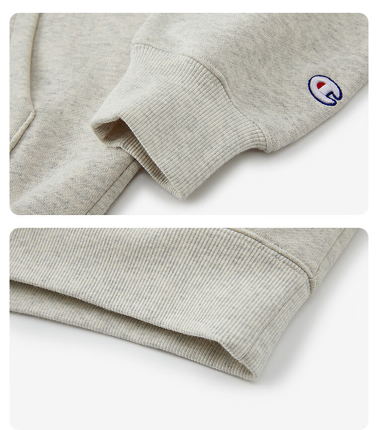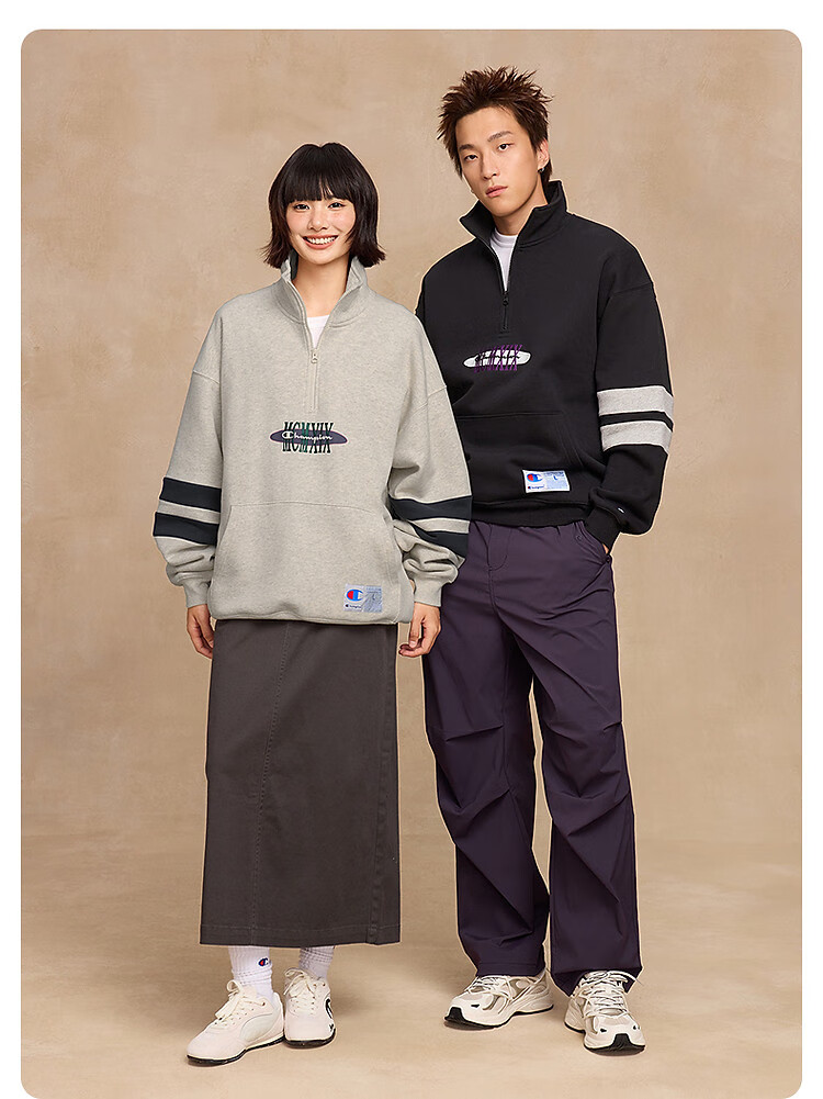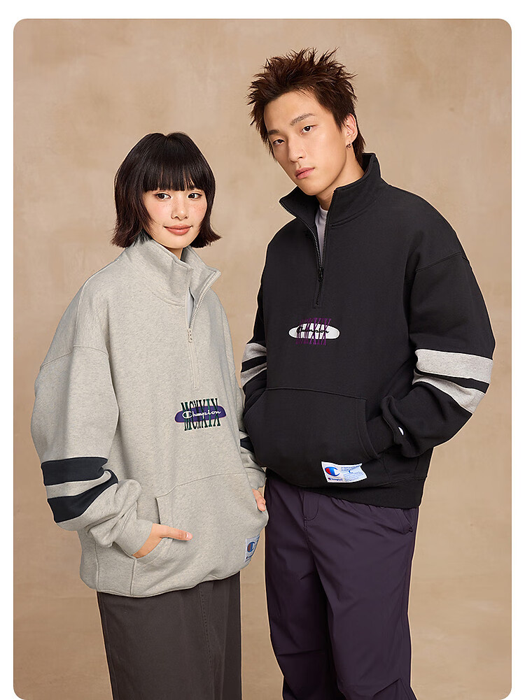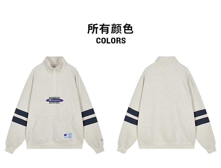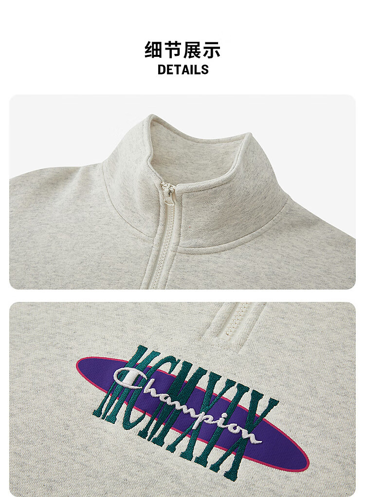 Champion brand direct sales 25 new autumn and winter sports trendy casual half-zip plus velvet men's sweatshirt star same style oatmeal color M