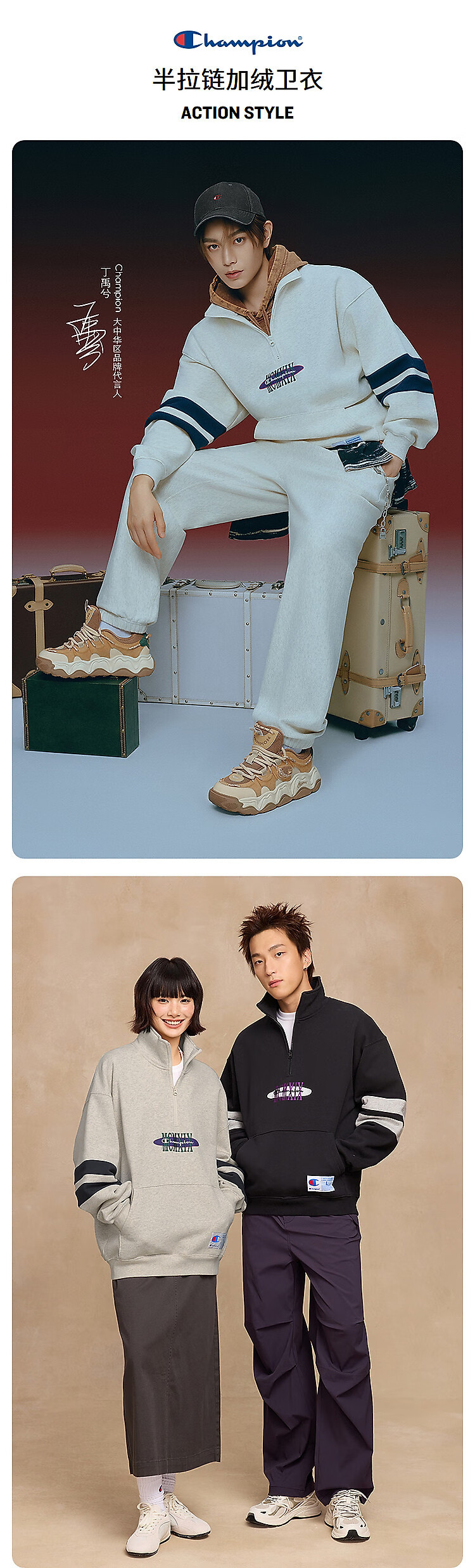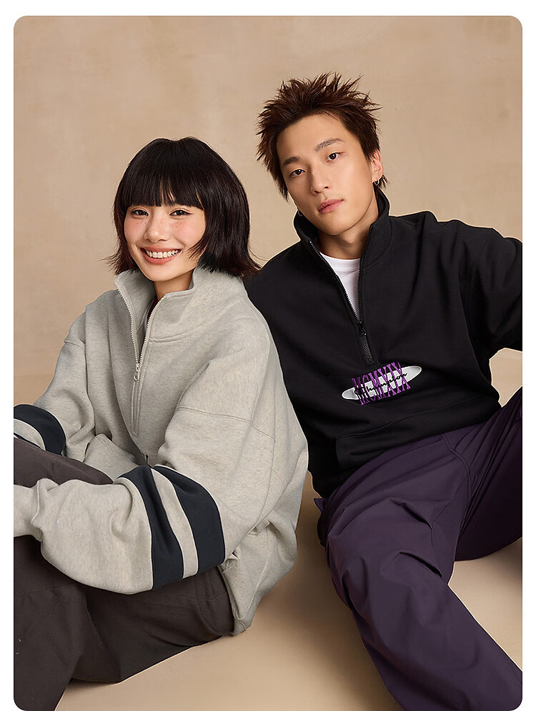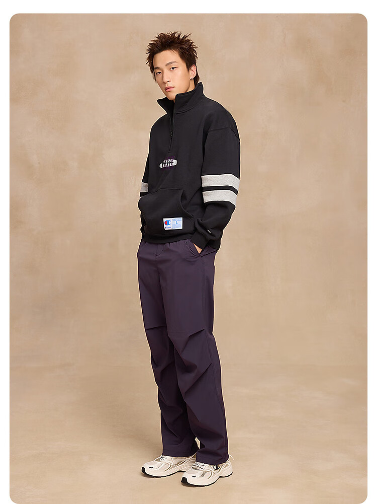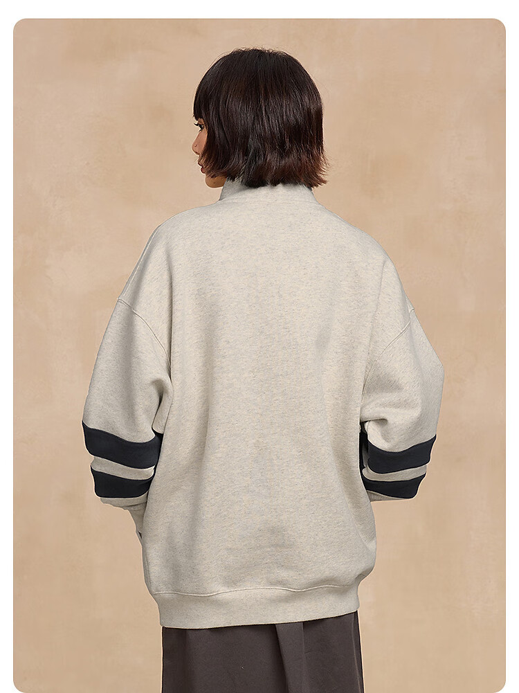 Champion brand direct sales 25 new autumn and winter sports trendy casual half-zip plus velvet men's sweatshirt star same style oatmeal color M