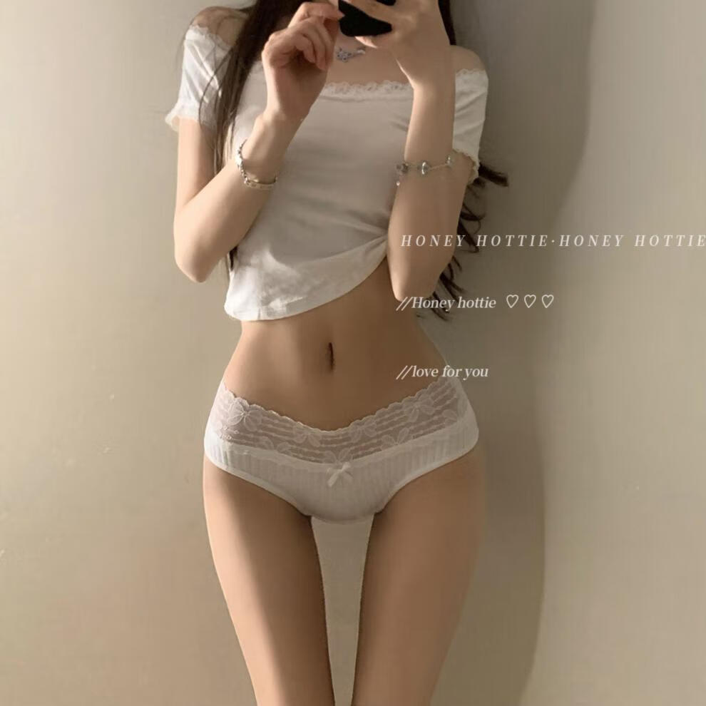 Universal Breast Desire Polka Dot French Sexy Underwear Lace Edge Bow Girl Breathable Briefs Black 12% Off on Purchase 5 Pieces L