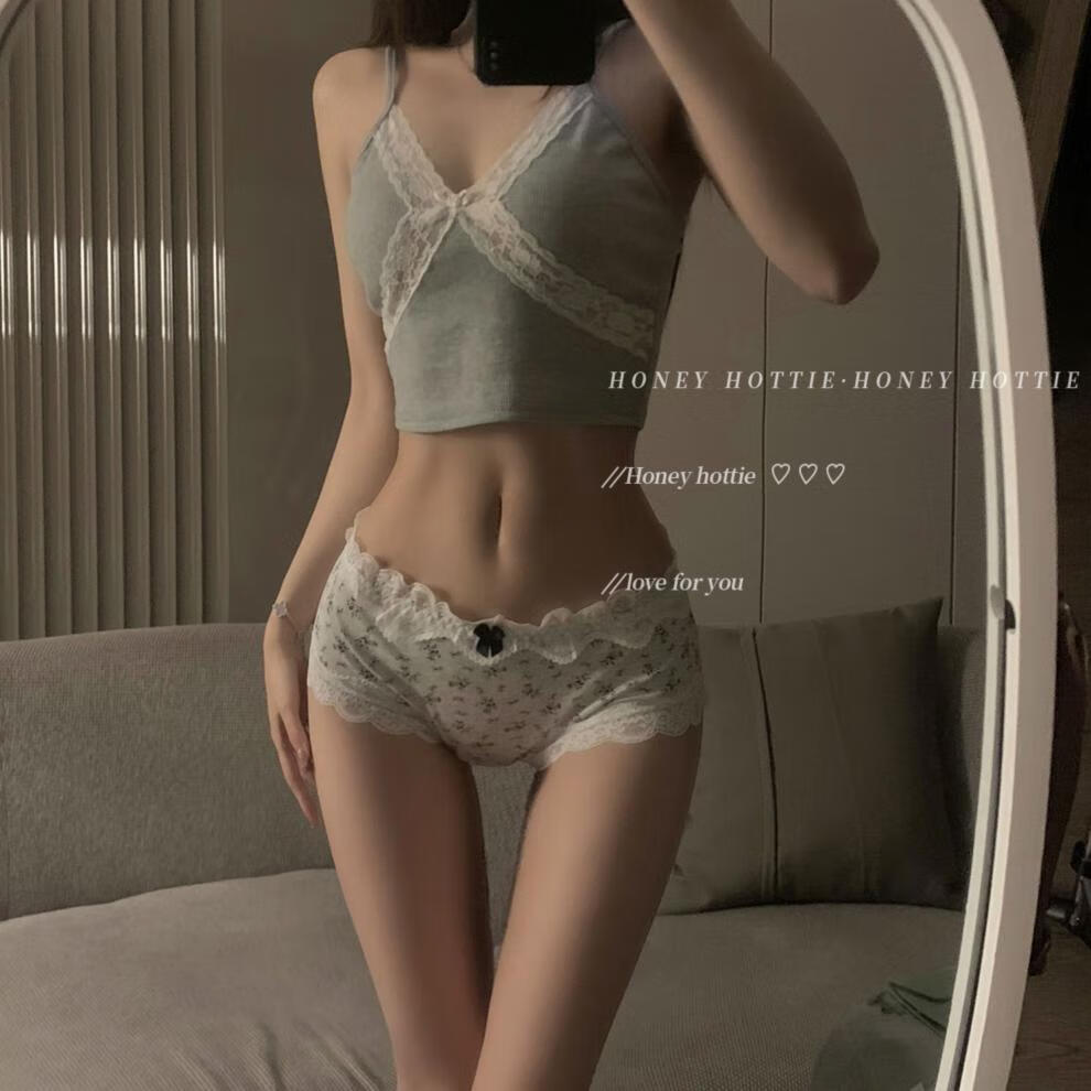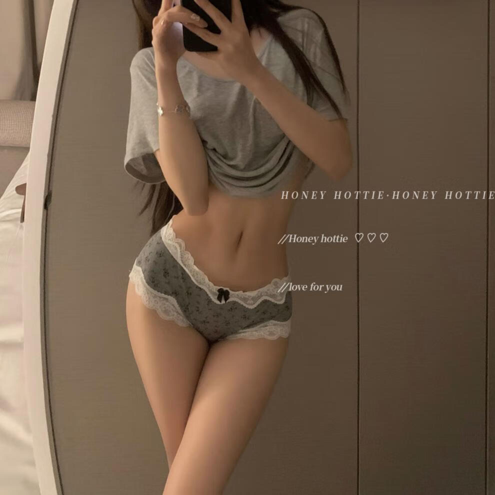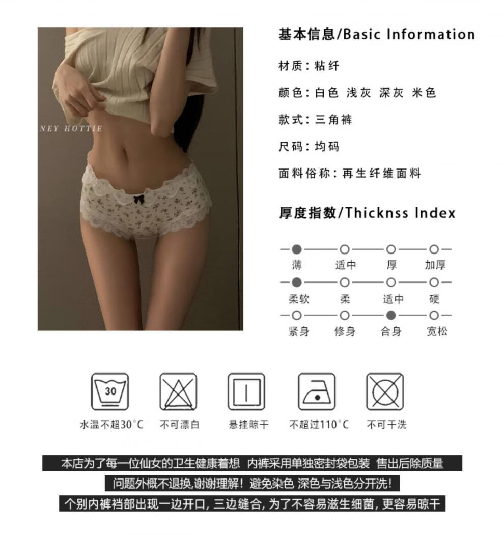 Universal Monet style flower lace panties for women, pure desire floral briefs, sexy girls low waist, white + dark gray + beige, one size fits all