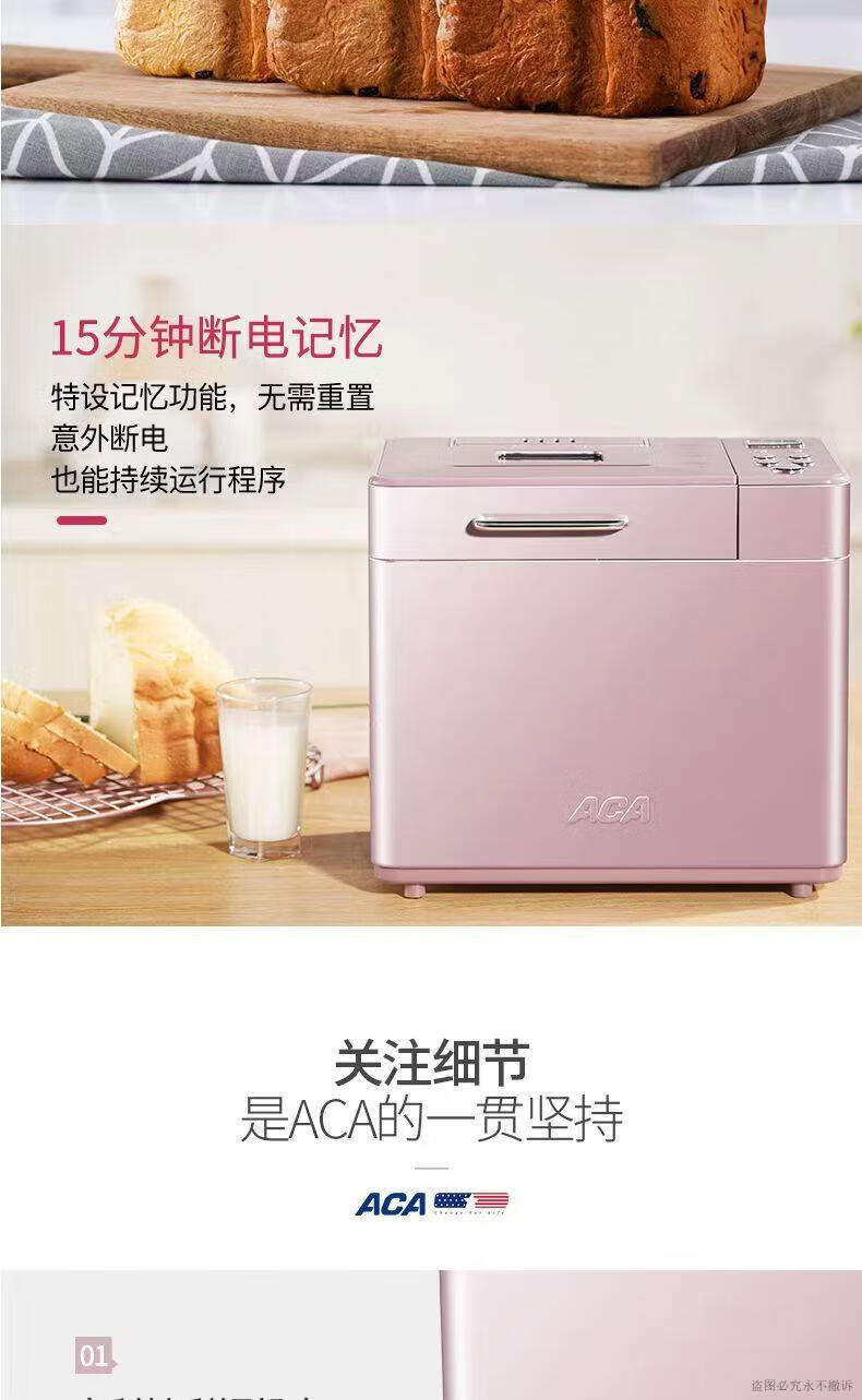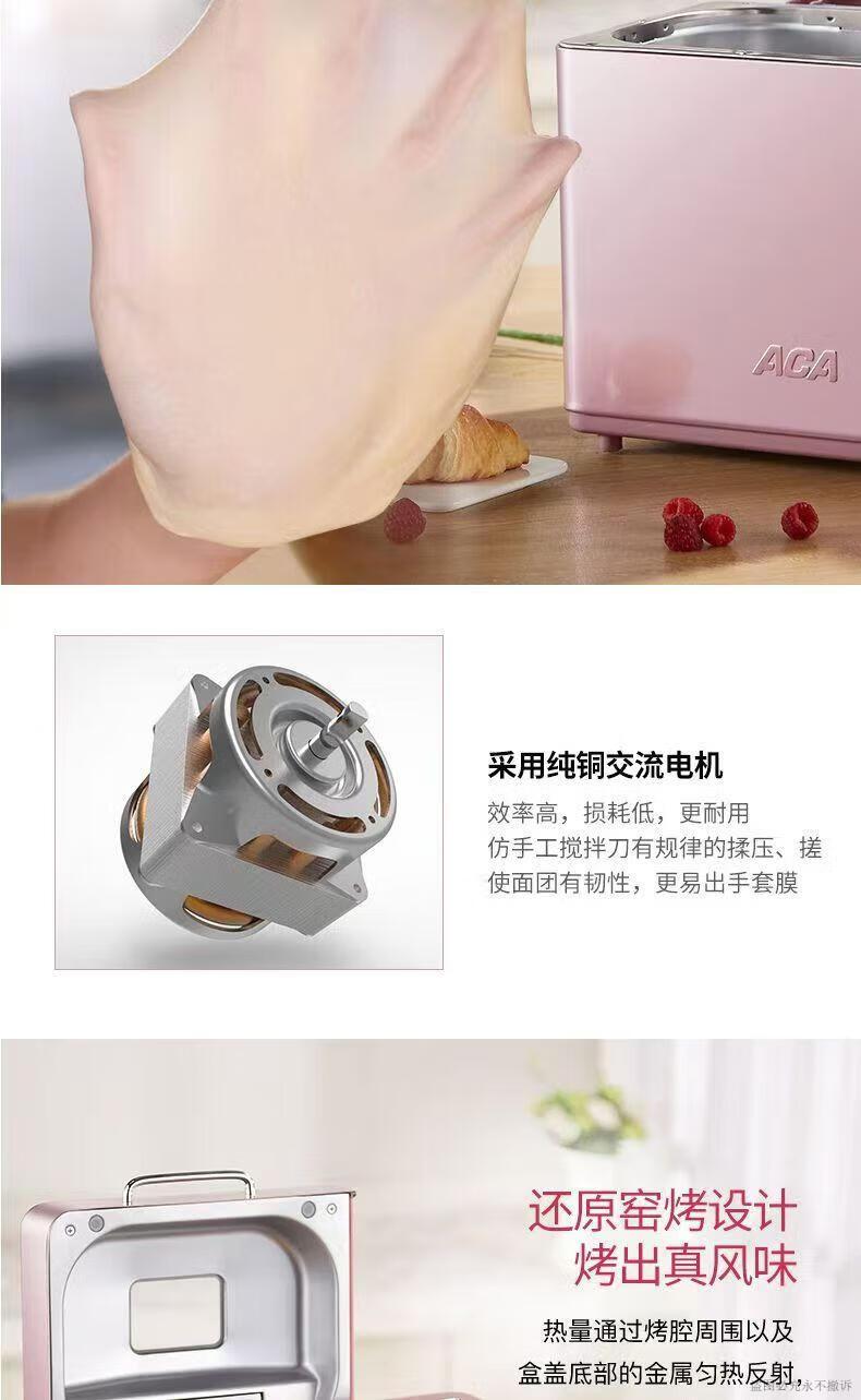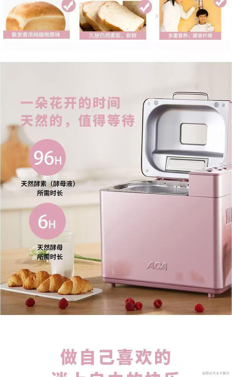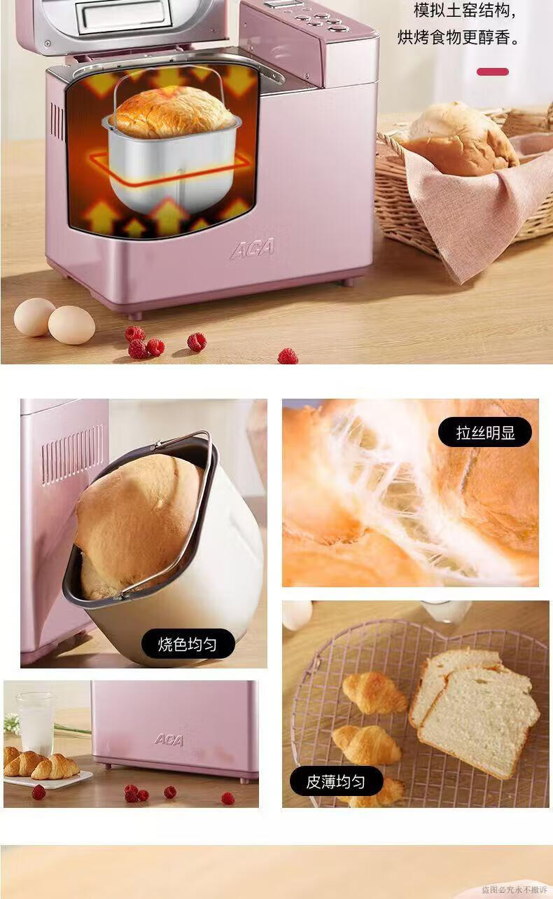 ACA North American Electric Appliances Household Kneading Dough Fermented Cake Bread Yogurt Multifunctional Fully Automatic Bread Machine Lotus Color