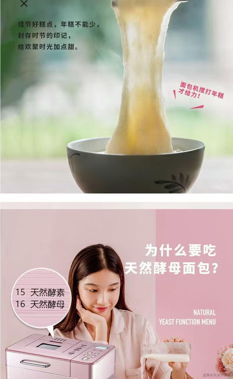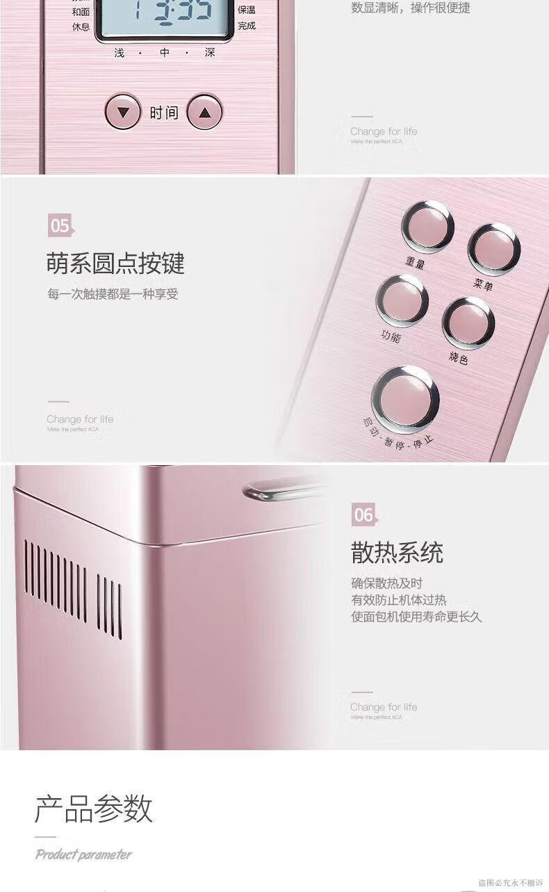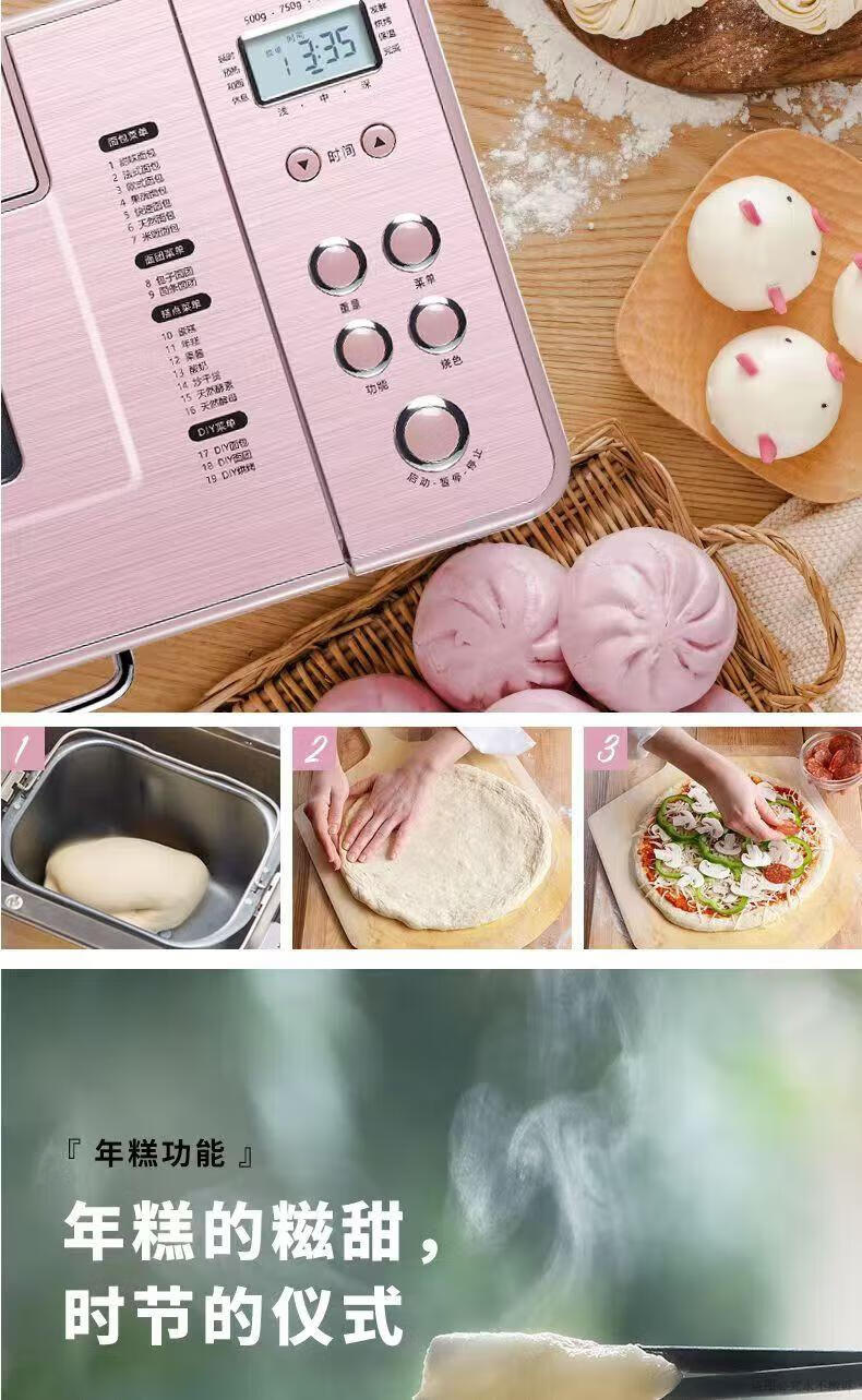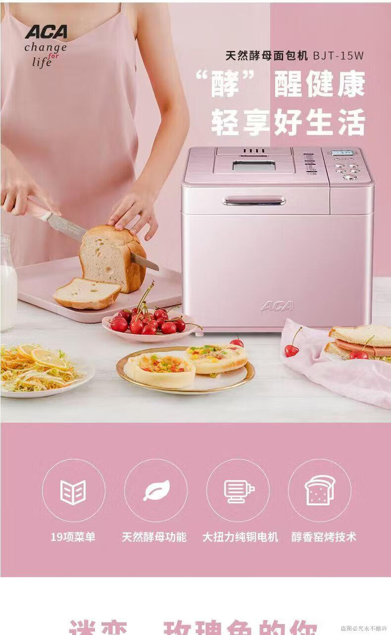 ACA North American Electric Appliances Household Kneading Dough Fermented Cake Bread Yogurt Multifunctional Fully Automatic Bread Machine Lotus Color