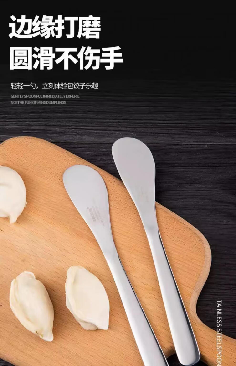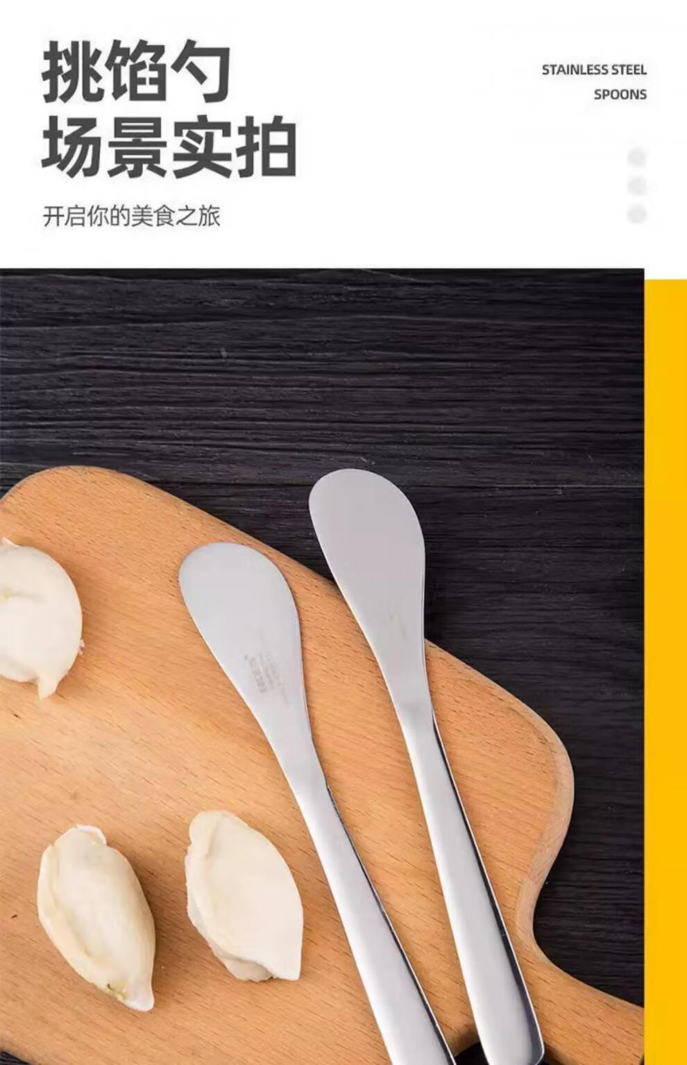 Jie Yun Cat Bun Stuffing Plate New Stainless Steel Dumpling Spoon Pick-up Plate Special Filling for Dumplings Thickened Tongue Press Stuffing Plate 430 Stainless Steel 2 Pack