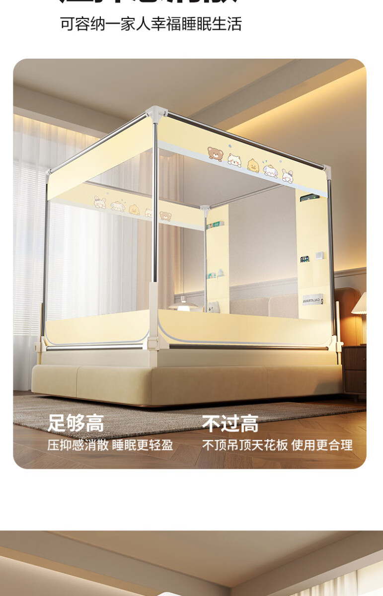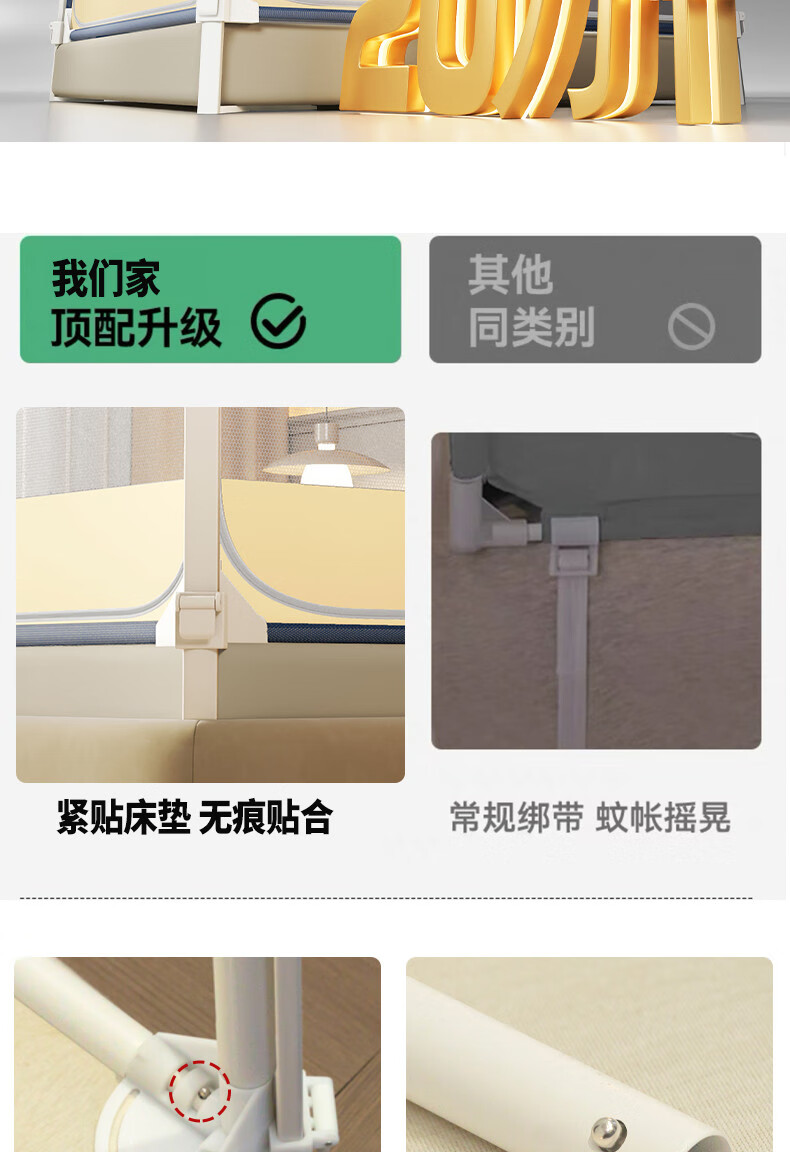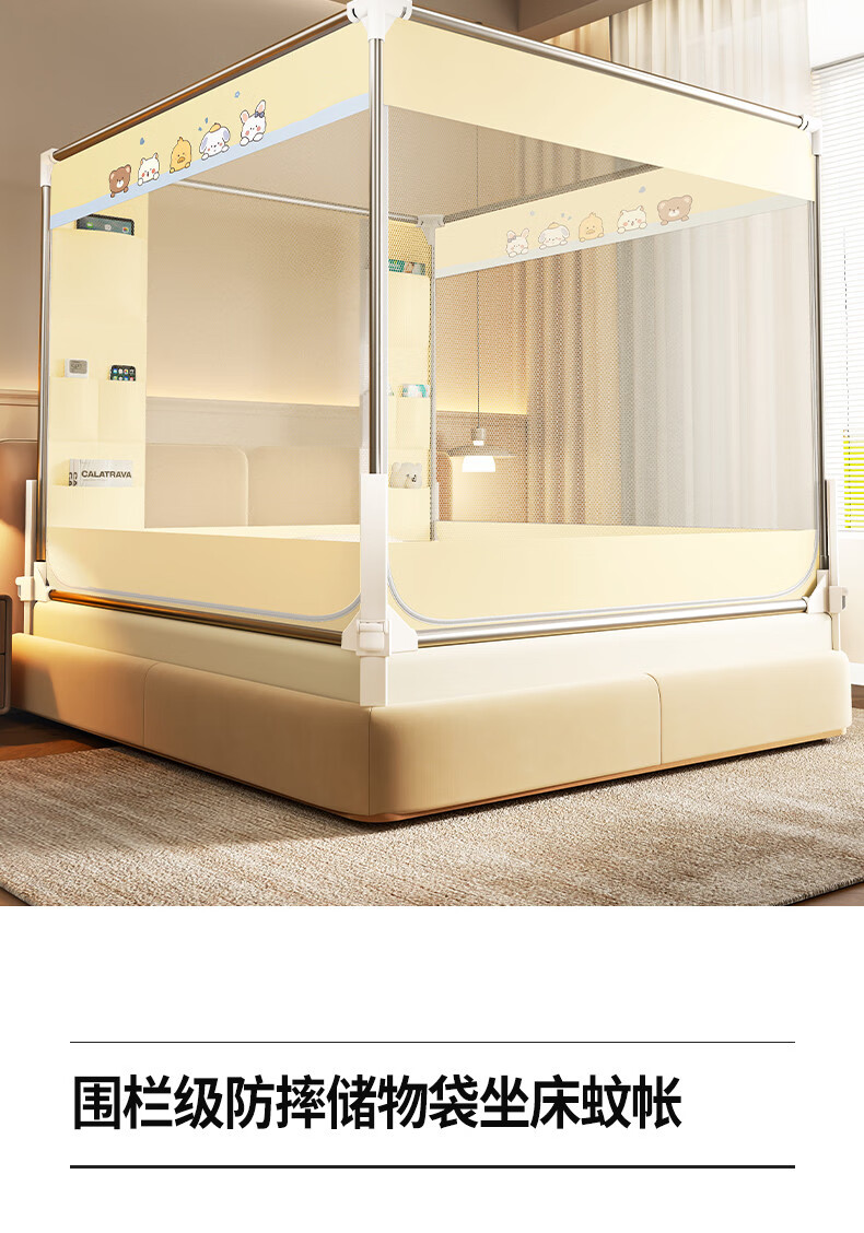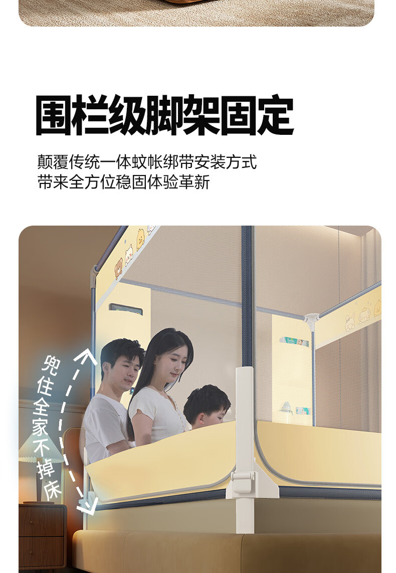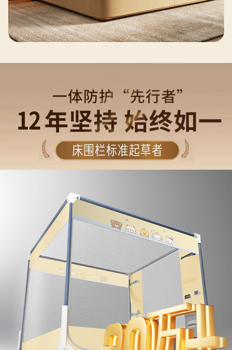 Yusenyi custom-made lifting integrated bed fence for infants and children's home bedroom anti-fall prevention mosquito net 2025 top anti-fall-Hamburger Bara lifting and lowering speed sheet changing-adjustable thick buckle three Upgraded 1.8mx2m bed Upgraded big footrest is the real anti-falling