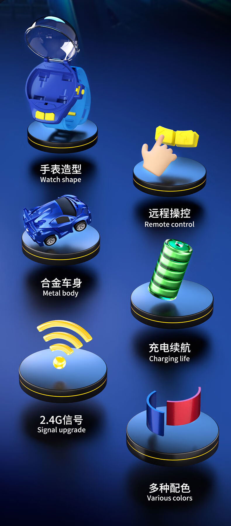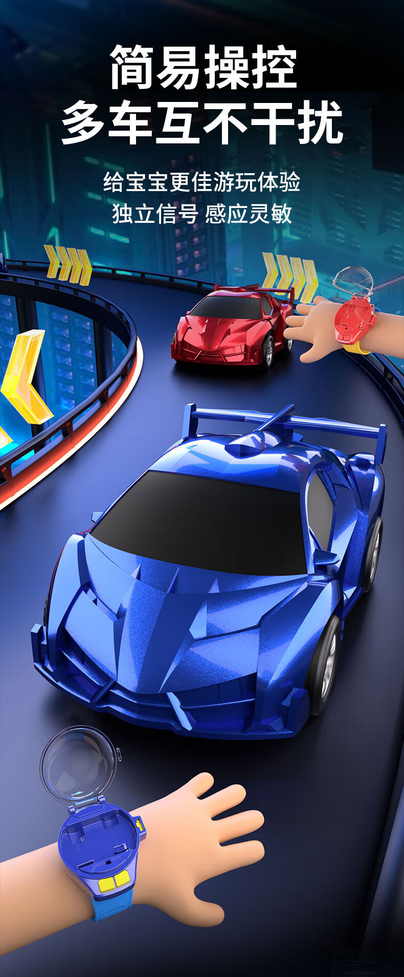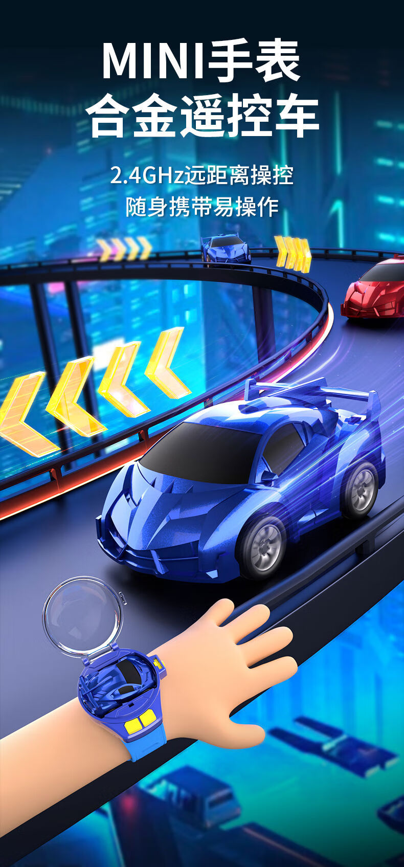 Jule baby children's watch remote control car toy boy boy's birthday car race ABS2 point 4G frequency car tail light USB charging blue