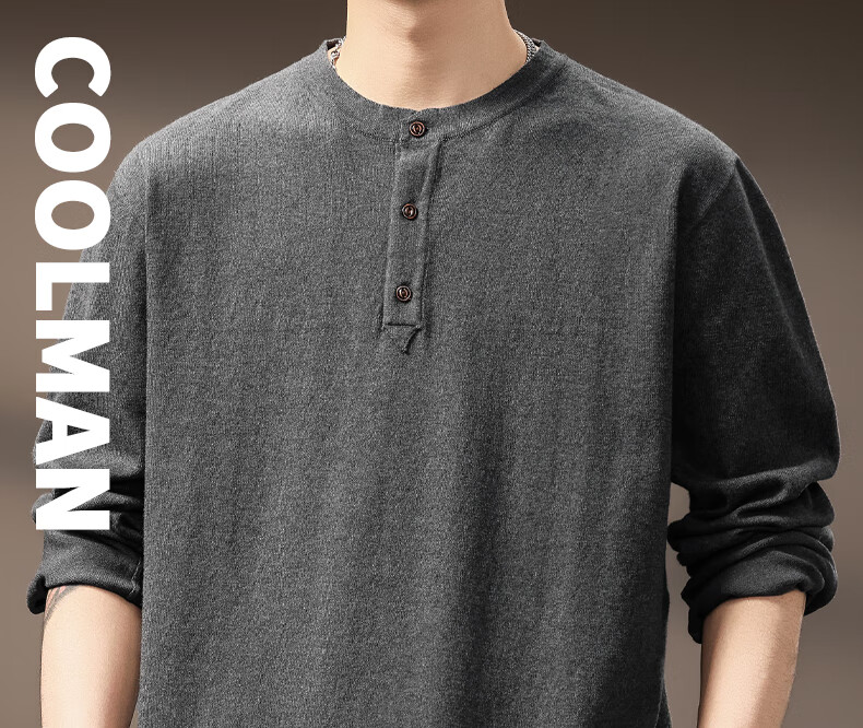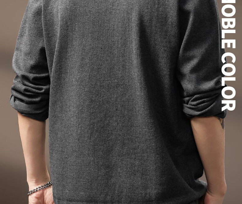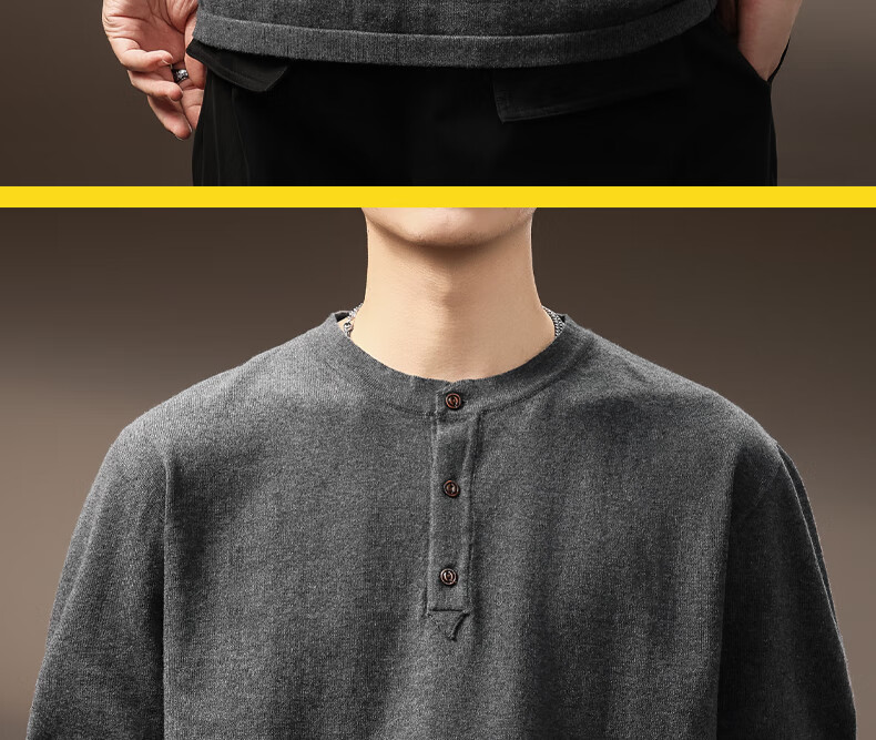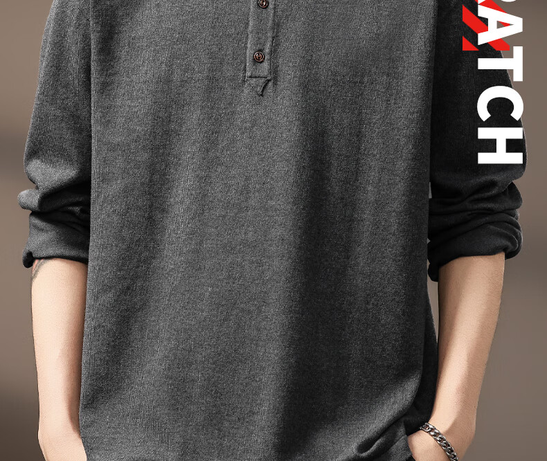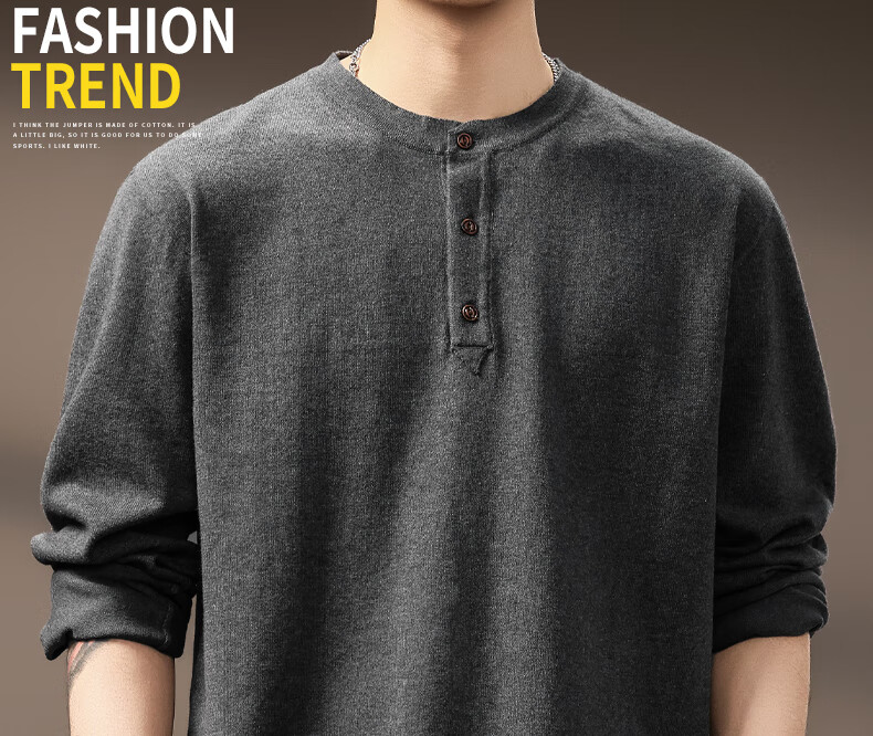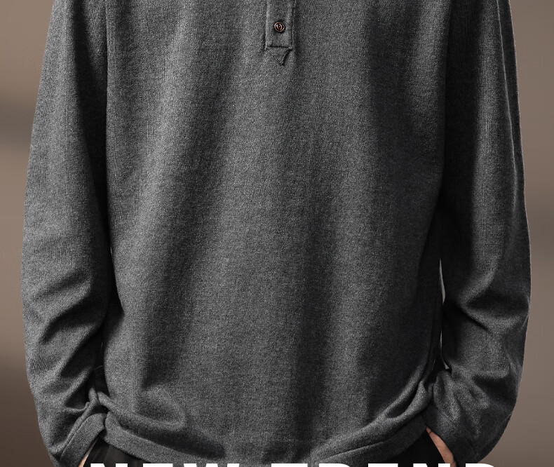 ElegantMan high-end American retro Henry long-sleeved sweater men's autumn new loose casual retro bottoming shirt dark gray S