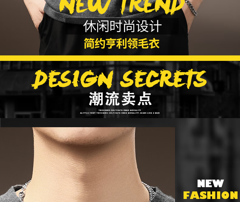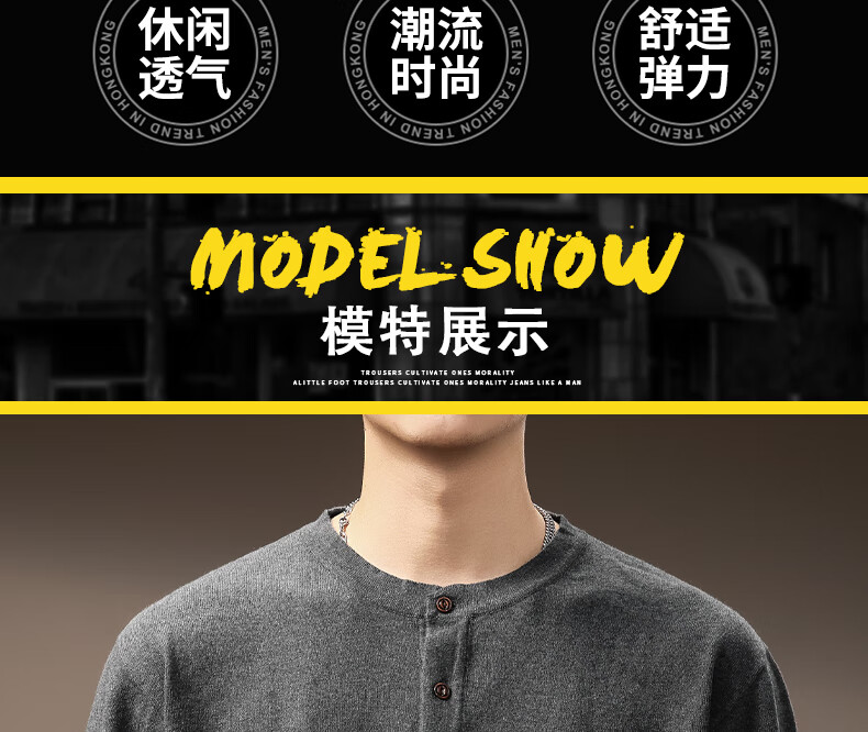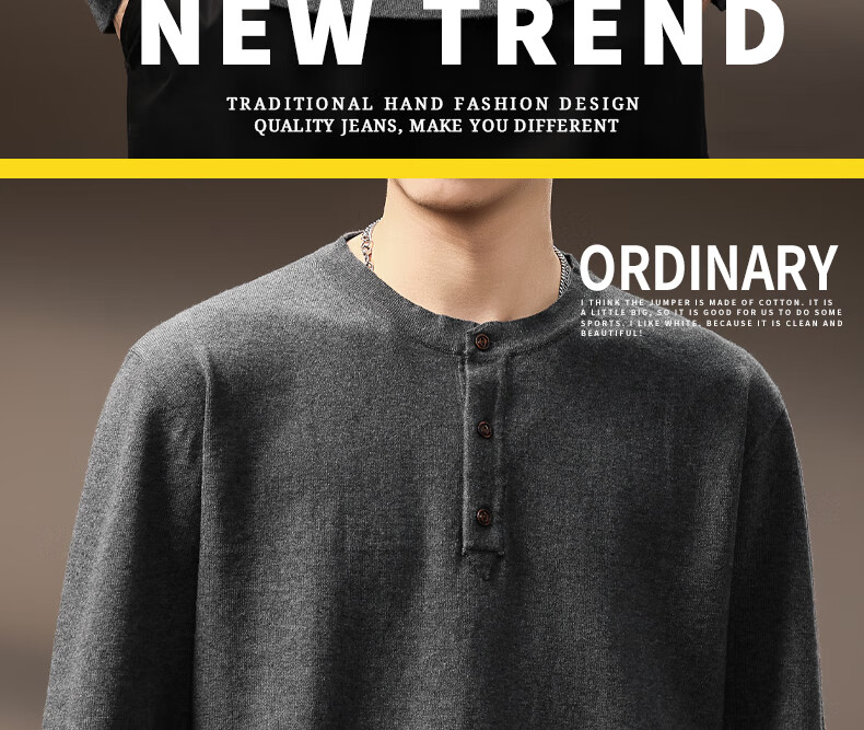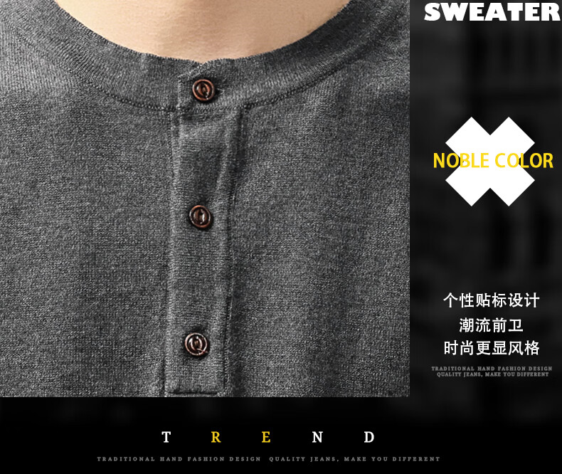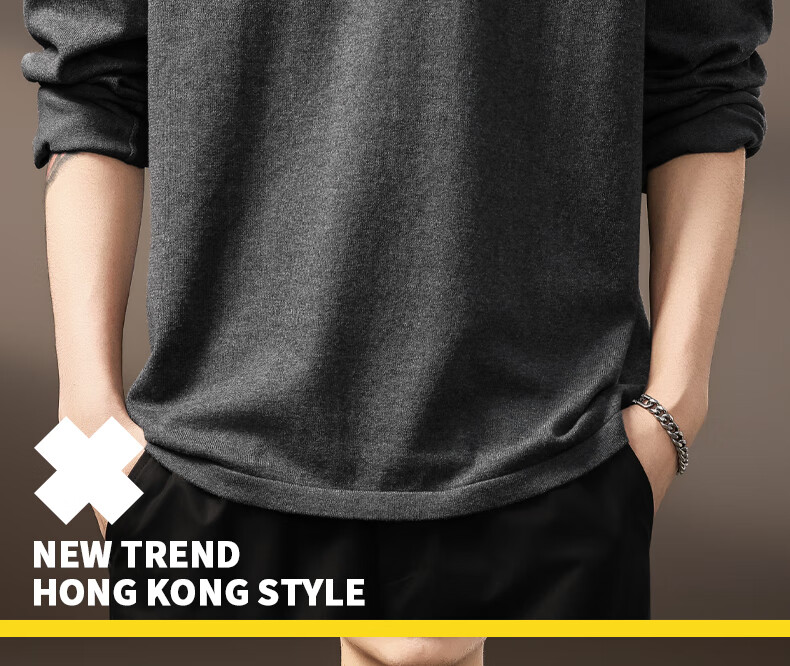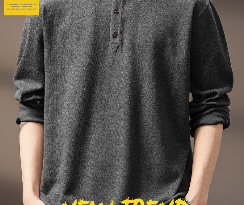 ElegantMan high-end American retro Henry long-sleeved sweater men's autumn new loose casual retro bottoming shirt dark gray S