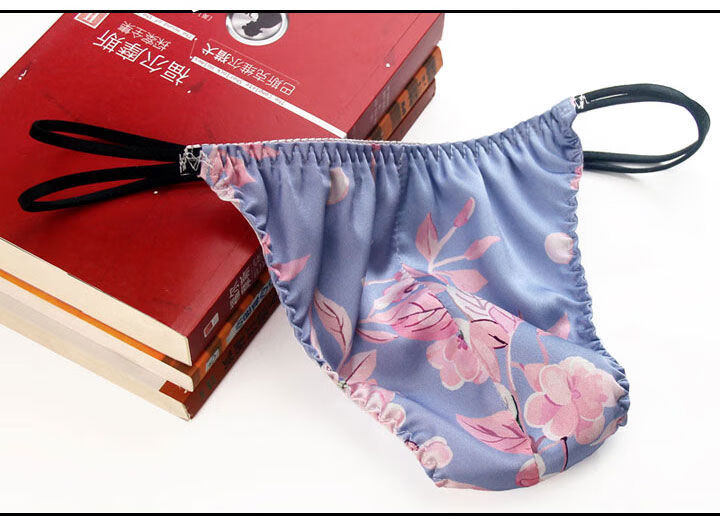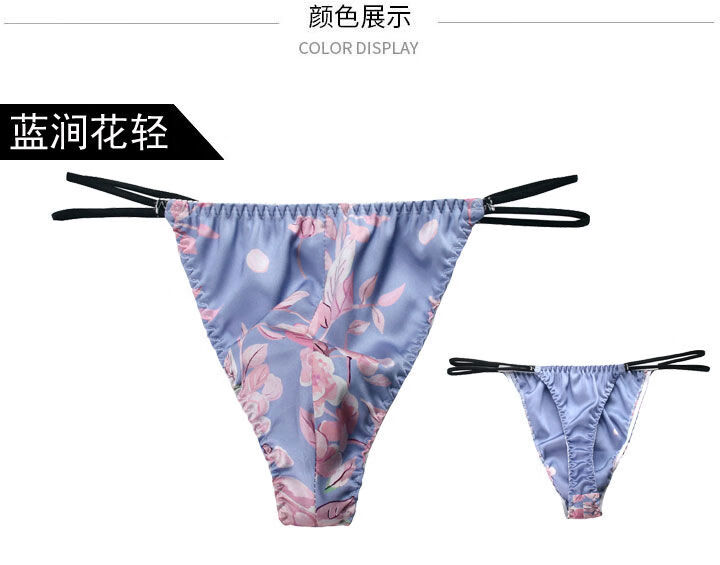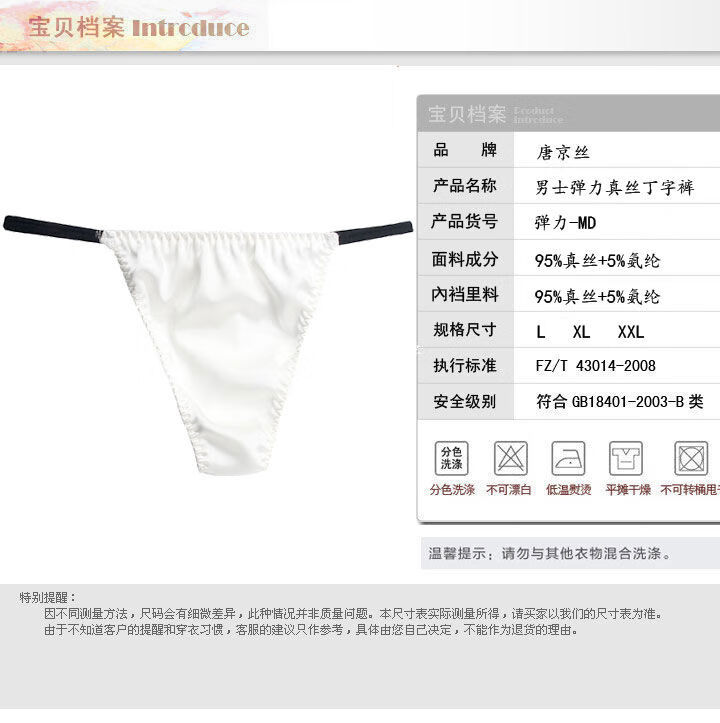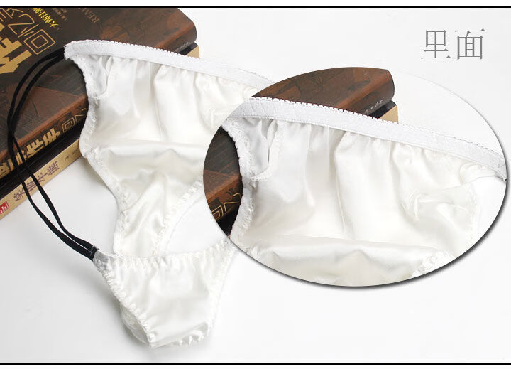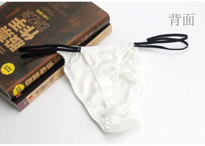 Silk low-waist men's underwear, personalized and trendy thong, mulberry silk stretch sexy double T-pants with U convex bag, white L
