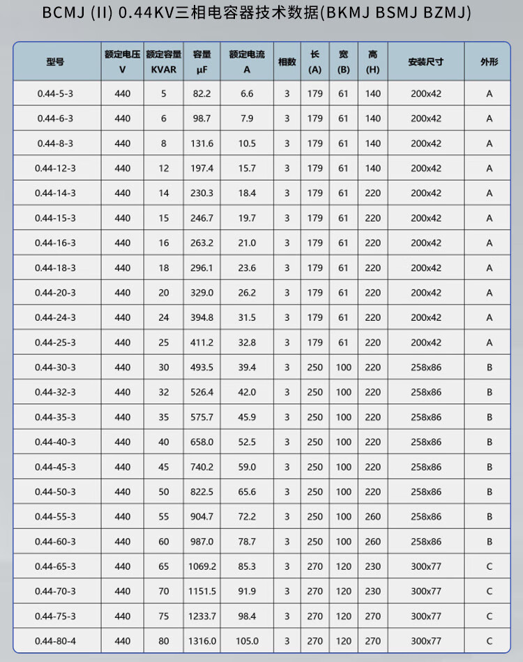 Shanghai Eaton Capacitor Shanghai Eaton Low Voltage Self-healing Capacitor 0.4-0.48Kvar Dry Capacitor BCMJ0.44-50-3 II