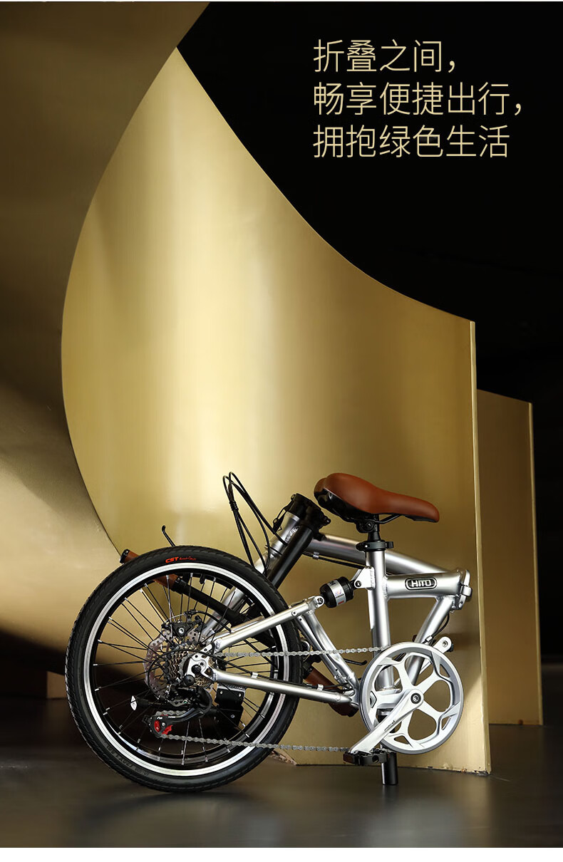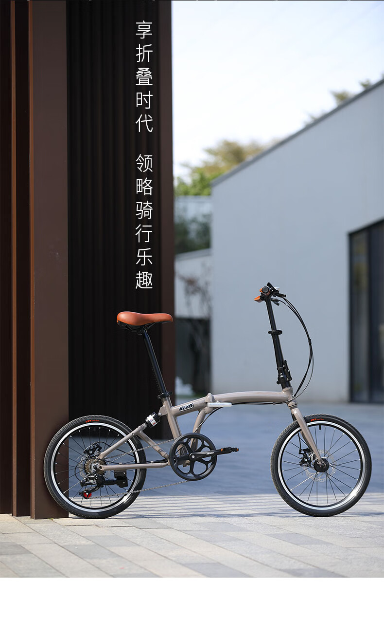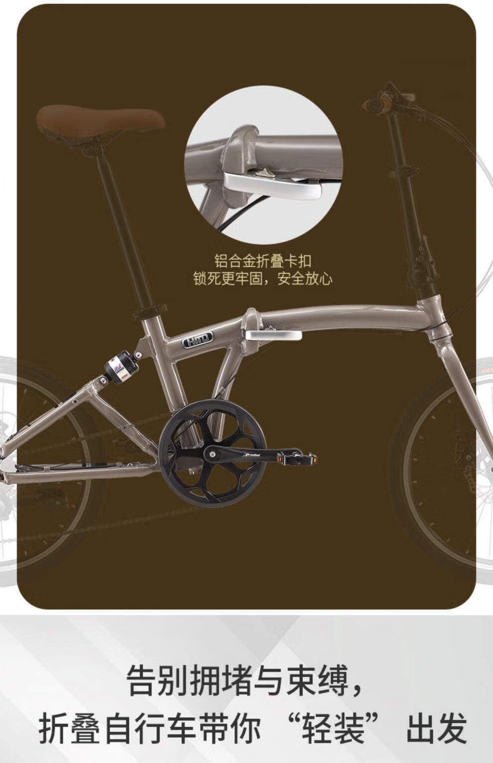 HITO 20-inch folding bicycle Xiaobu aluminum alloy variable speed double disc brake with shock absorber men and women retro single, Mocha gray (shock absorber + aluminum alloy) variable speed + double disc