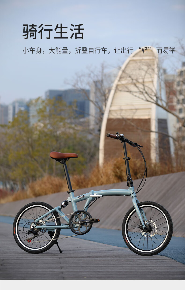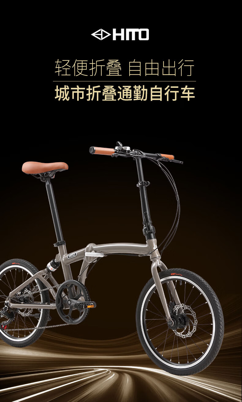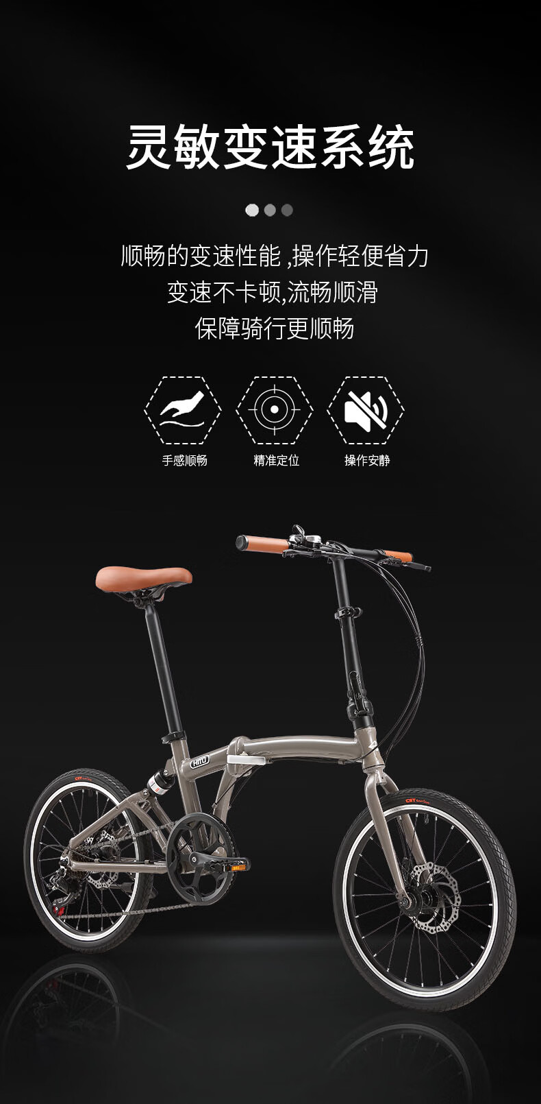 HITO 20-inch folding bicycle Xiaobu aluminum alloy variable speed double disc brake with shock absorber men and women retro single, Mocha gray (shock absorber + aluminum alloy) variable speed + double disc