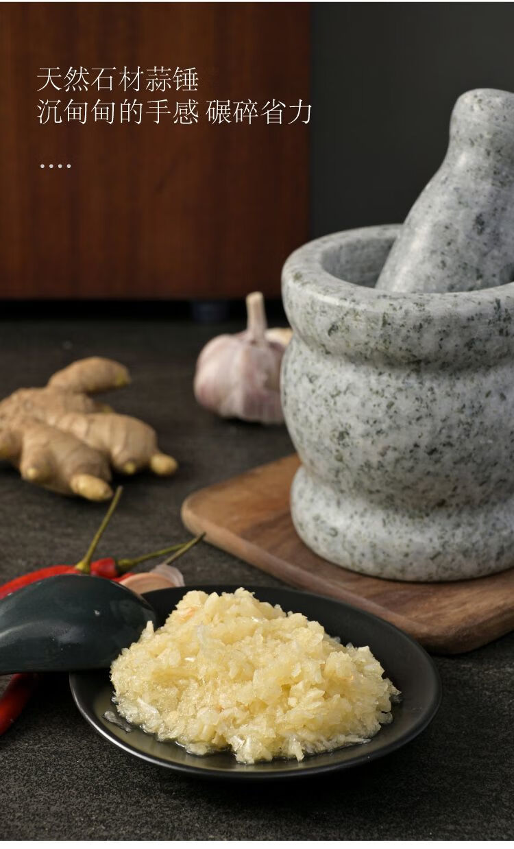 Qinkai natural raw stone stone mortar rural old-fashioned household garlic mortar stone garlic pounder large small smashing single hammer raw stone large stone mortar + hammer two-piece set 11X10.5 natural raw stone polishing