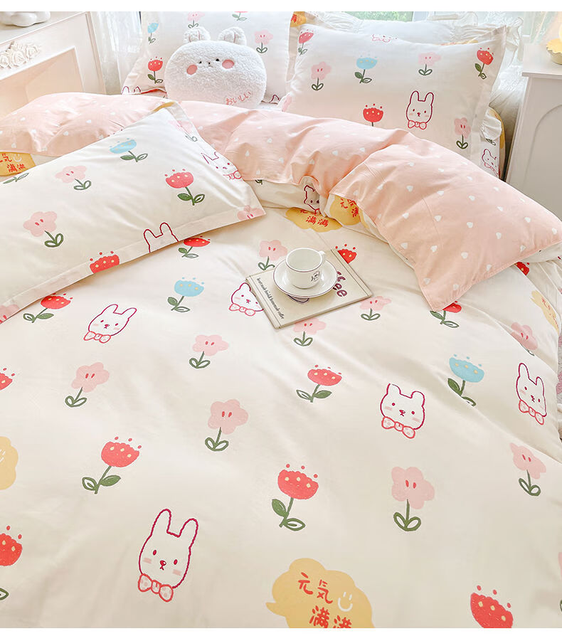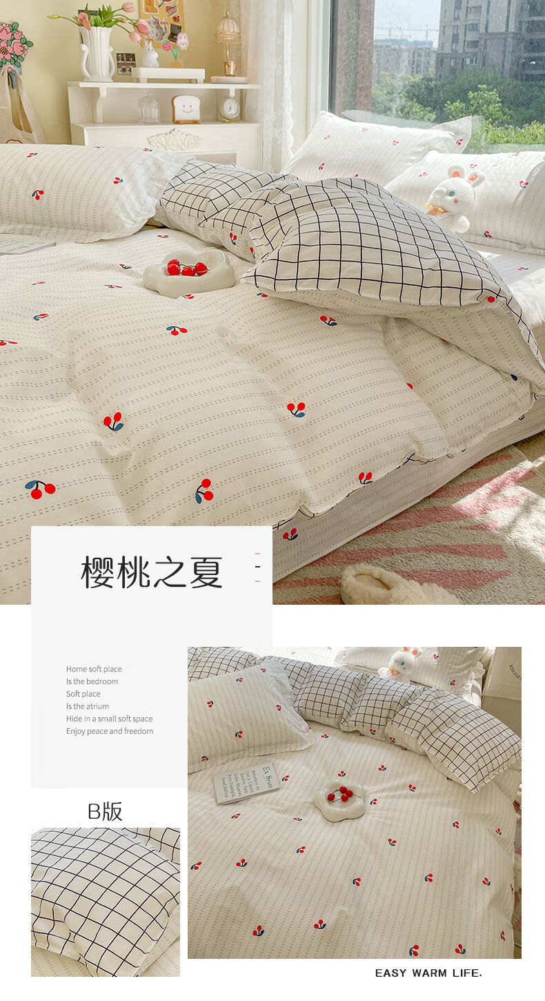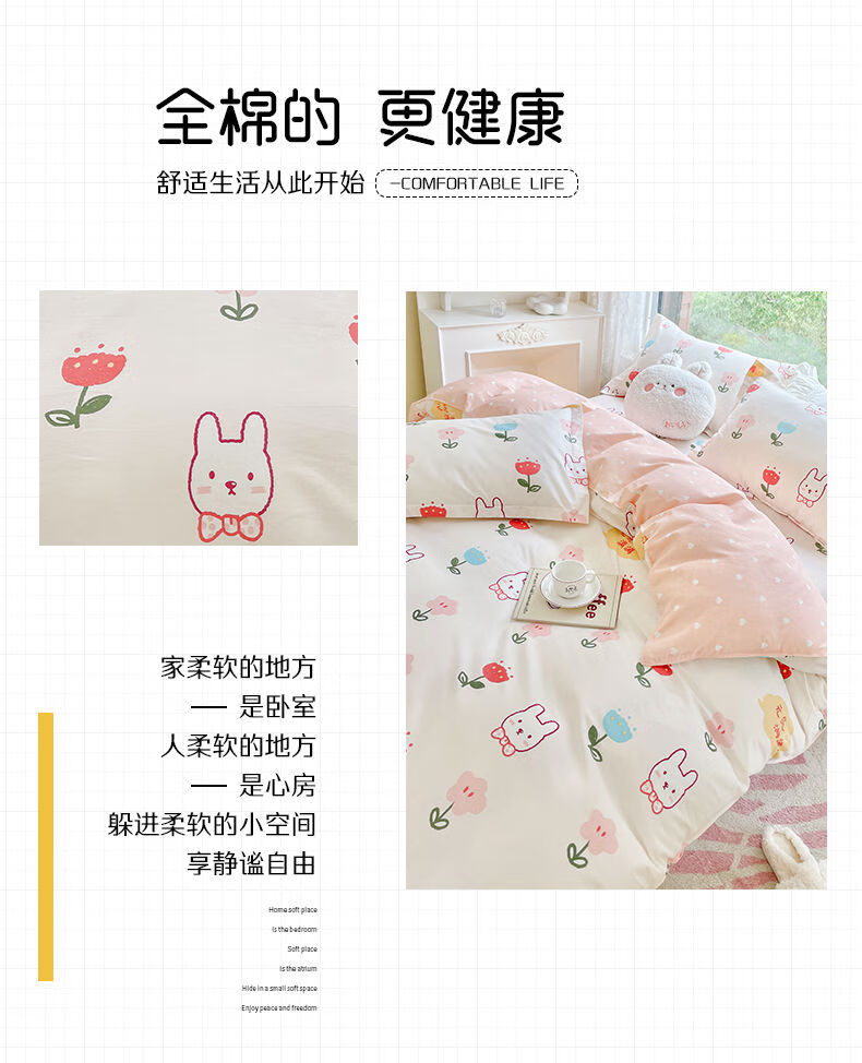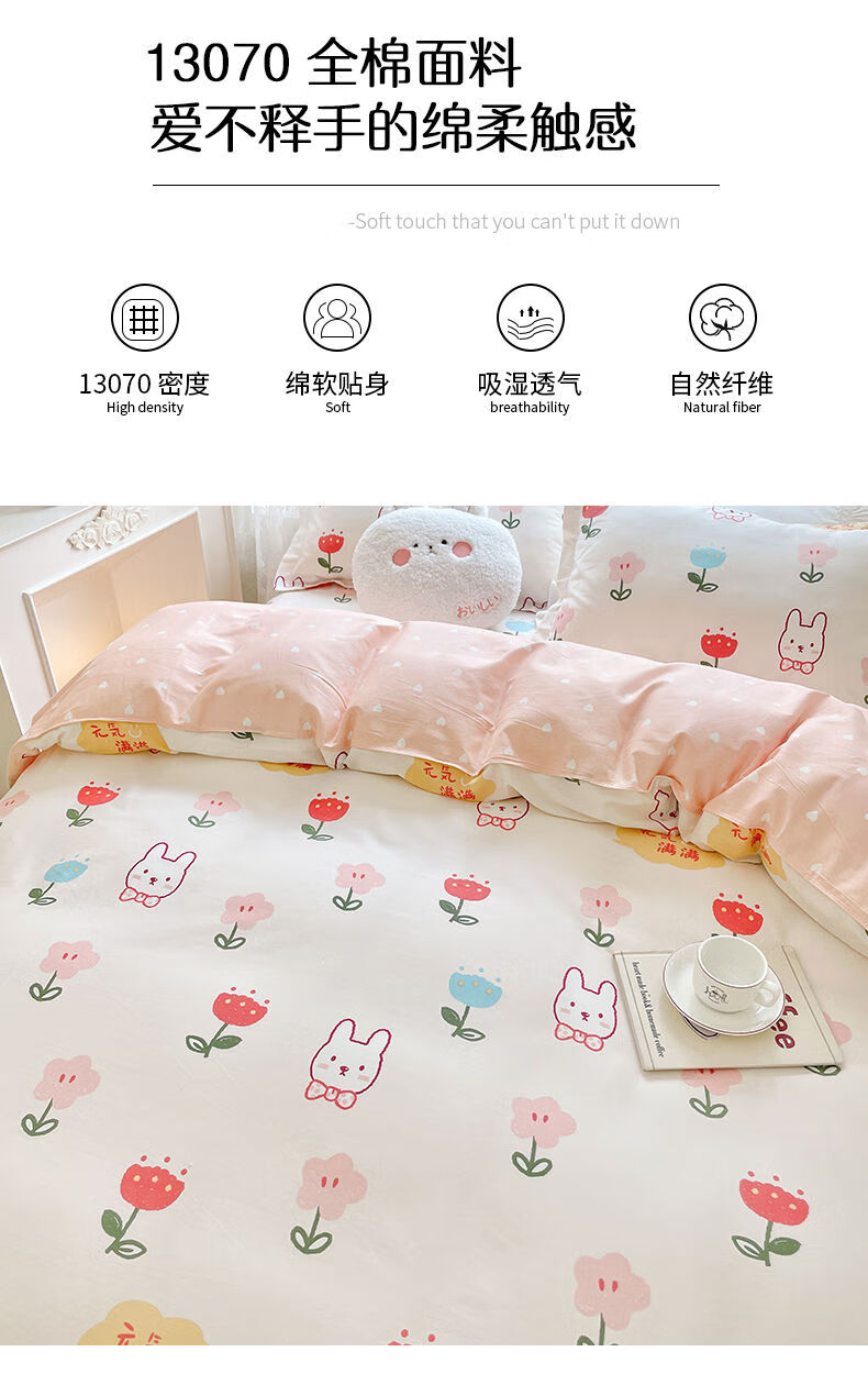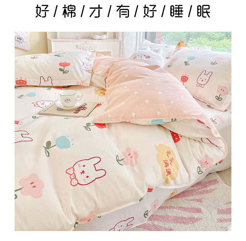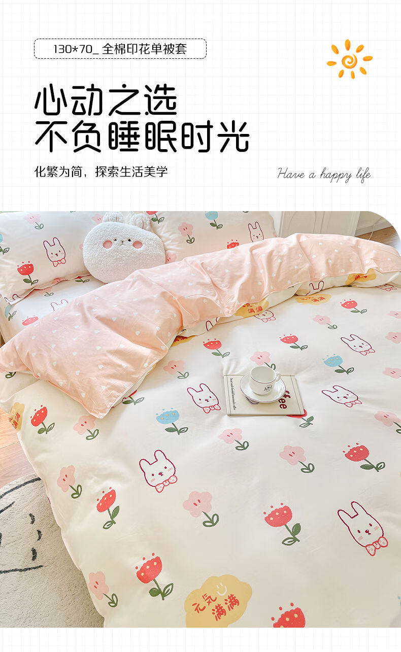 Vinoa cute cotton quilt cover single piece 100 cotton spring and summer children's dormitory single quilt cover 200x230 quilt three-piece set donut-red single quilt cover 110x150cm double needle craft kindergarten special