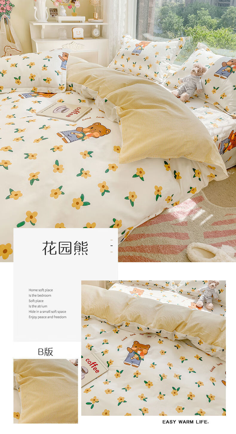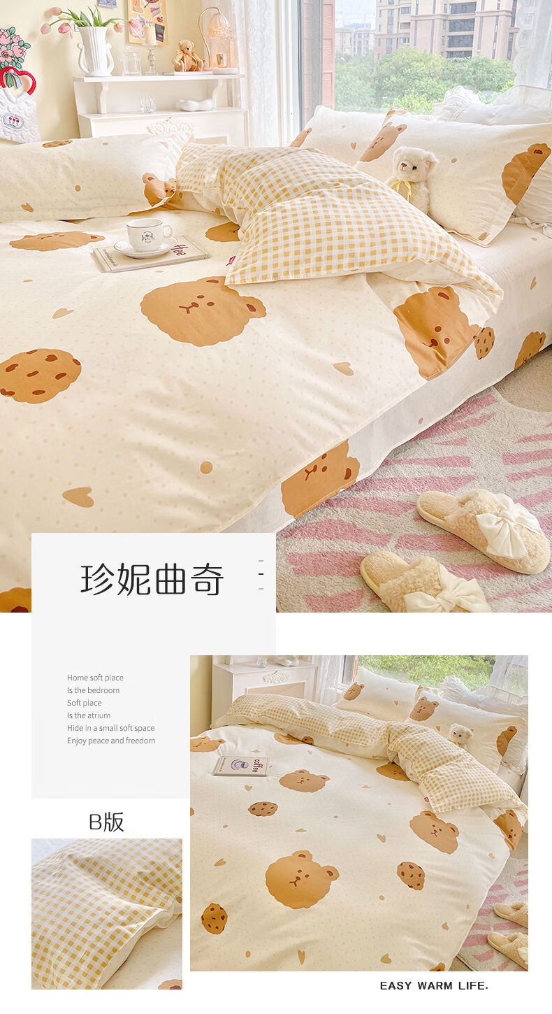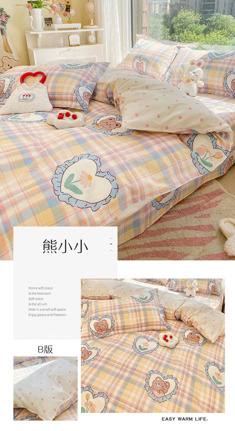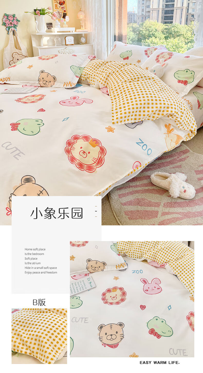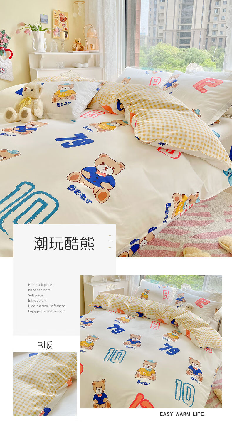Vinoa cute cotton quilt cover single piece 100 cotton spring and summer children's dormitory single quilt cover 200x230 quilt three-piece set donut-red single quilt cover 110x150cm double needle craft kindergarten special