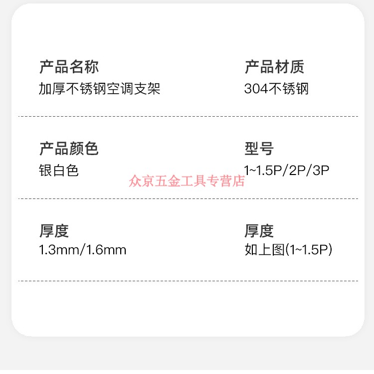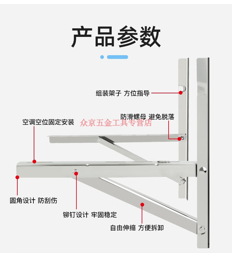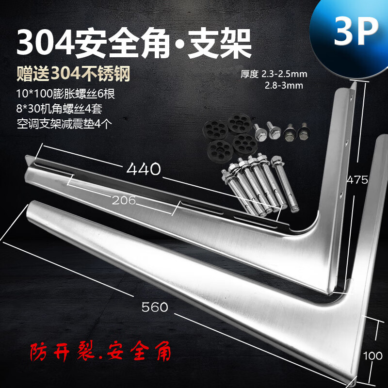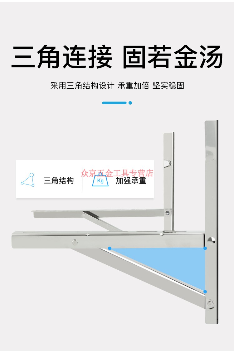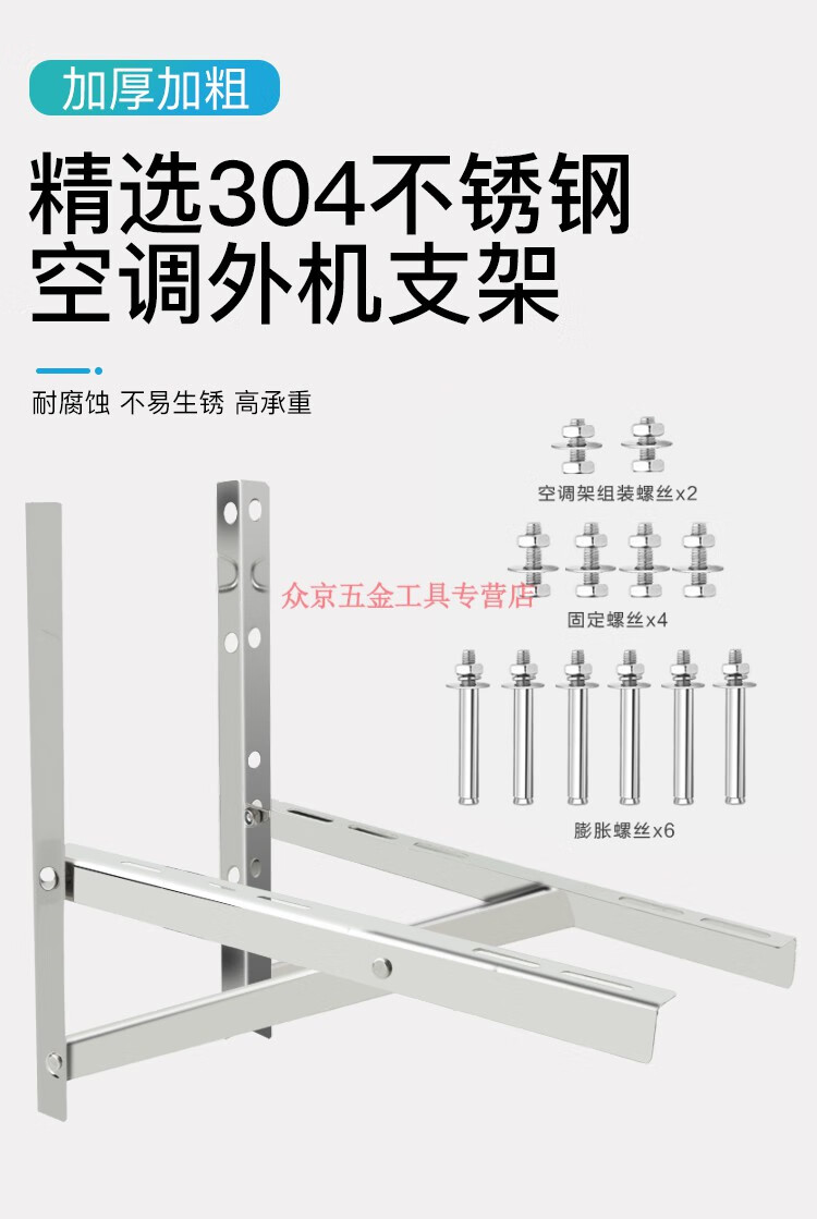 Jingwei 304 stainless steel air conditioner bracket triangle bracket stainless steel air conditioner outdoor machine bracket external bracket large 15 hp 2P3 304 one-piece frame 2 hp thick 3 points 0mm load-bearing 750G