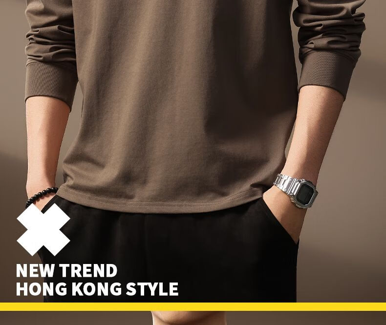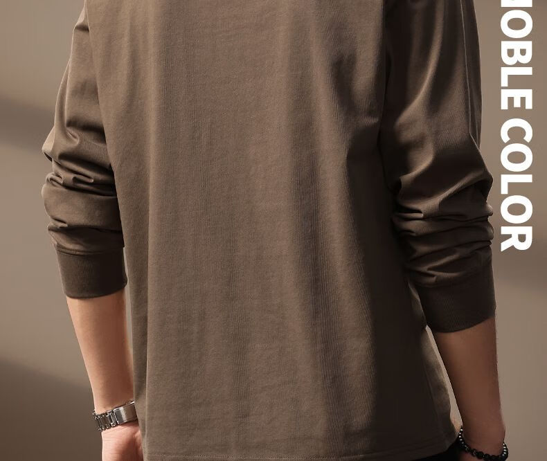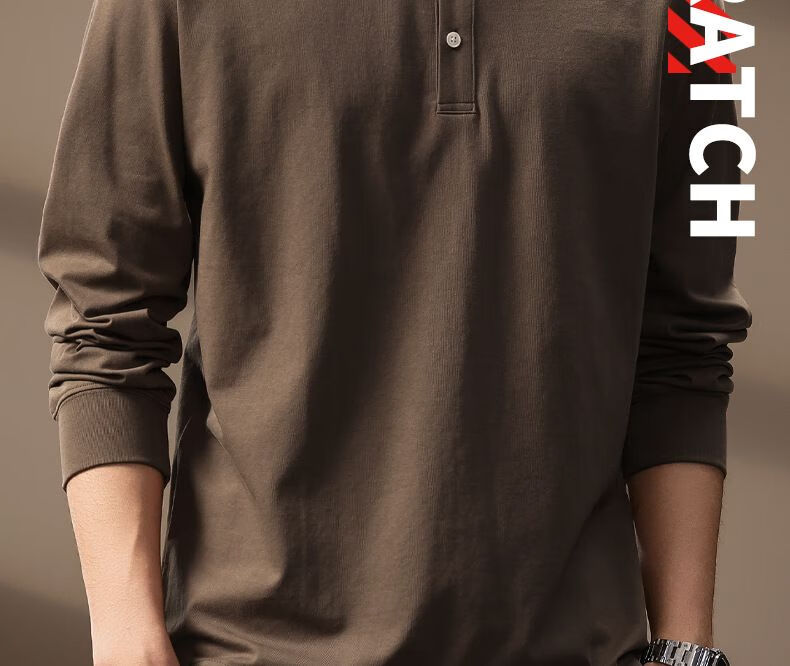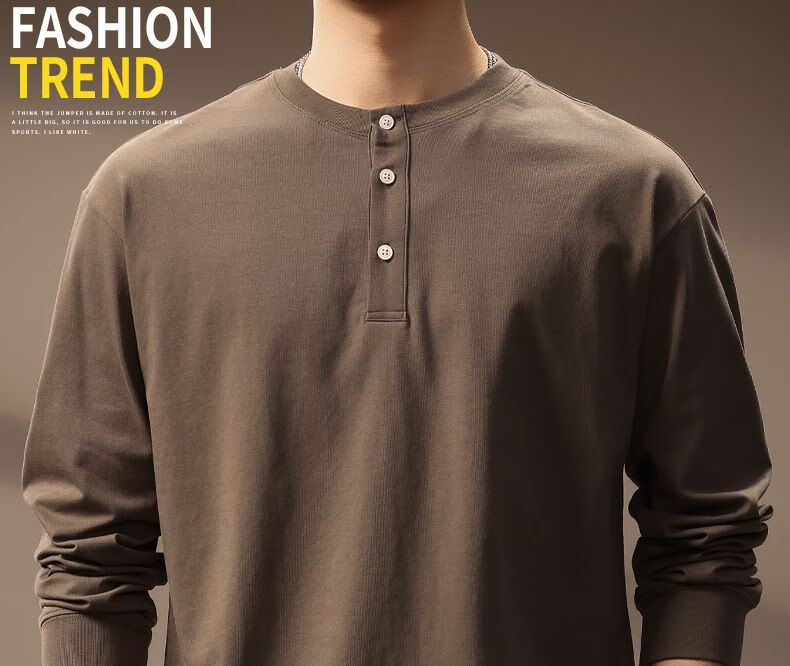 AX Armani broken code 2026 high-end simple solid color Henry collar long-sleeved shirt for men autumn loose heavyweight retro hit brown M suitable for 110-130Jin Jin is equal to 0.5 kg