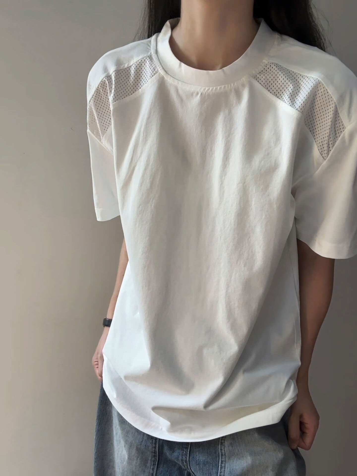White mesh splicing breathable quick-drying clothing men's summer ice silk cool short-sleeved T-shirt outdoor sports cycling clothing white upgraded version M M
