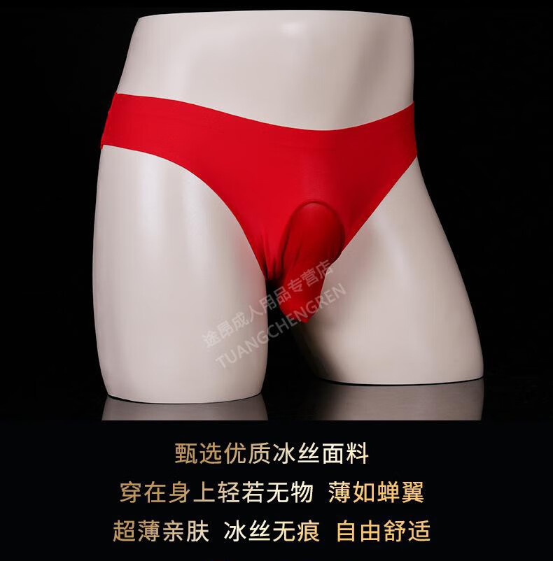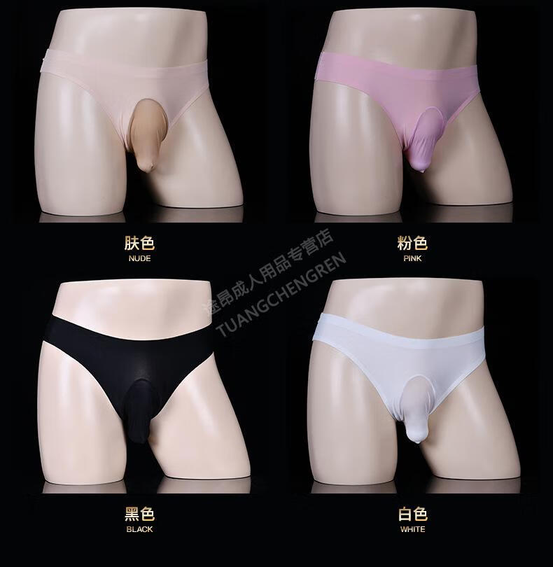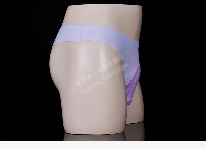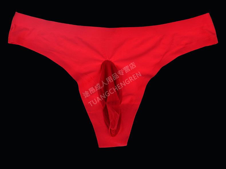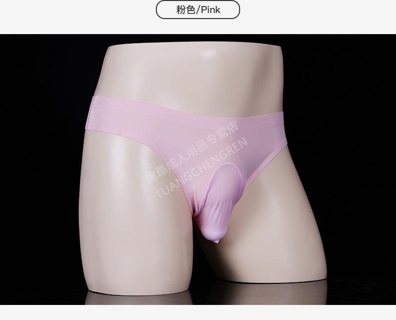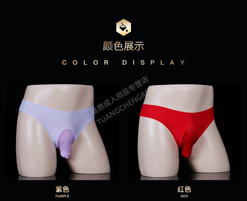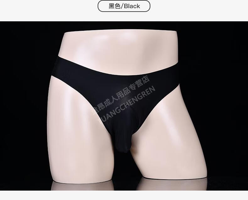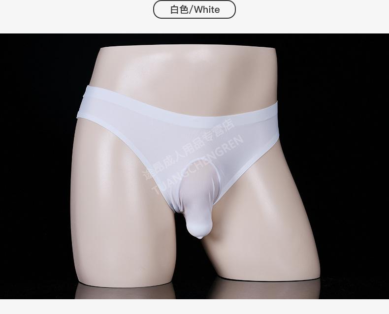 Men's Ice Silk Underwear Men's Sexy Briefs Breathable Belt Cover Open Gun Egg Separation Silky Sexy Ice Silk Traceless Black Ice Silk Thong Cover - Open L Size