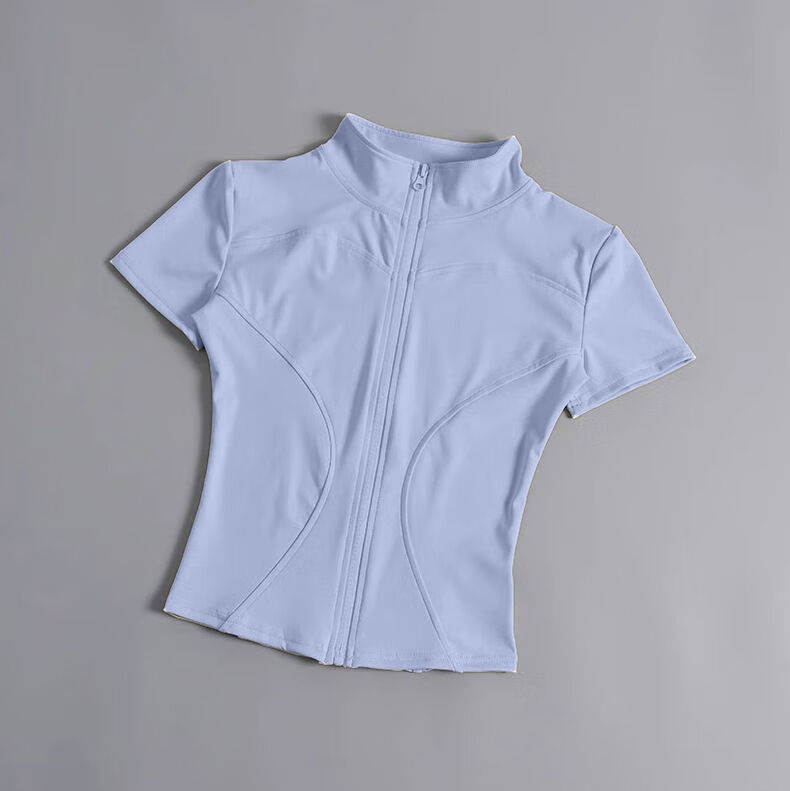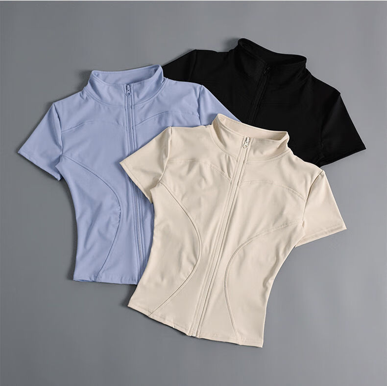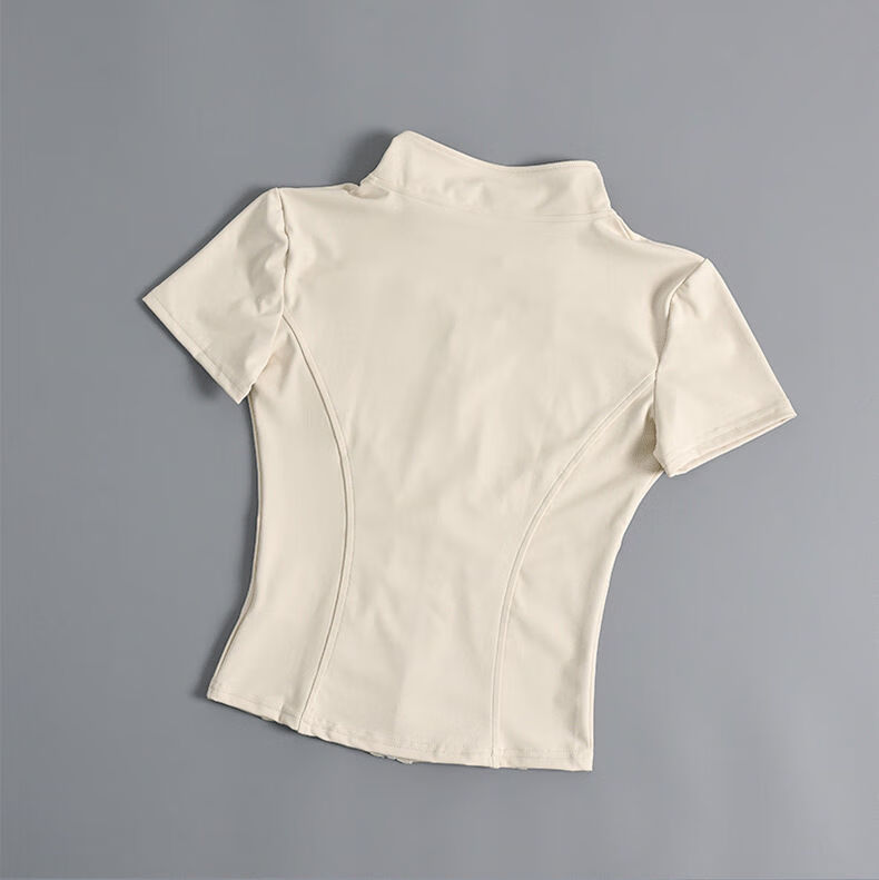2025 training new style naked short-sleeved T-zip fitness clothes women's cycling clothes outdoor sports yoga summer tops Star Black S S