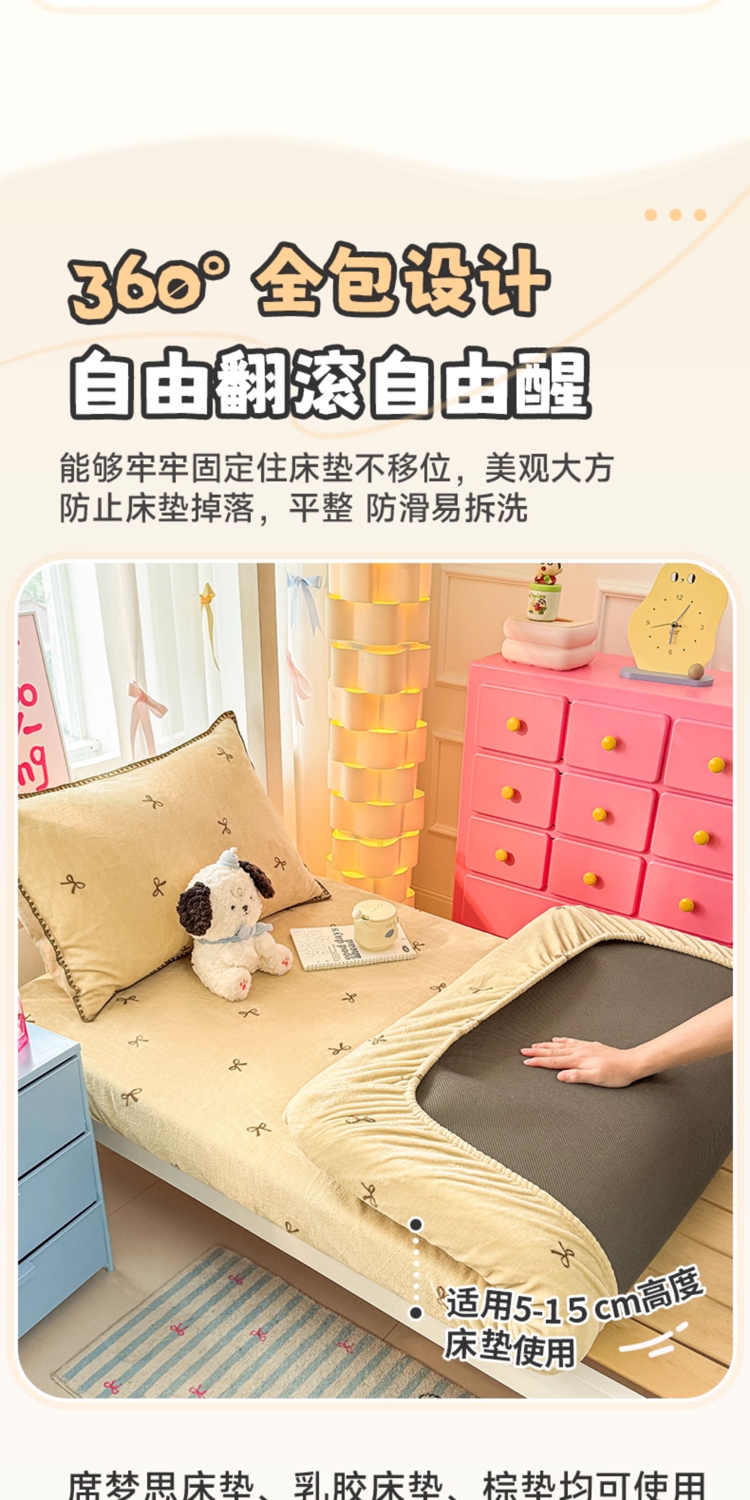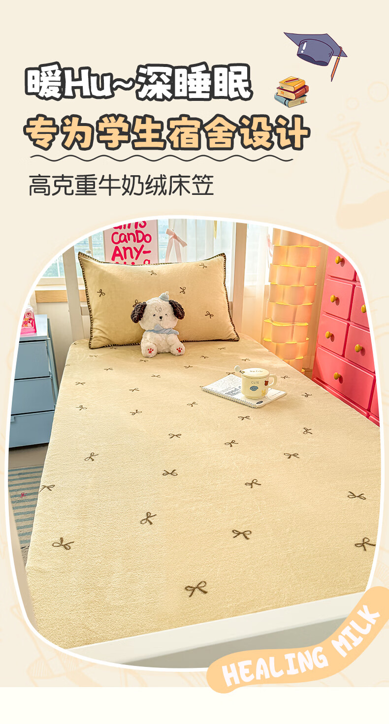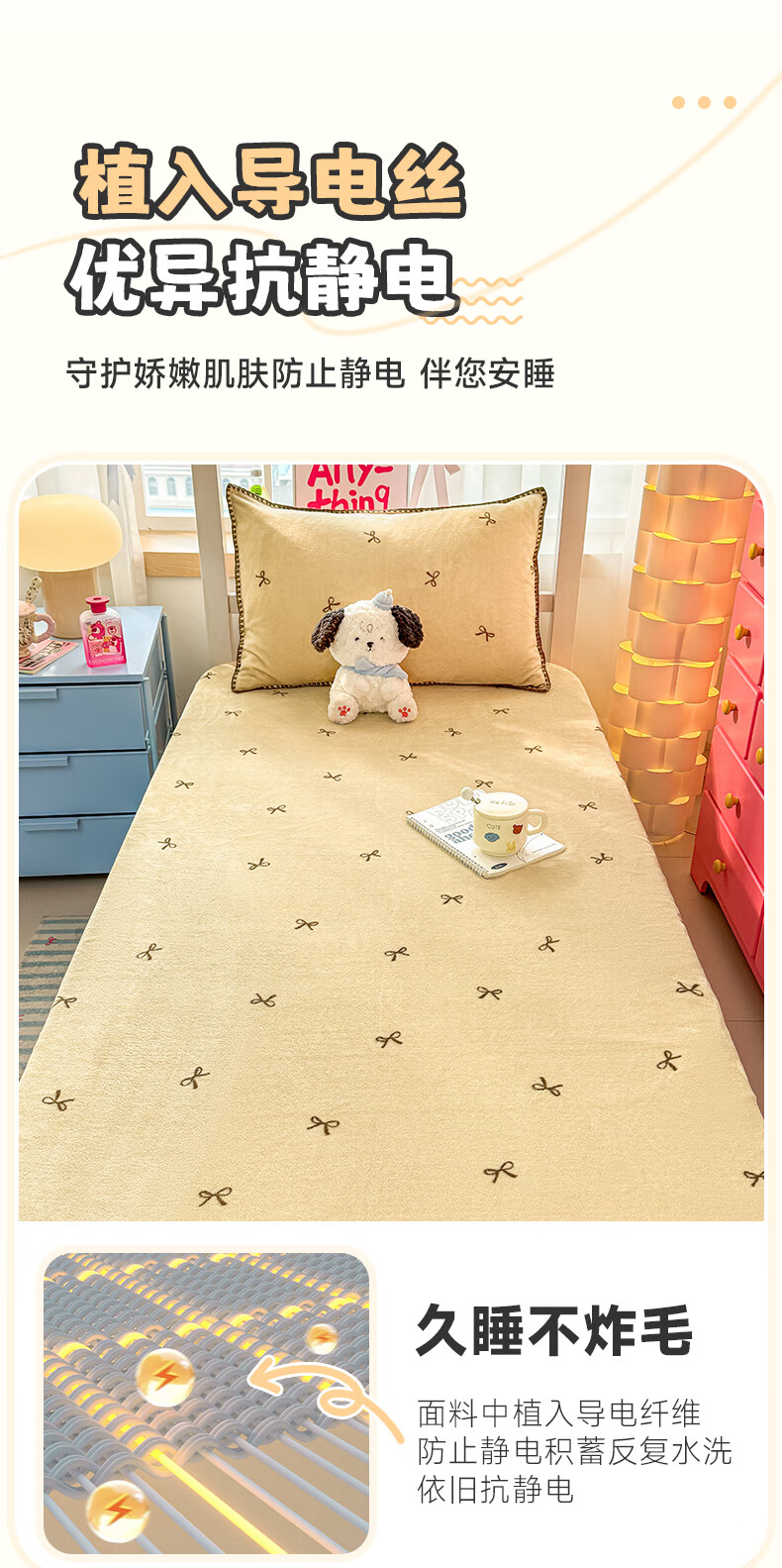 Tang Yi Bow Knot Dormitory Milk Velvet Sheet 90x190 Winter Student Single Plus Velvet Mattress Cover Coral Velvet Mattress Cover Blue Stripe Cat Densely Downy Thickened Milk Velvet Sheet Single Piece-110x150cm Throw Blanket/Crib