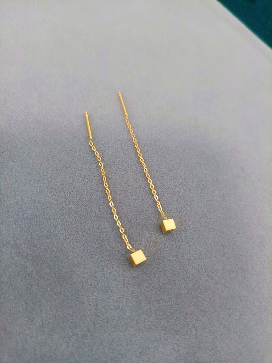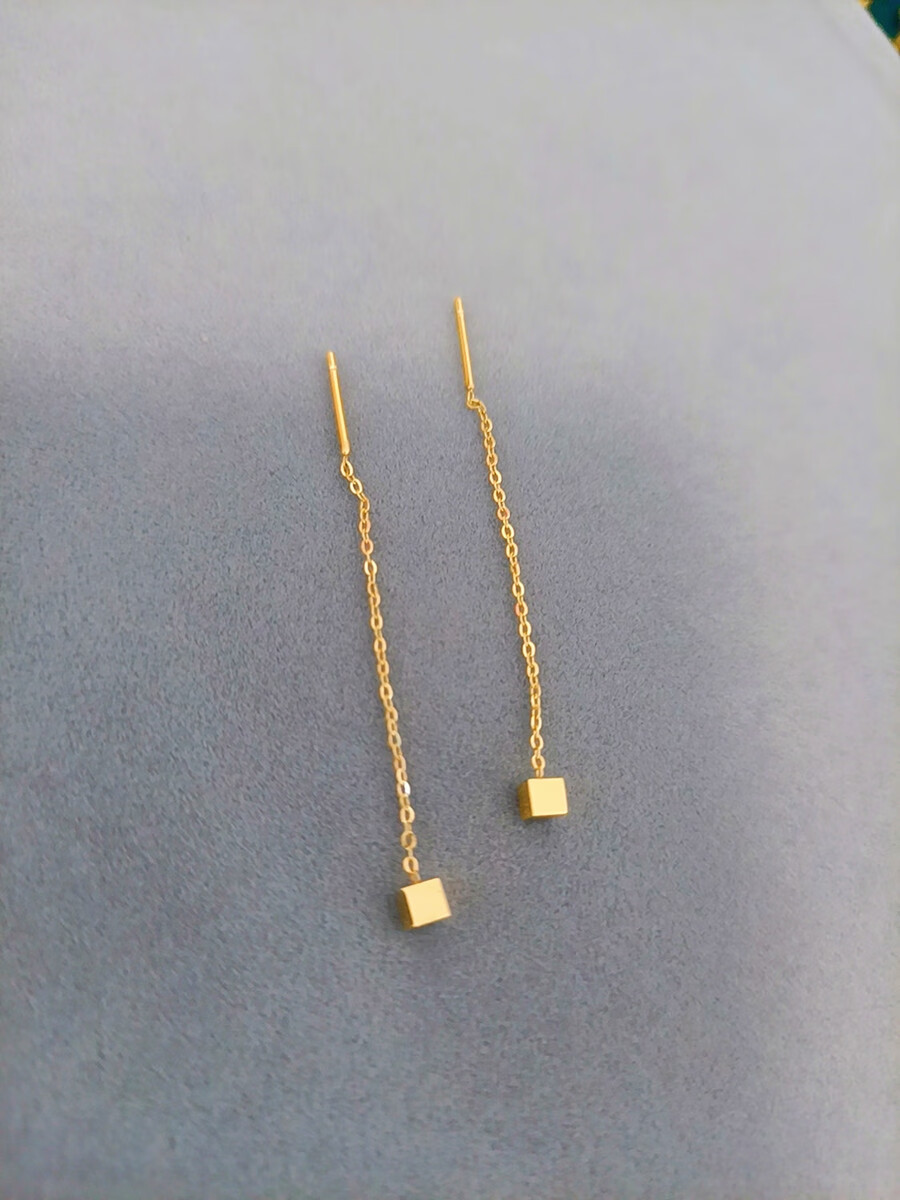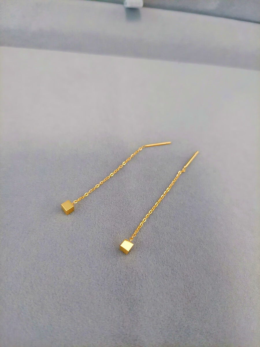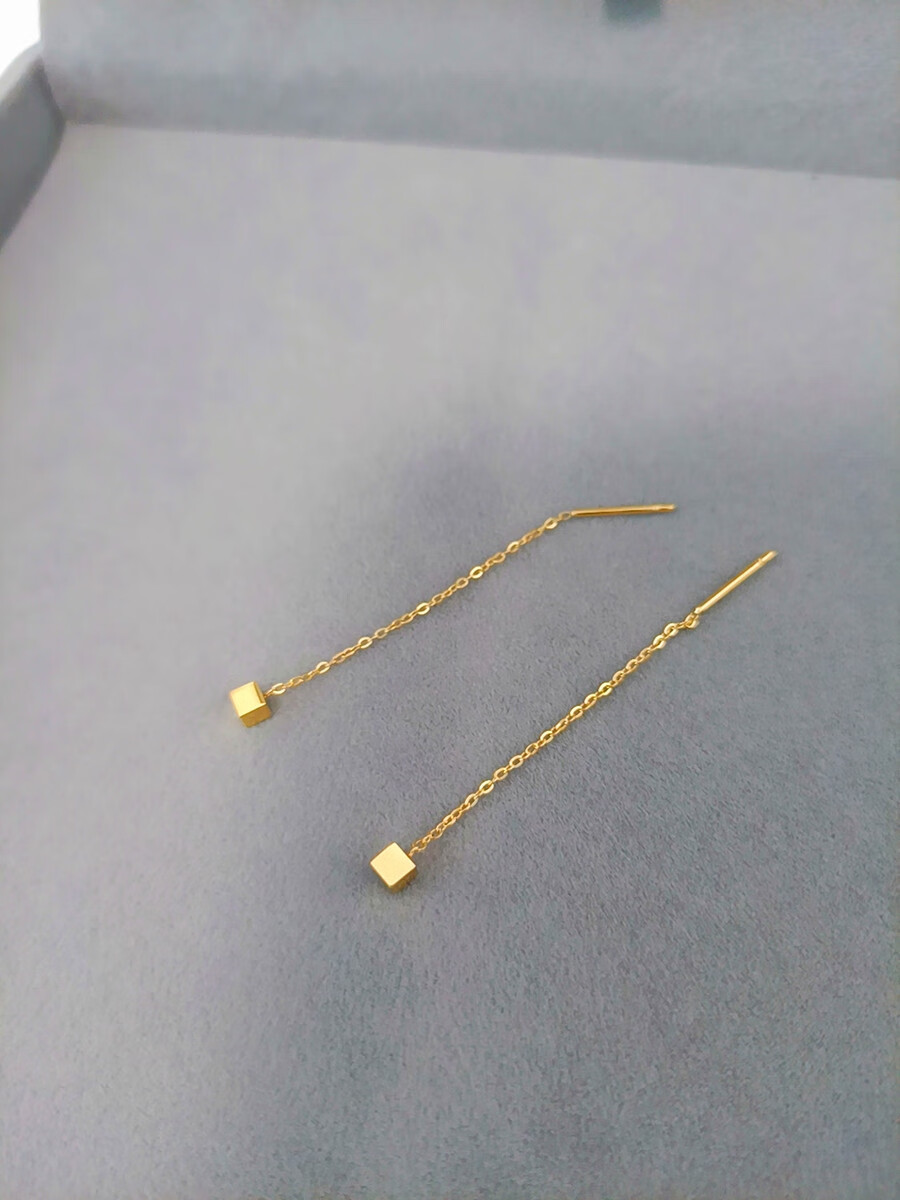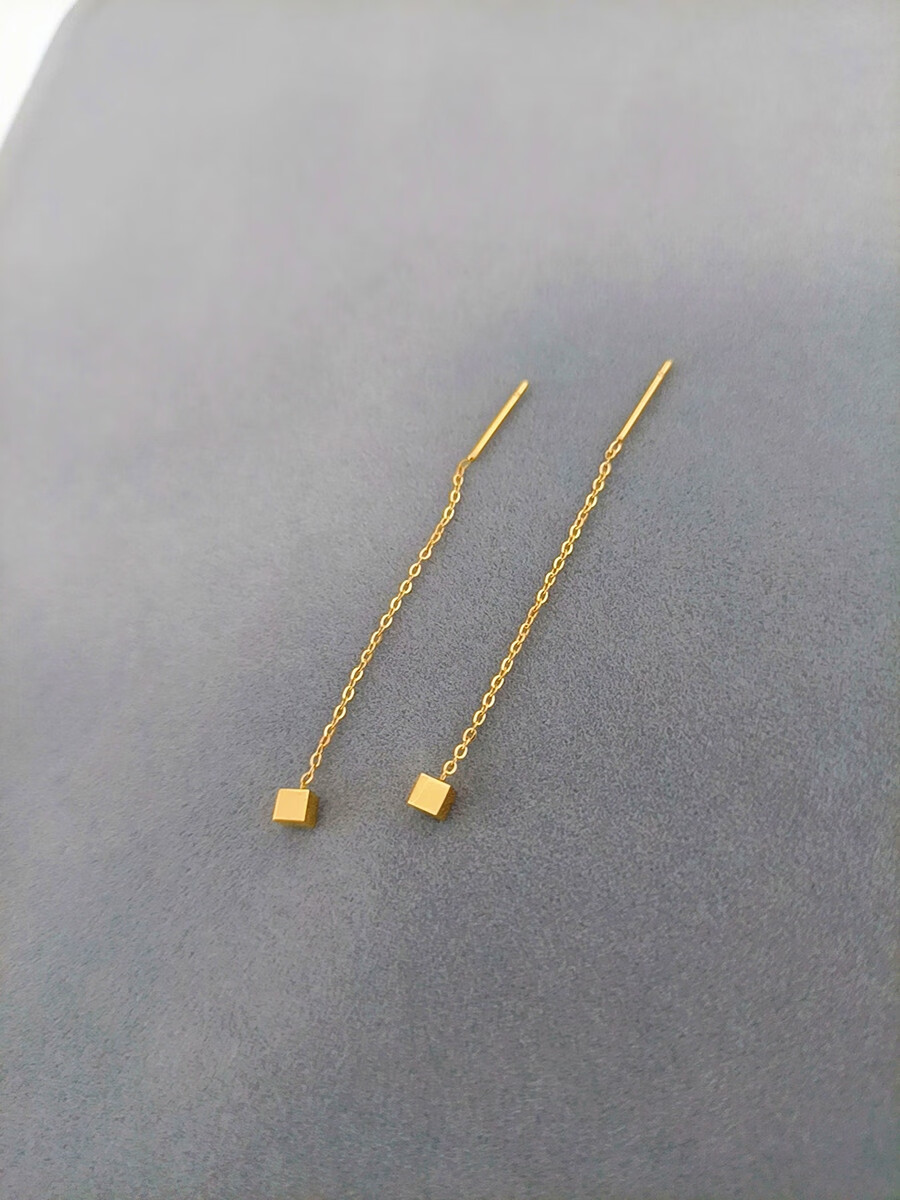 Pumanzhuji slimming face, not easy to fade, 18K gold geometric small square earrings, simple daily hypoallergenic small earrings, gold 1 pair