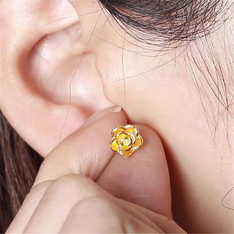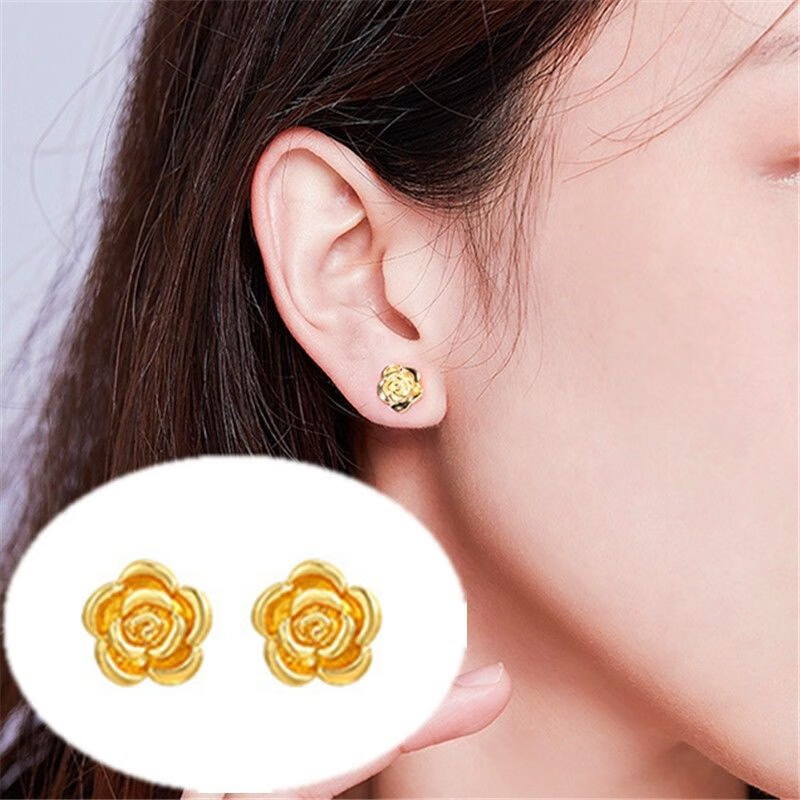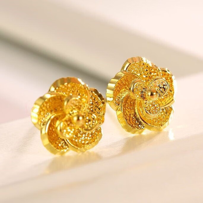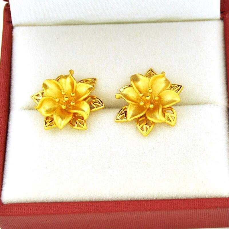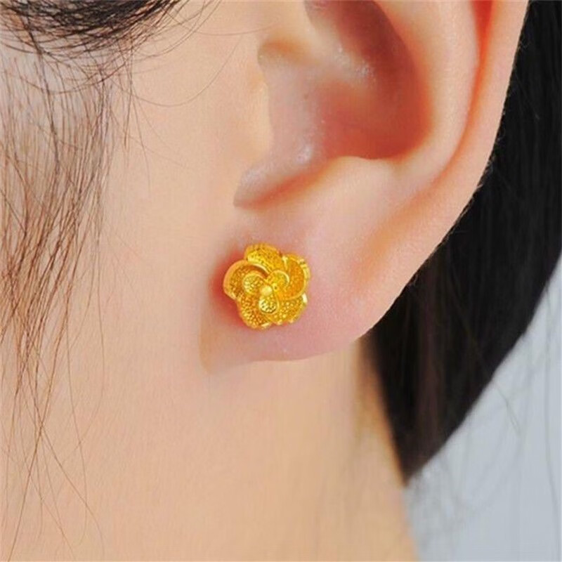 Pumanzhuji Hong Kong duty-free gold temperament earrings women's fashion earrings wedding 18K real gold earrings 520 gift does not fade a pair of plum blossom earrings