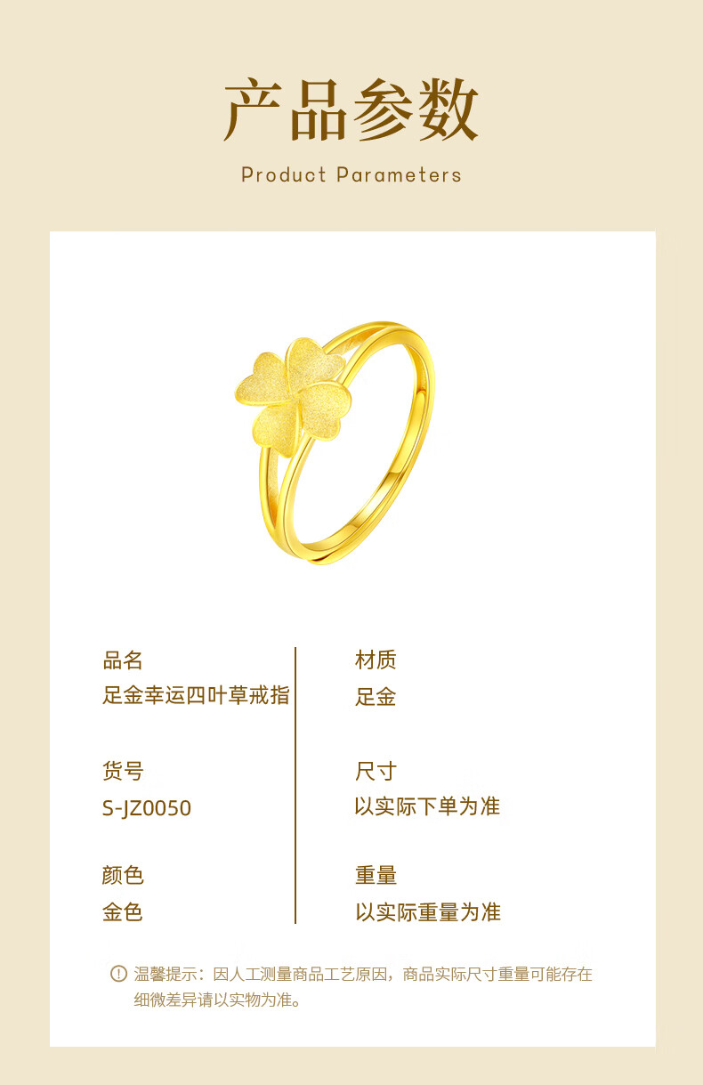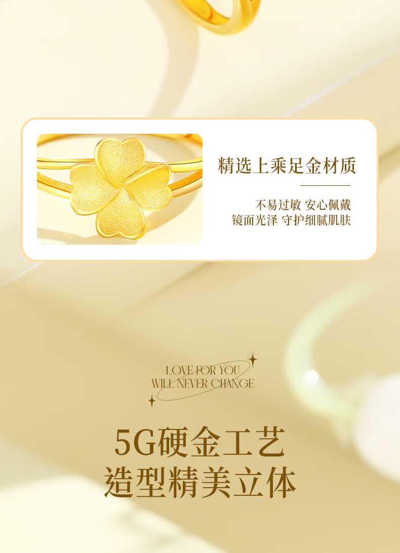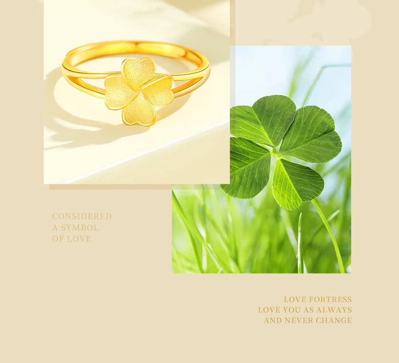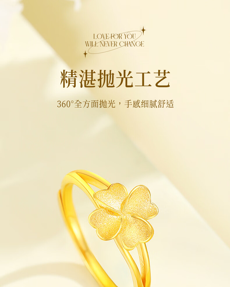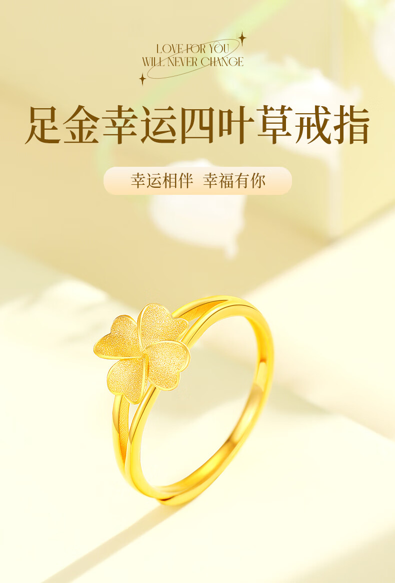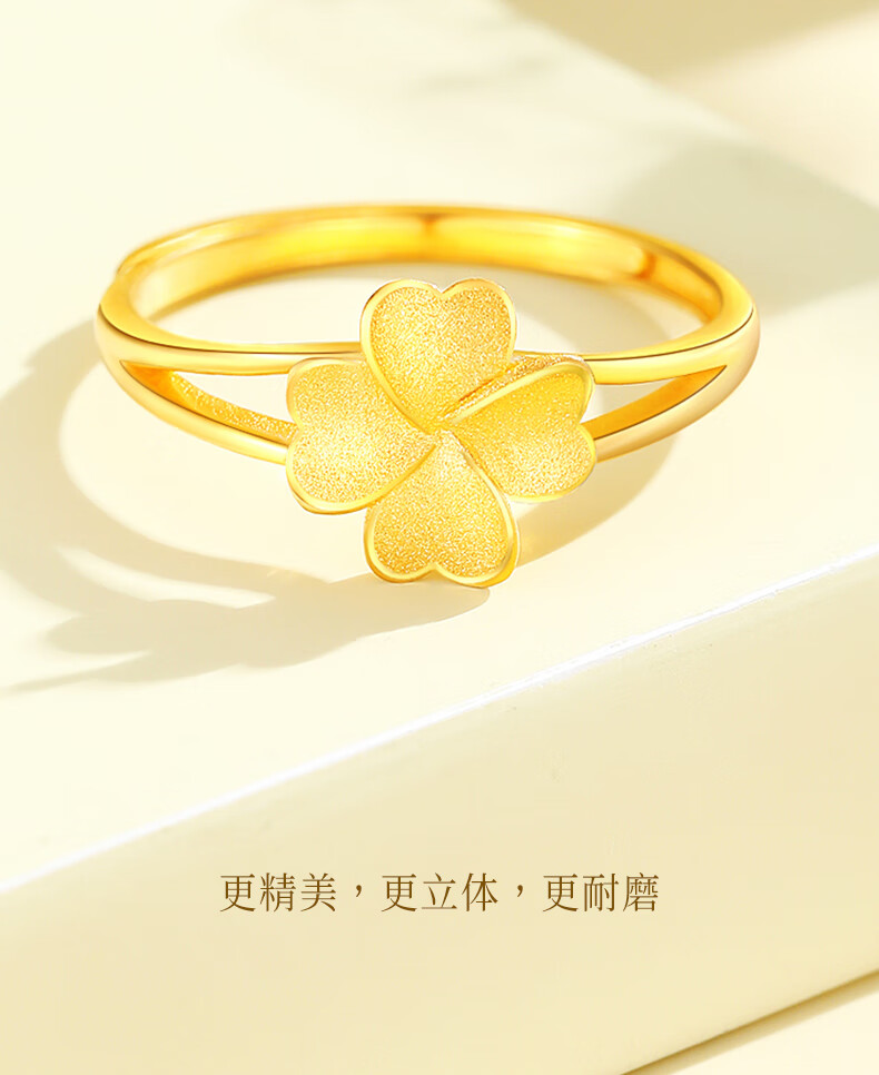 CHINA GOLD Lucky Four Leaf Clover Gold Ring Women's 999 Pure Gold Open Ring Birthday Gift for Girlfriend and Wife Gold Weight About 2.8g Pure Gold Ring Rose Gift Box