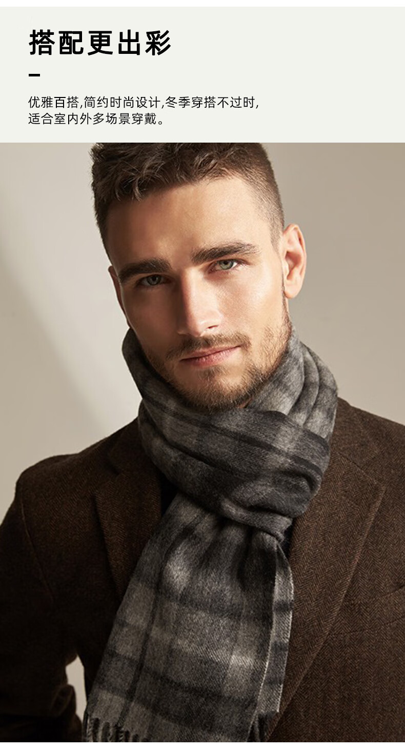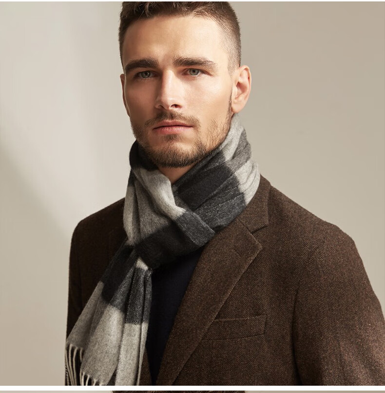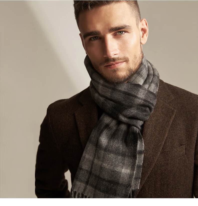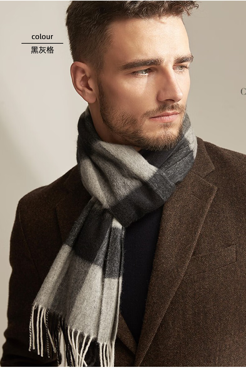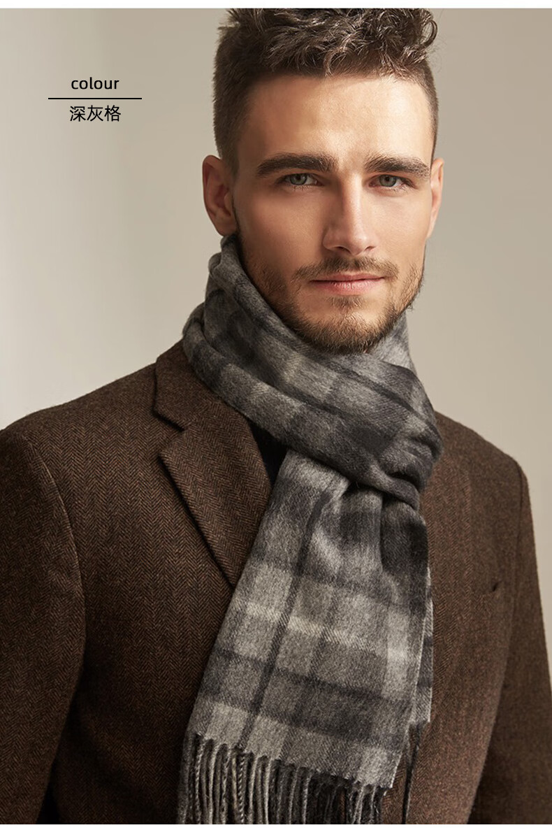 Lomon cashmere men's scarf to keep warm in winter, high-end British style scarf 2025 new plaid gift box for boyfriend, dark gray plaid 180*30cm high quality/gift box