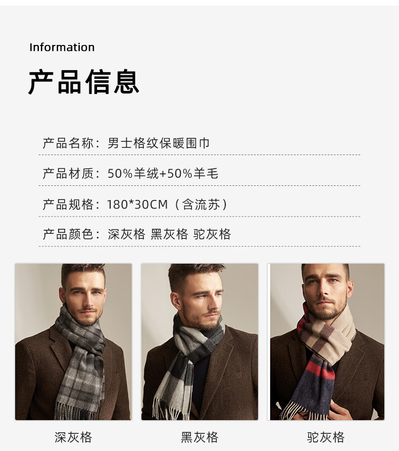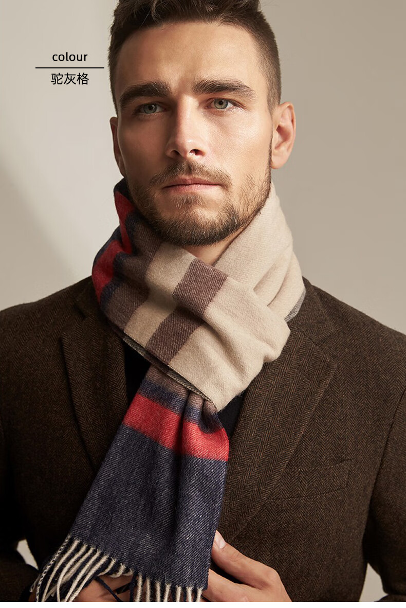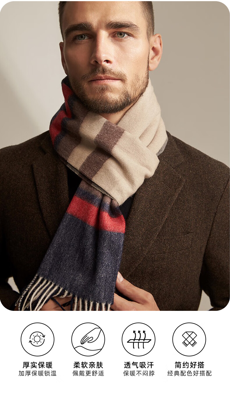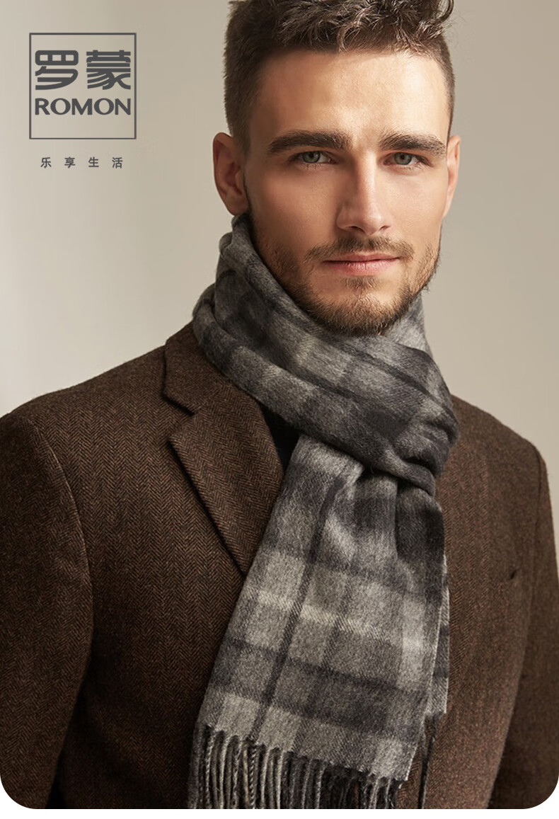 Lomon cashmere men's scarf to keep warm in winter, high-end British style scarf 2025 new plaid gift box for boyfriend, dark gray plaid 180*30cm high quality/gift box