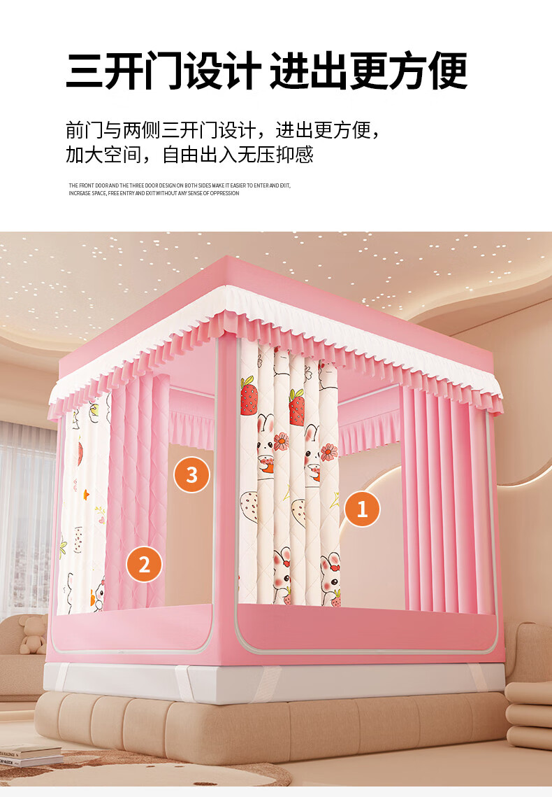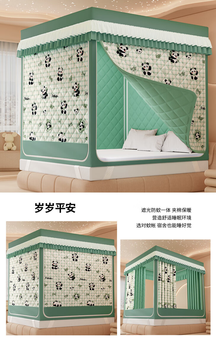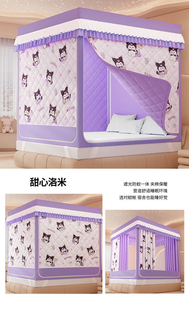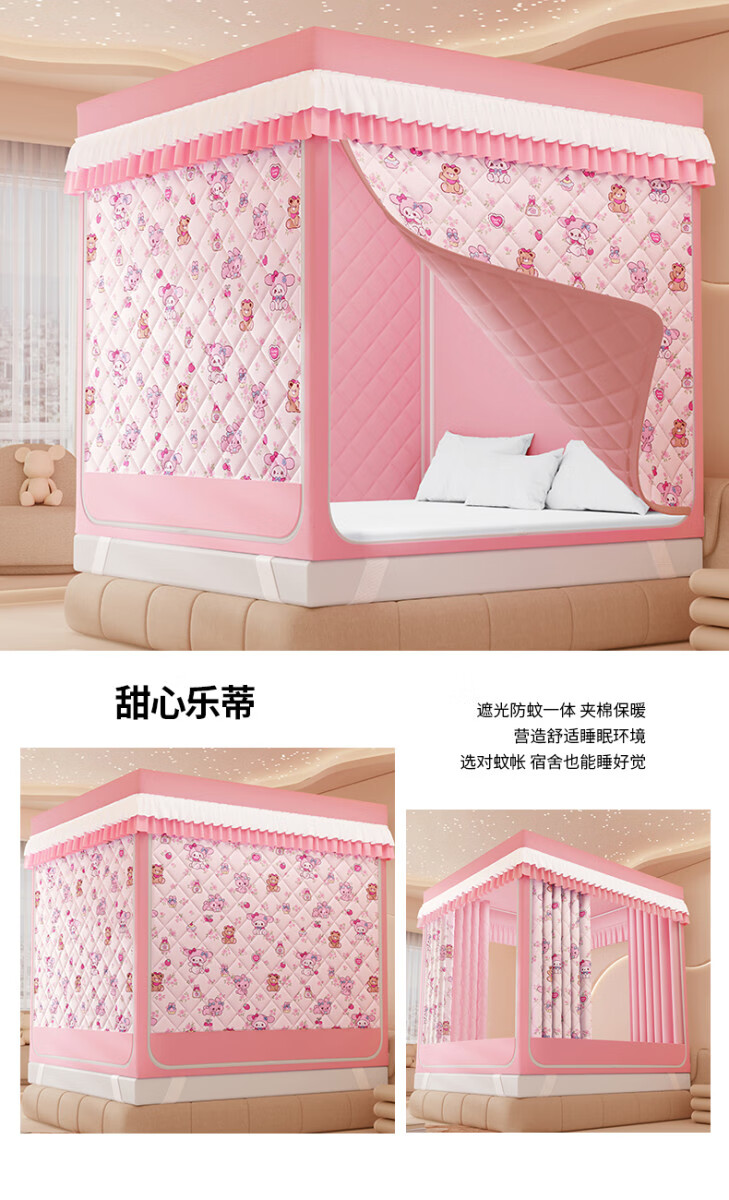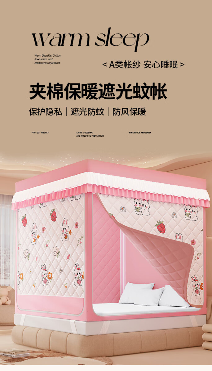 Fantasy full-bottom warm and thickened quilted strong blackout bed curtain mosquito net for home bedroom windproof and windproof sitting bed chain bed curtain quilted warm happy cute cat-three-sided thermal curtain 120x190x170 self-connecting paint bracket (full bottom)
