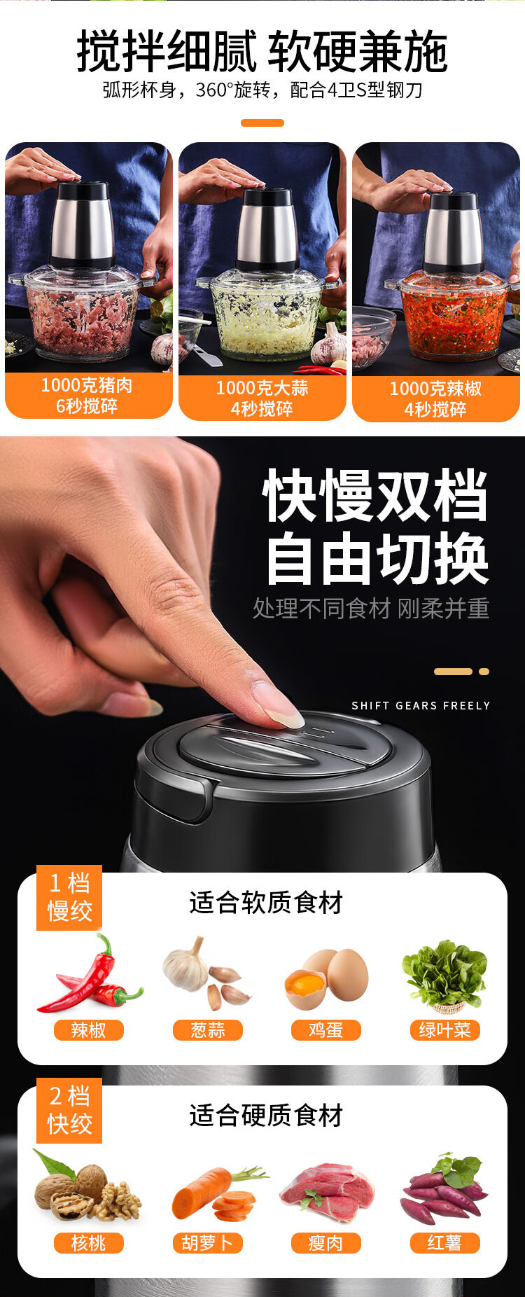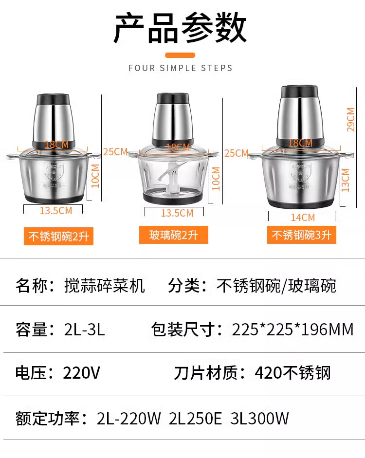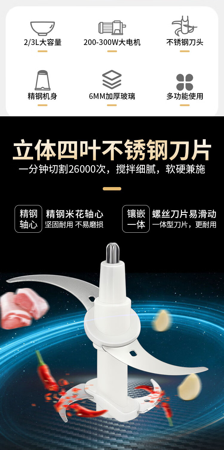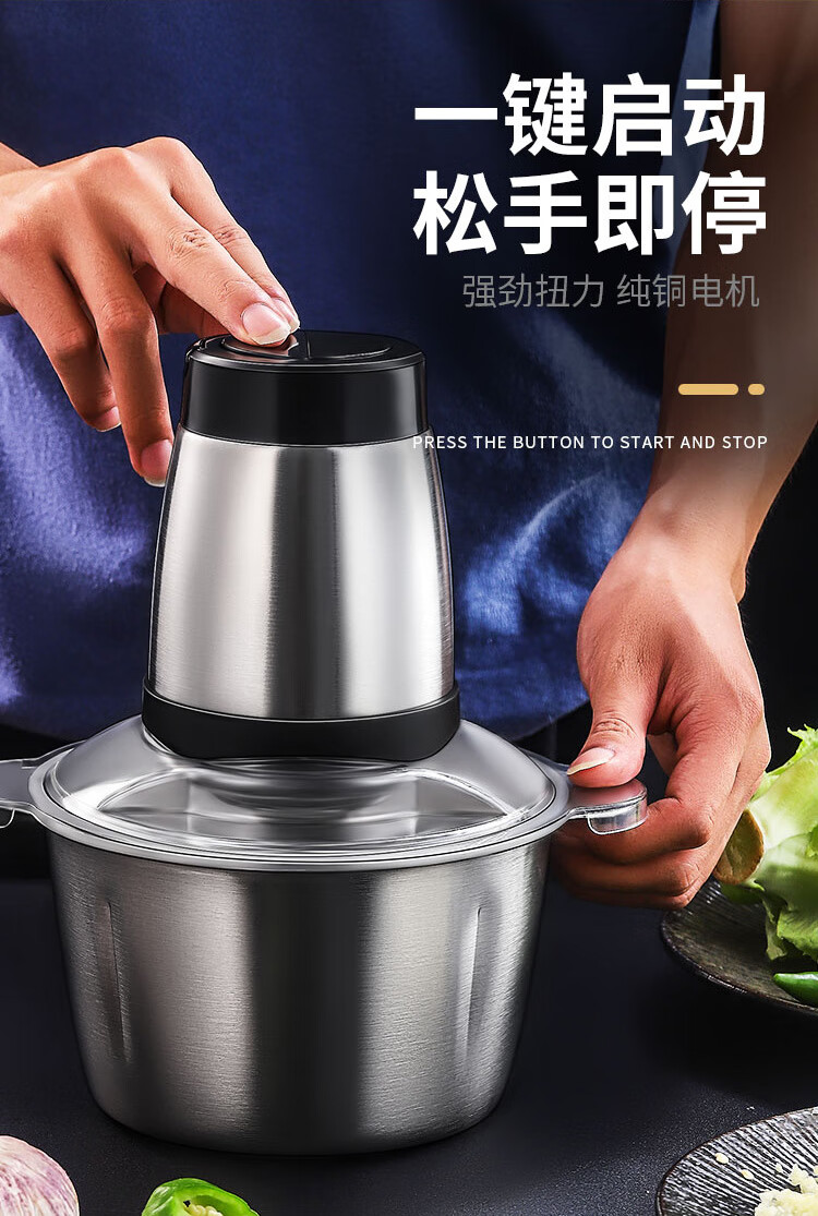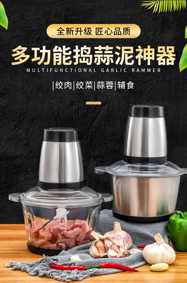 Shijanu minced garlic artifact, electric garlic mincer, electric commercial garlic mincer, garlic mincer, household small garlic mincer, 2 liter plastic model + 1 cutter head, fast and slow dual gears