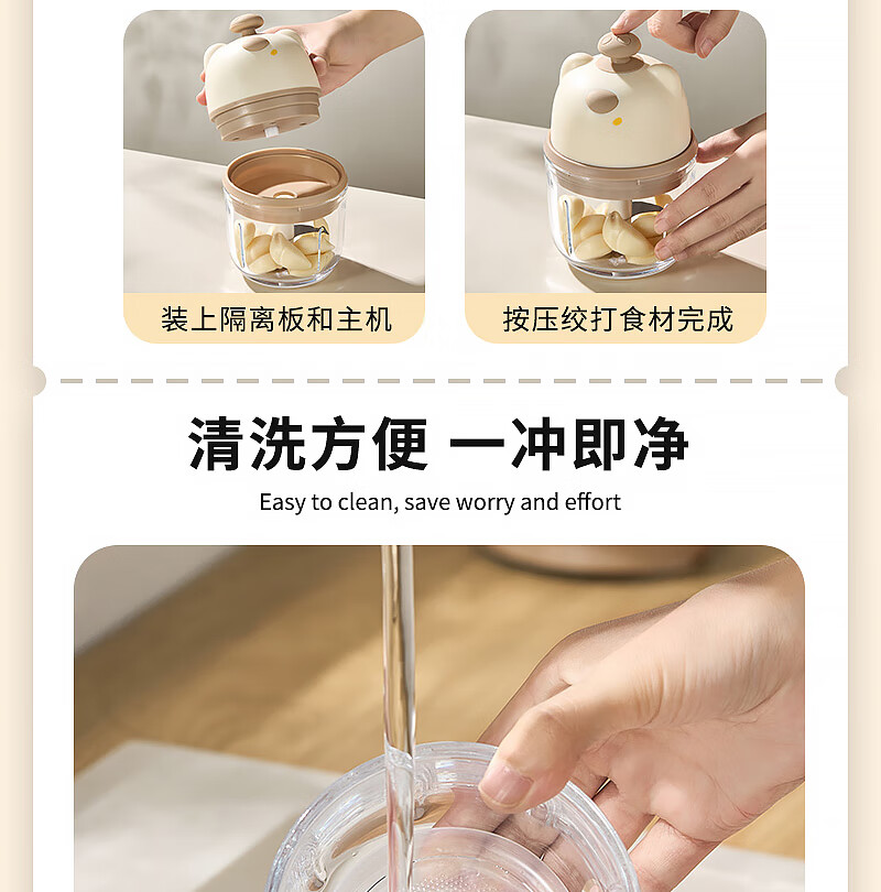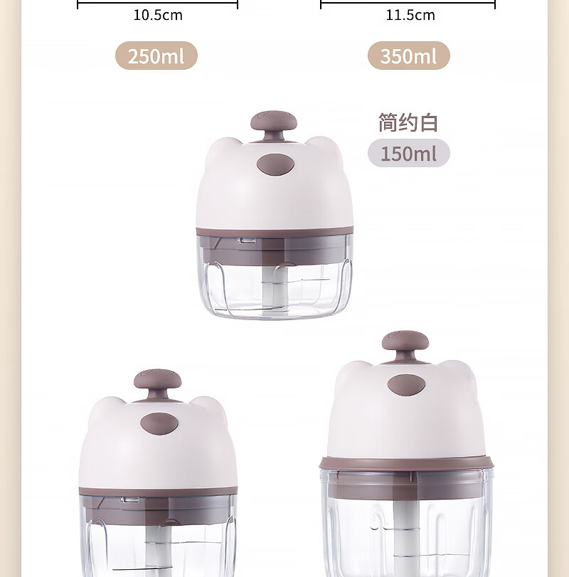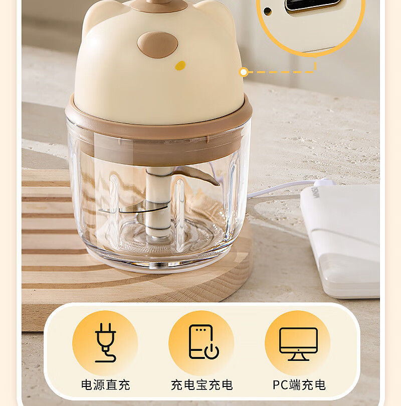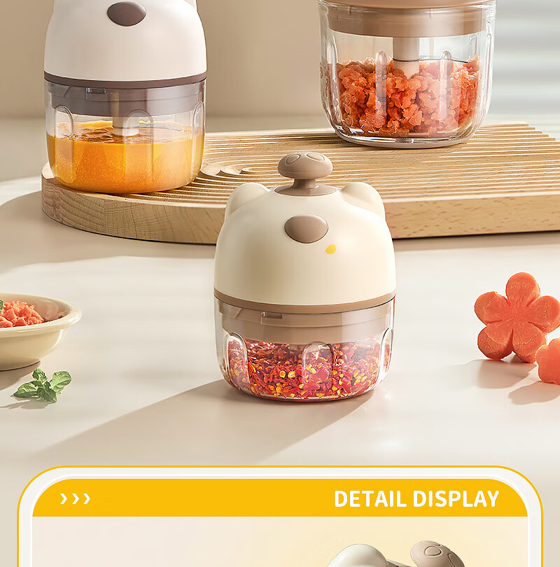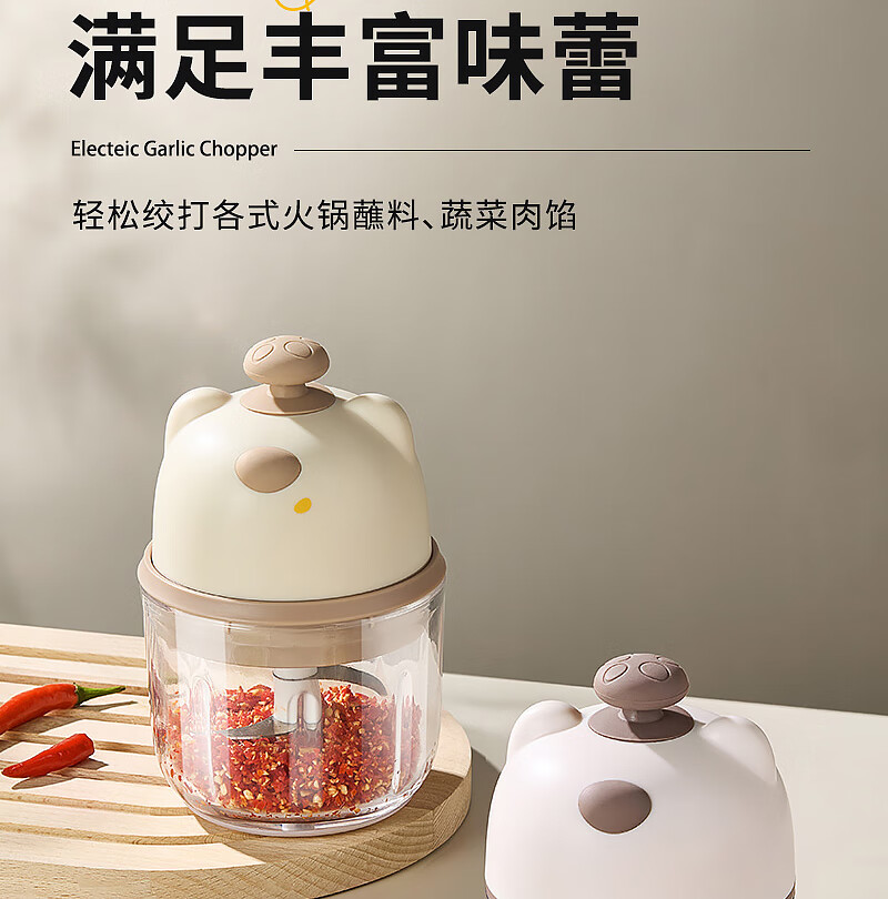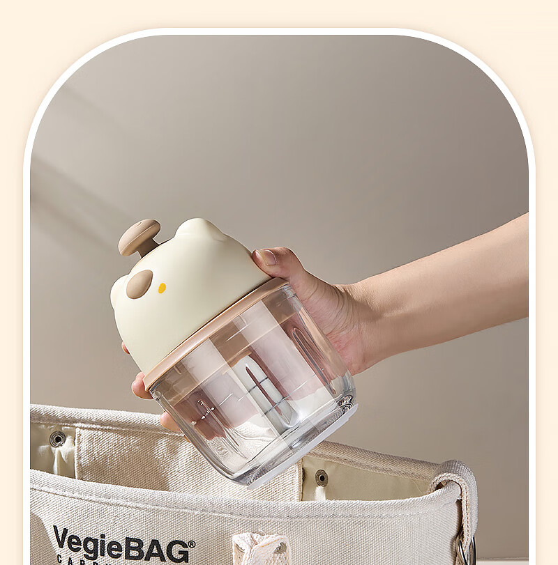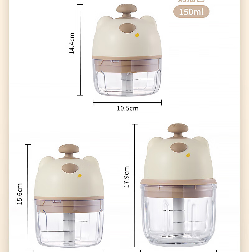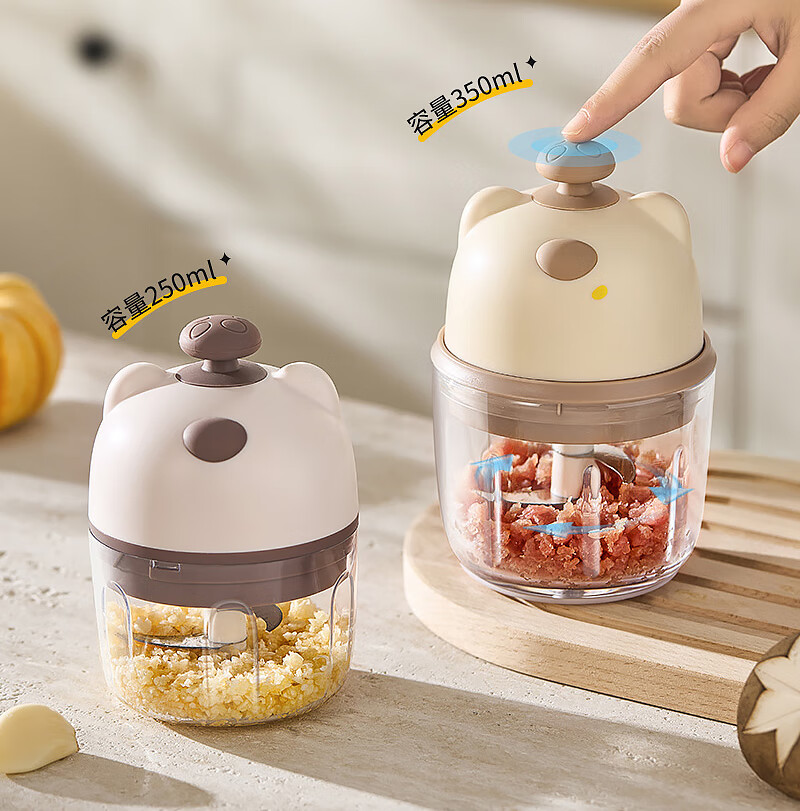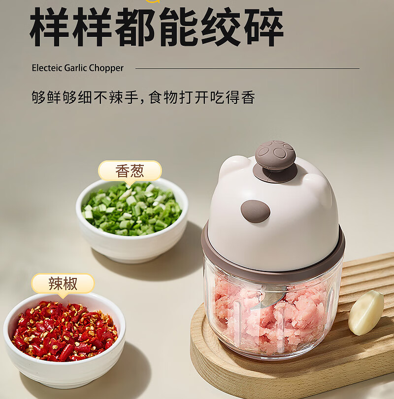 Zhuowu Electric Garlic Pounder for Garlic and Garlic Mince, Small Home Cooking Supplement, Wireless Minced Meat, Garlic and Garlic Artifact, Kaka Bear 150ML Two-leaf Knife Head - Suitable for Stirring Garlic_Chili_PE